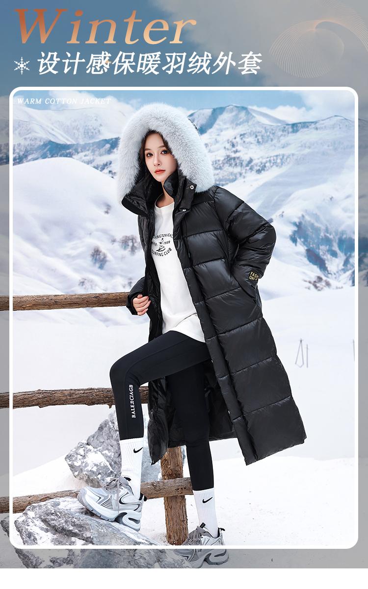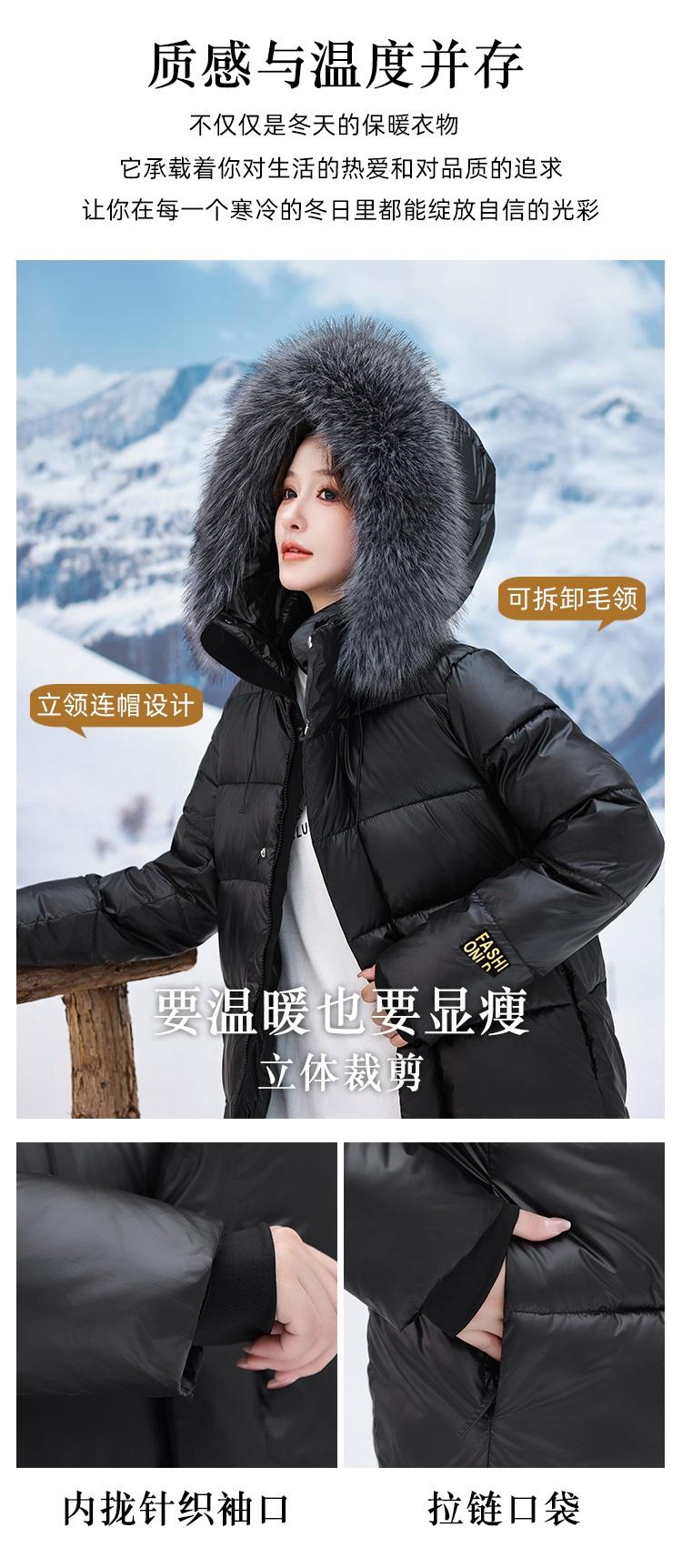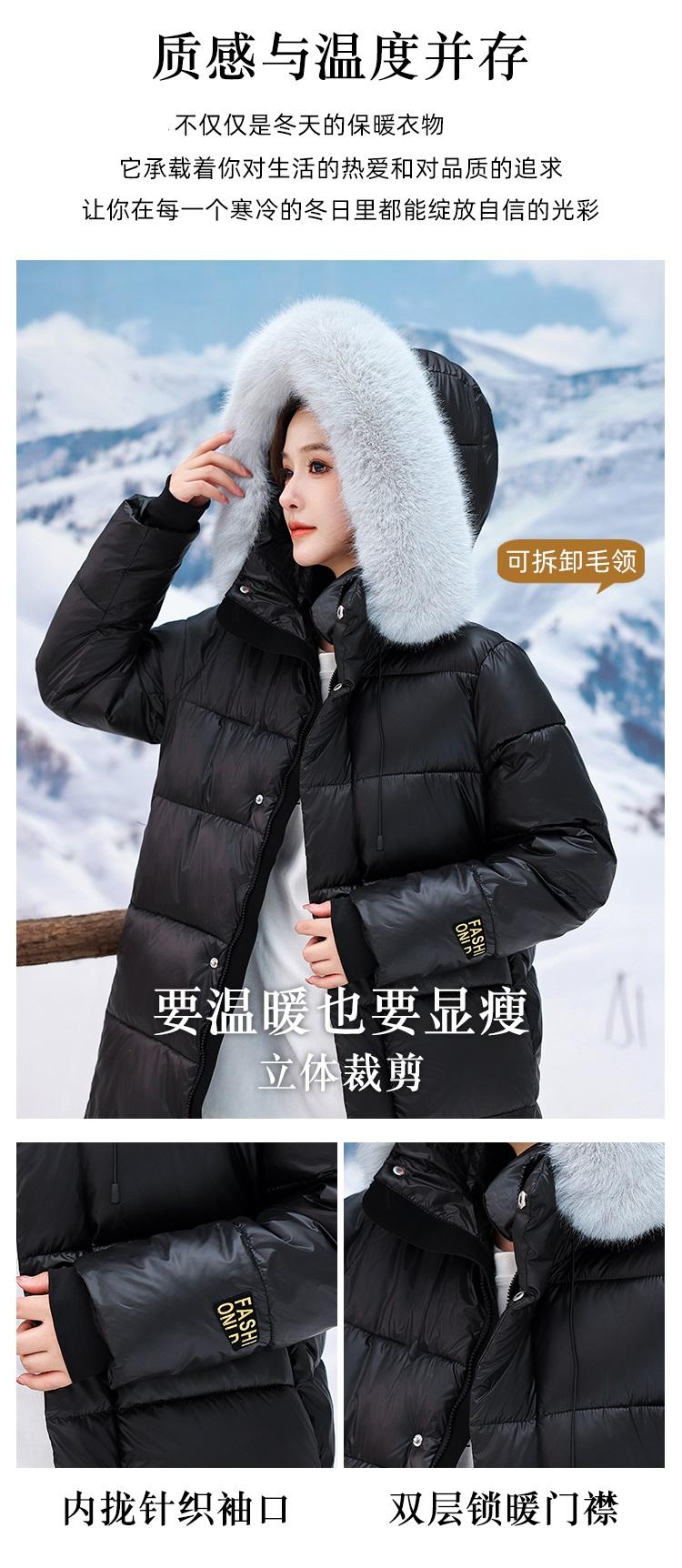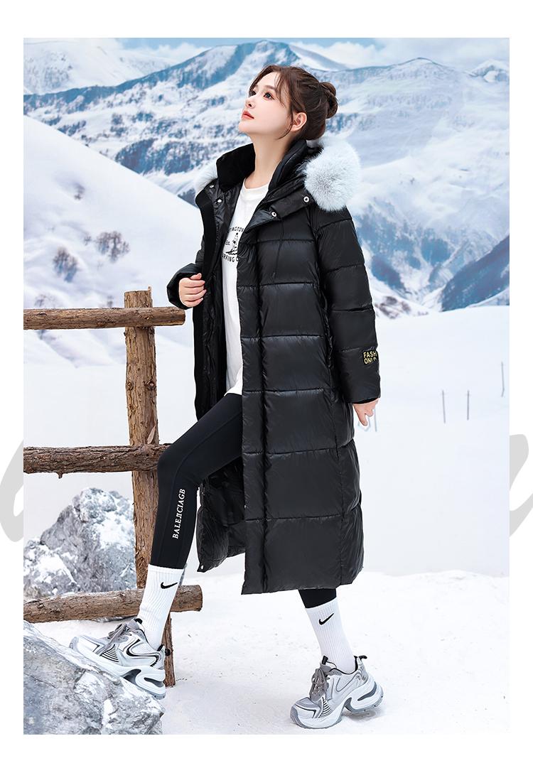 Auténtico Plumón Algodón Ropa de Abrigo para Mujer Largo Medio Nuevo Zorro Plateado Cuello de Piel Grande Invierno Engrosado Hasta la Rodilla Cálido Negro Ropa de Abrigo