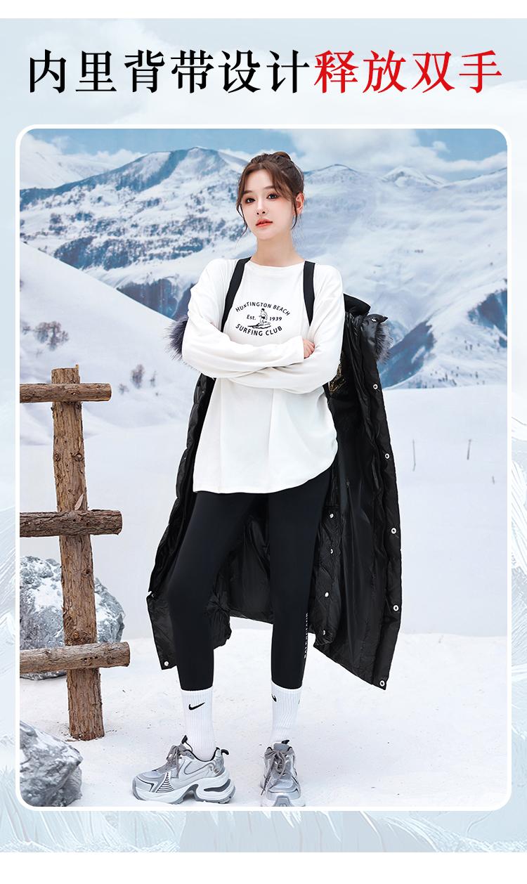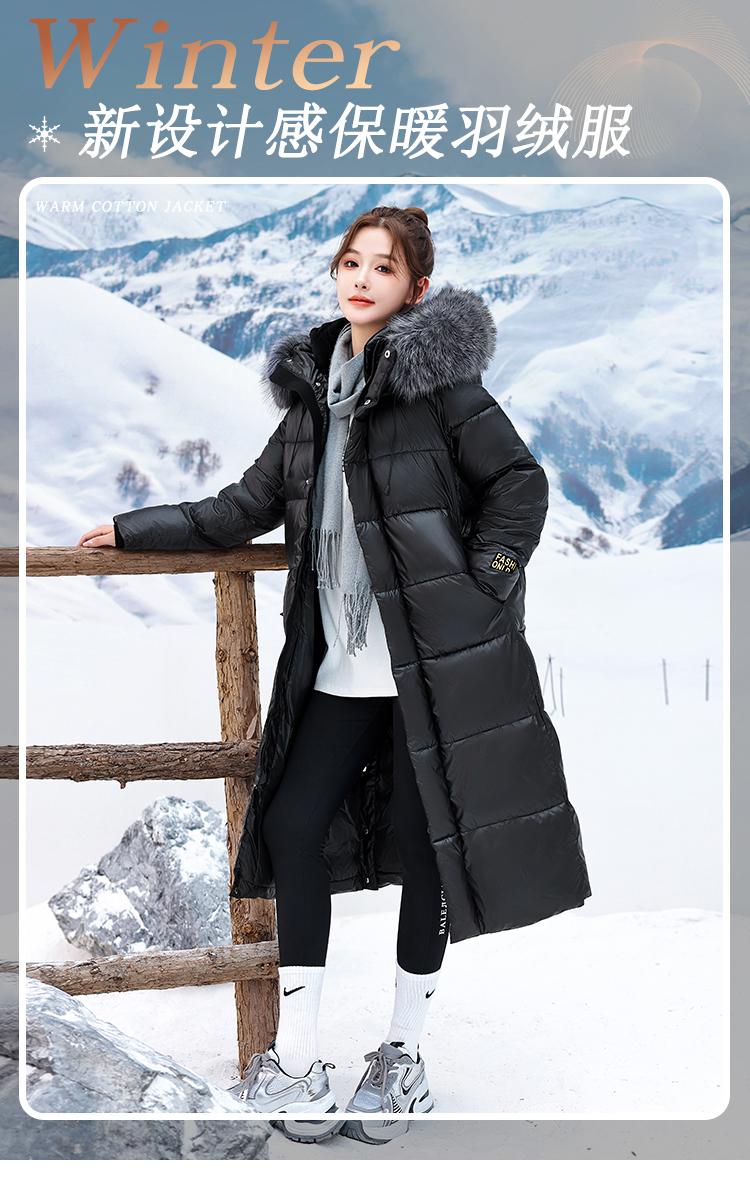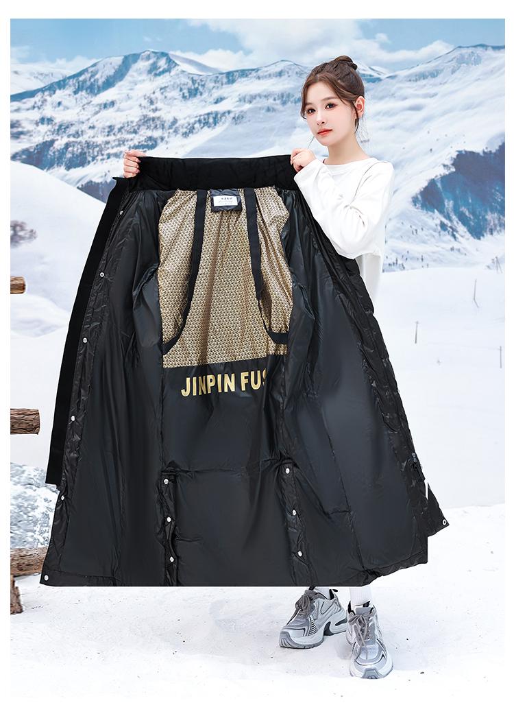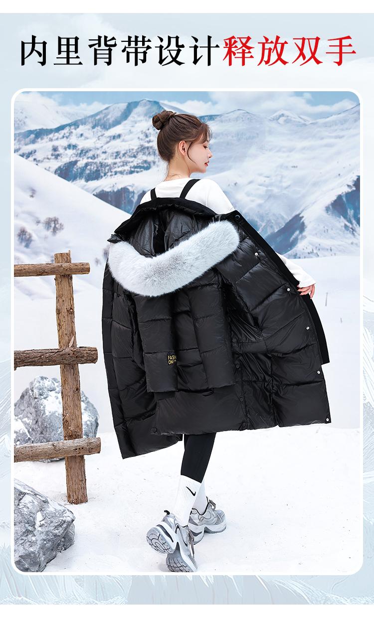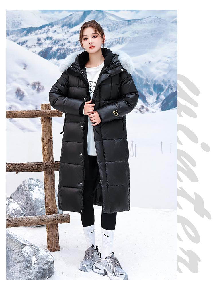 Auténtico Plumón Algodón Ropa de Abrigo para Mujer Largo Medio Nuevo Zorro Plateado Cuello de Piel Grande Invierno Engrosado Hasta la Rodilla Cálido Negro Ropa de Abrigo