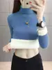 Suéter de punto de color sólido de una pieza de terciopelo grueso de cuello alto para mujer Base de corte entallado Otoño e Invierno Nuevo forro polar grueso