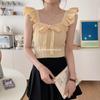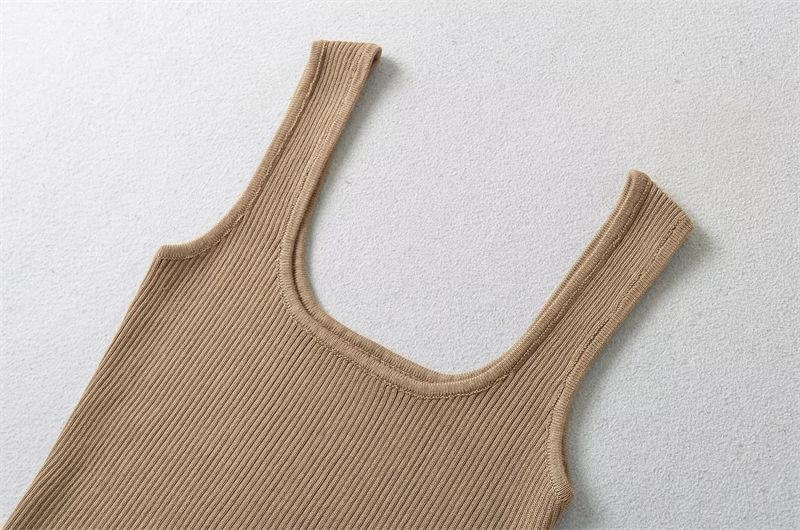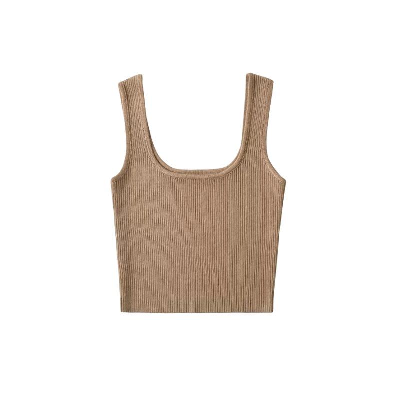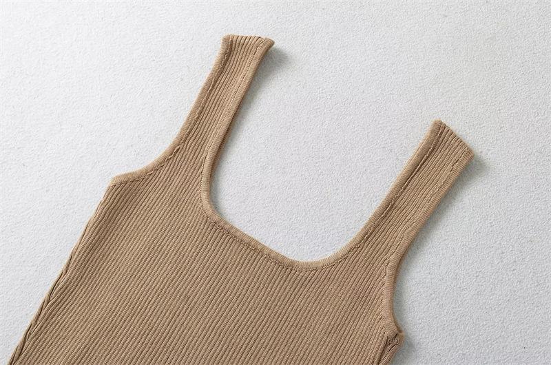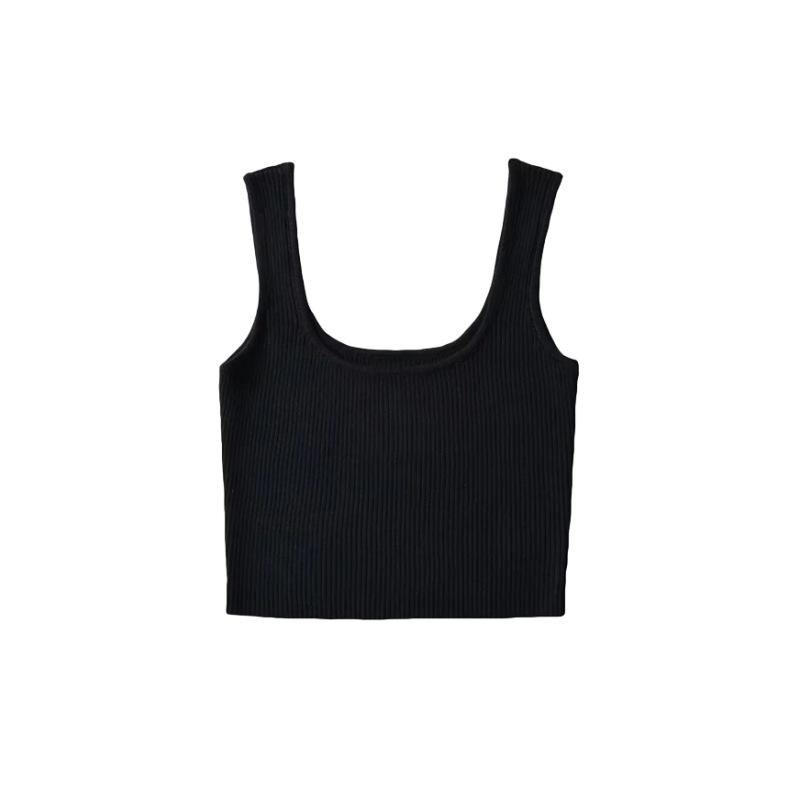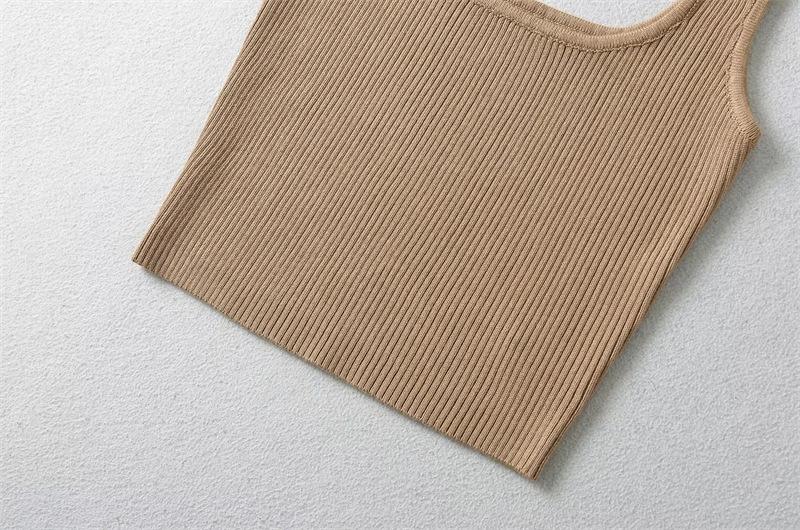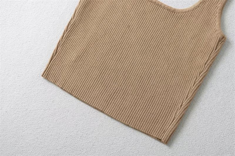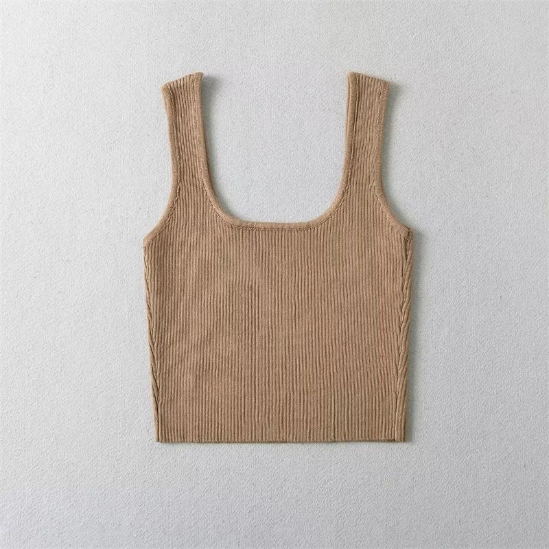 Chaleco de punto sin mangas con cuello cuadrado retro de estilo francés para mujer, ropa exterior, ropa interior ajustada de cintura alta, top corto de color liso con ombligo