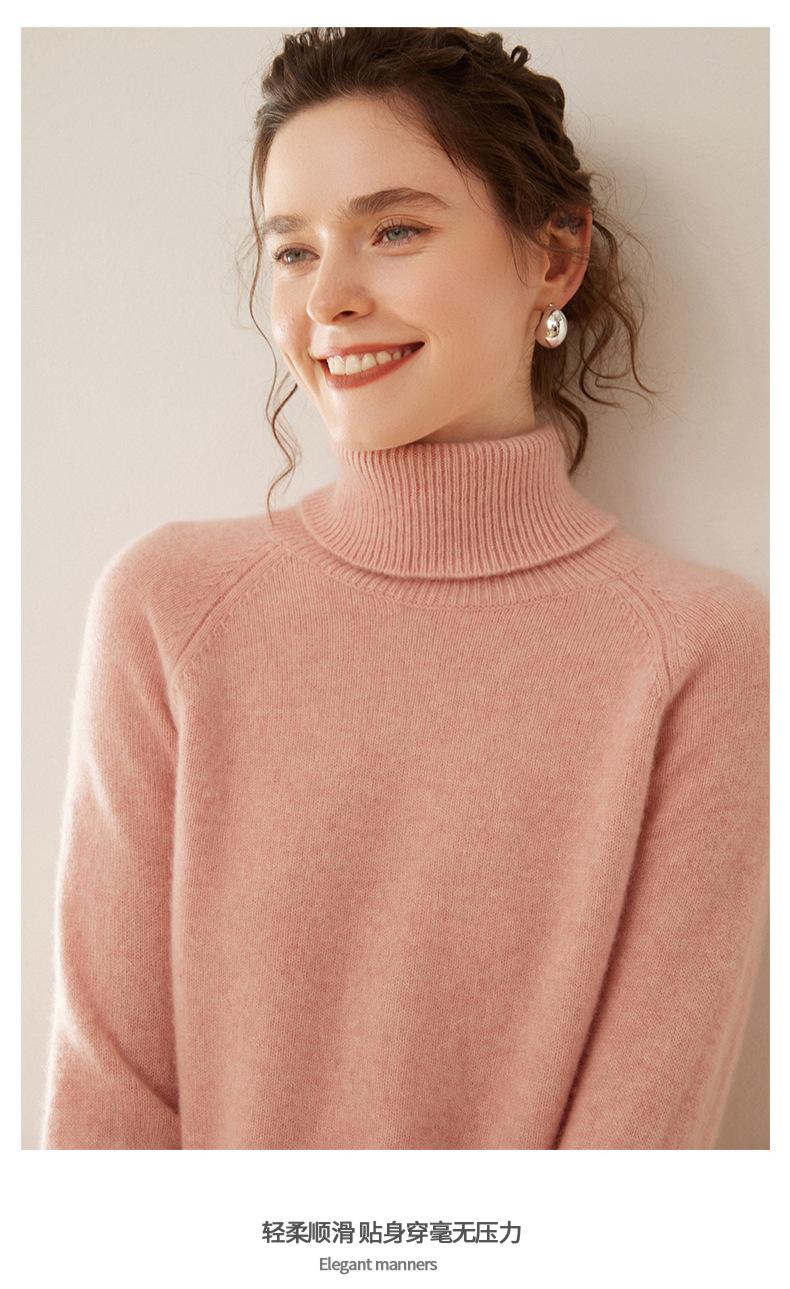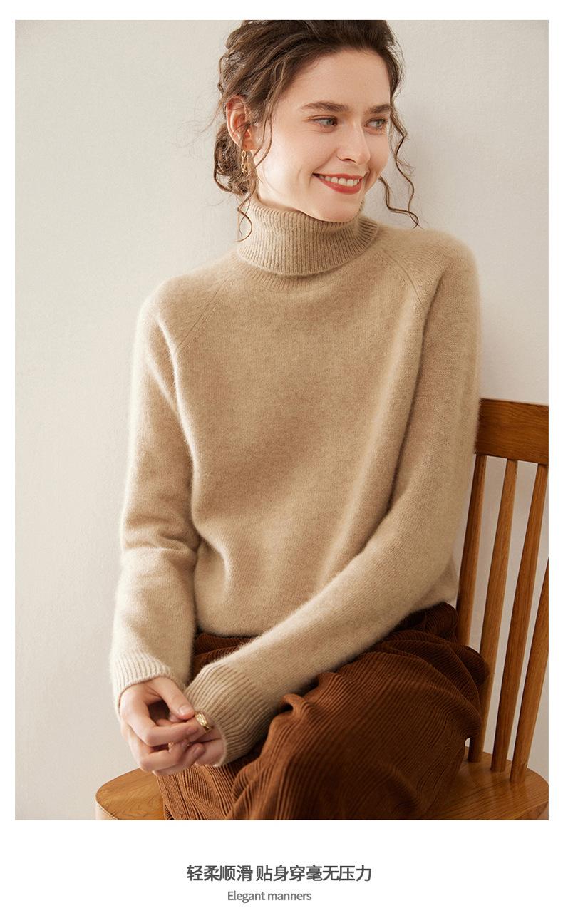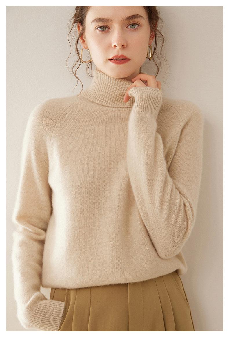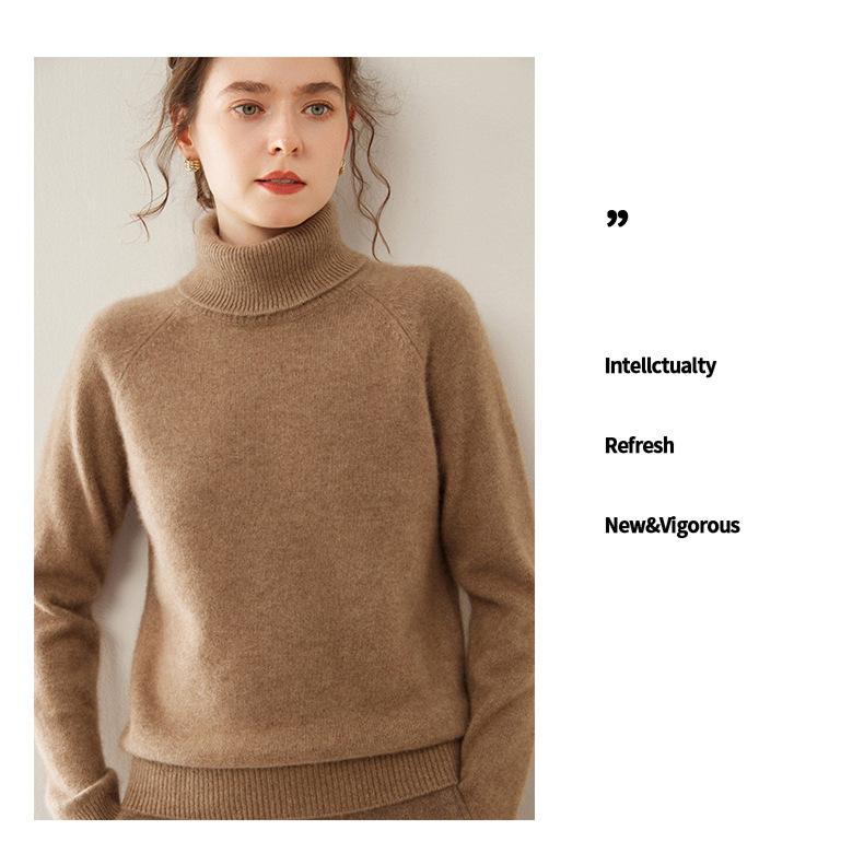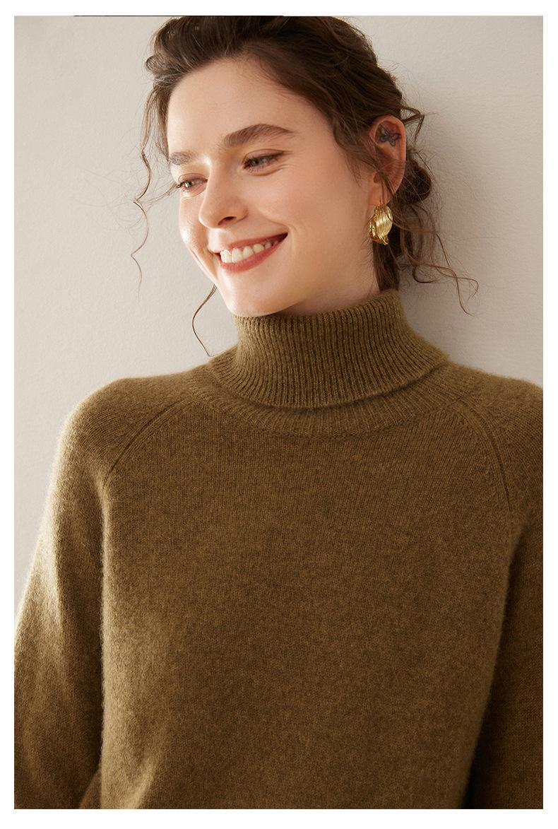 Suéter de Punto de Cachemira para Mujer con Cuello Alto y Manga Raglán, Elegante, para Ir al Trabajo, Casual, Sencillo, Holgado, de Manga Larga, Top Básico