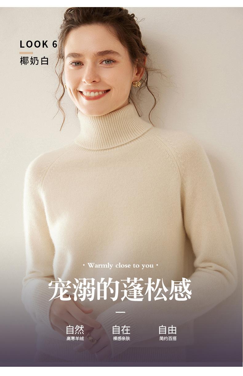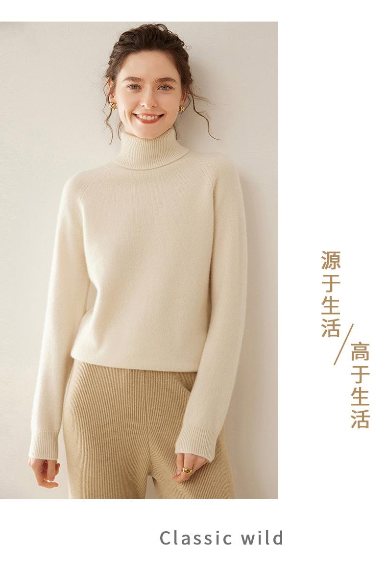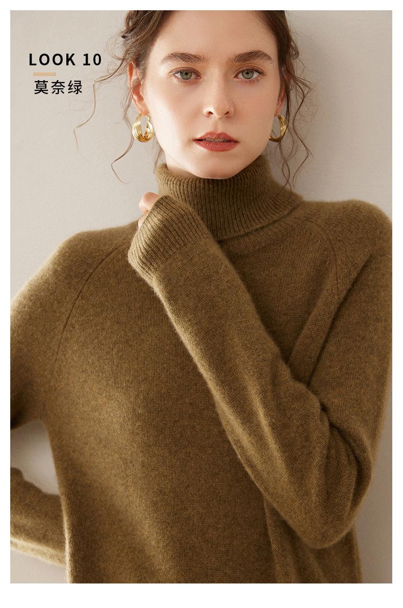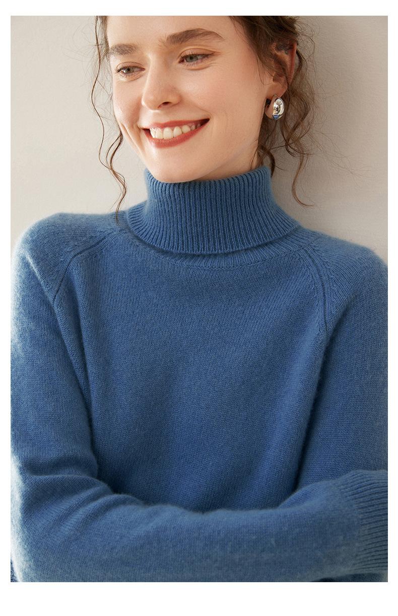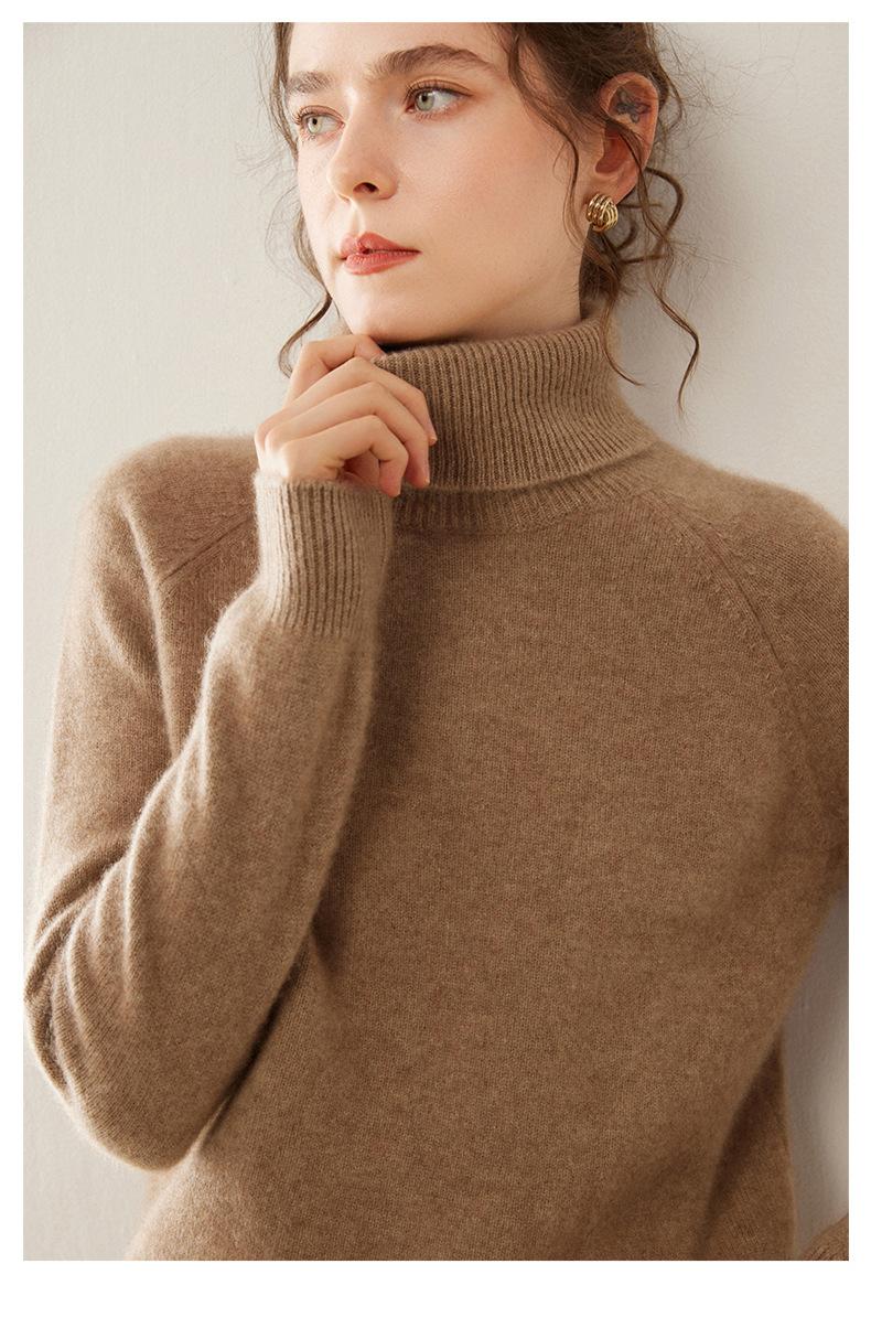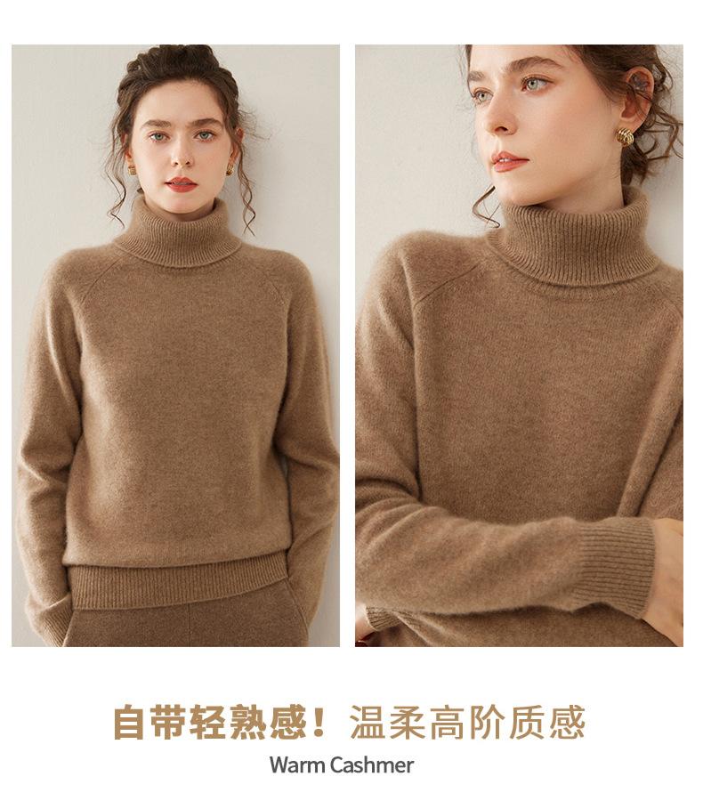 Suéter de Punto de Cachemira para Mujer con Cuello Alto y Manga Raglán, Elegante, para Ir al Trabajo, Casual, Sencillo, Holgado, de Manga Larga, Top Básico