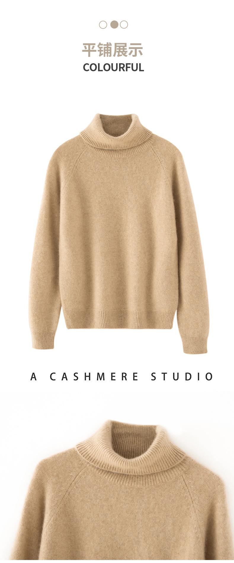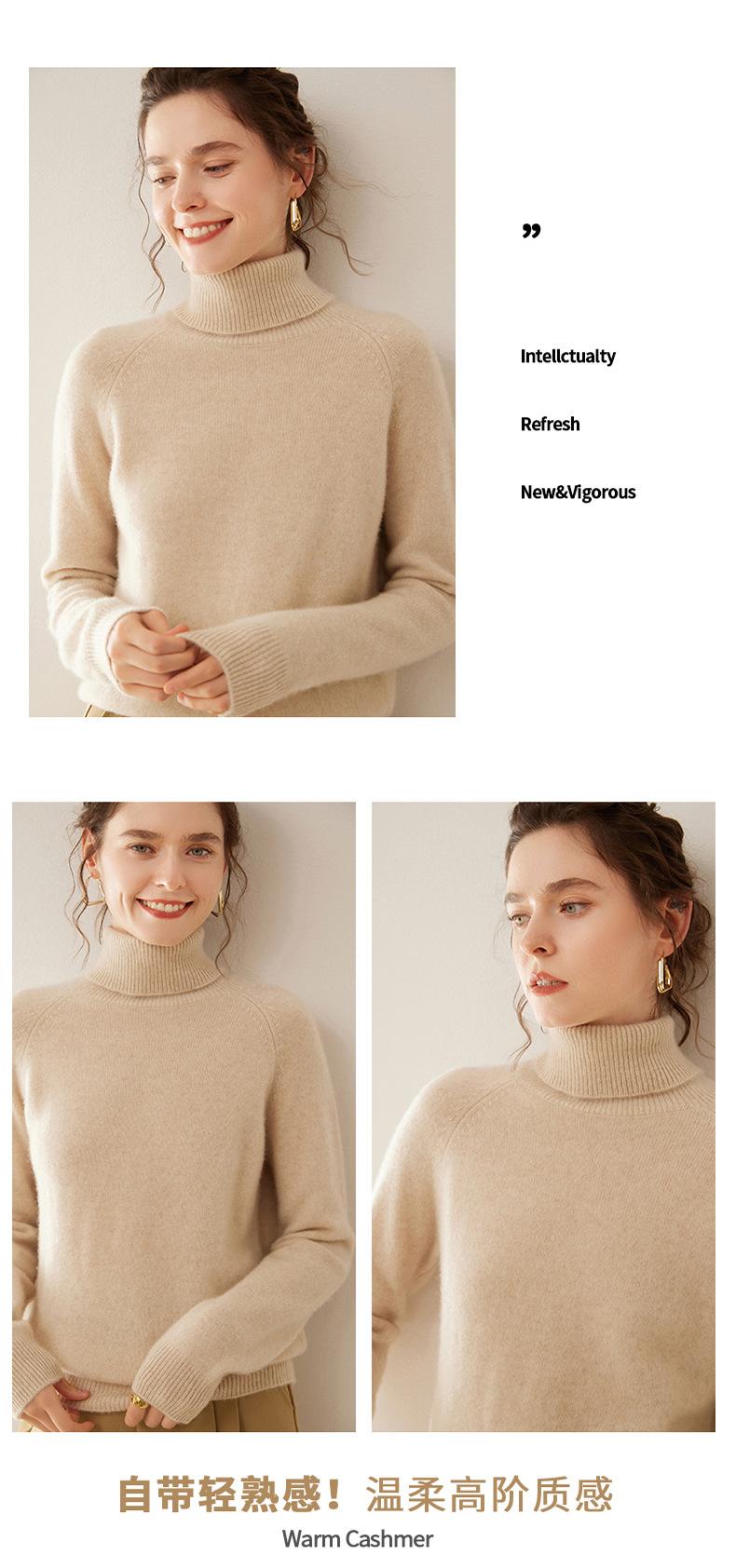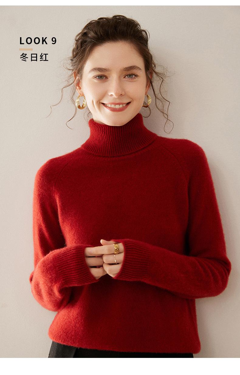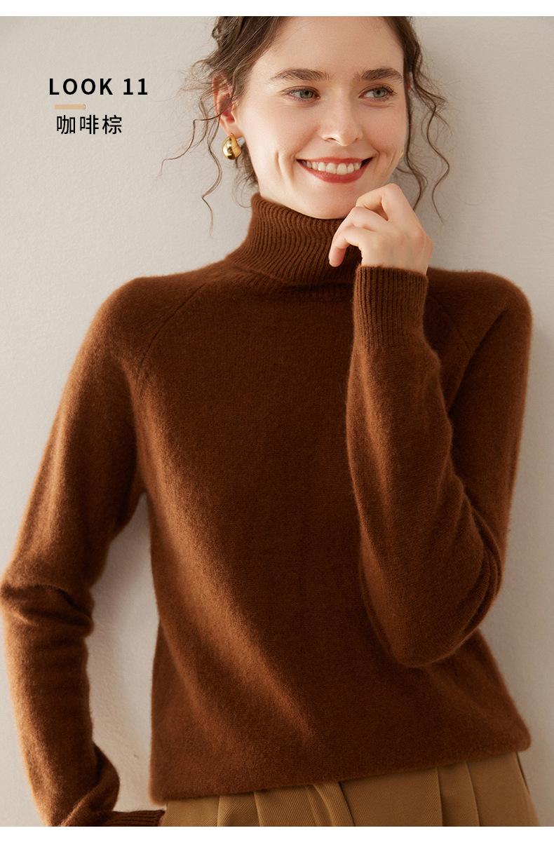 Suéter de Punto de Cachemira para Mujer con Cuello Alto y Manga Raglán, Elegante, para Ir al Trabajo, Casual, Sencillo, Holgado, de Manga Larga, Top Básico