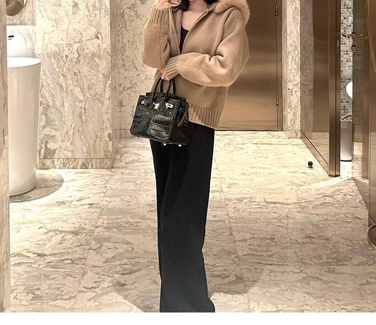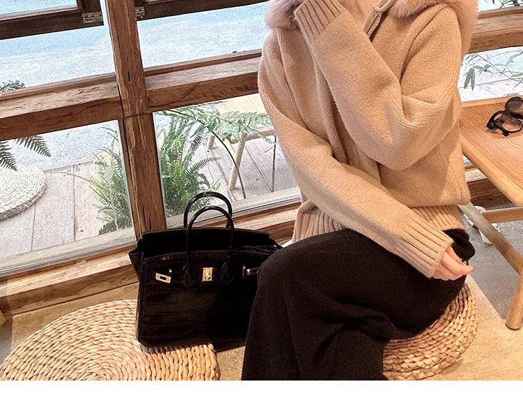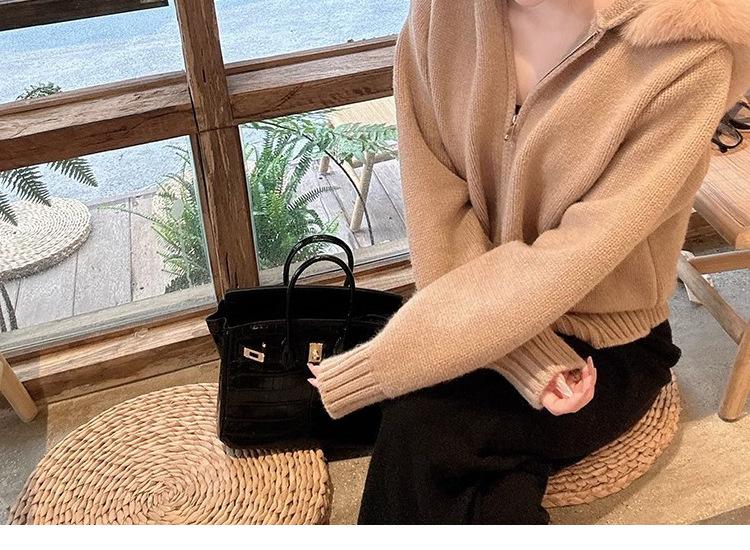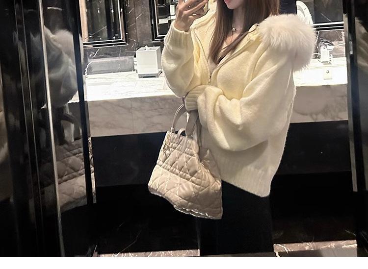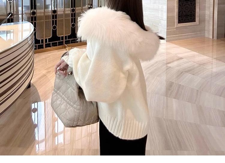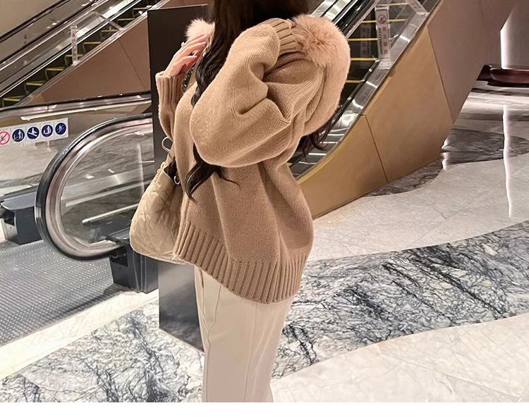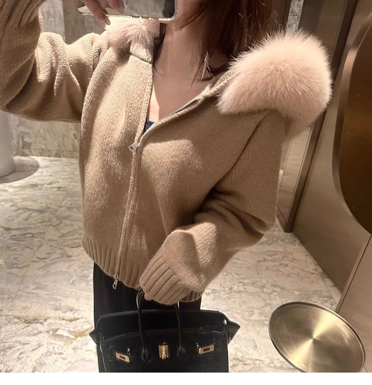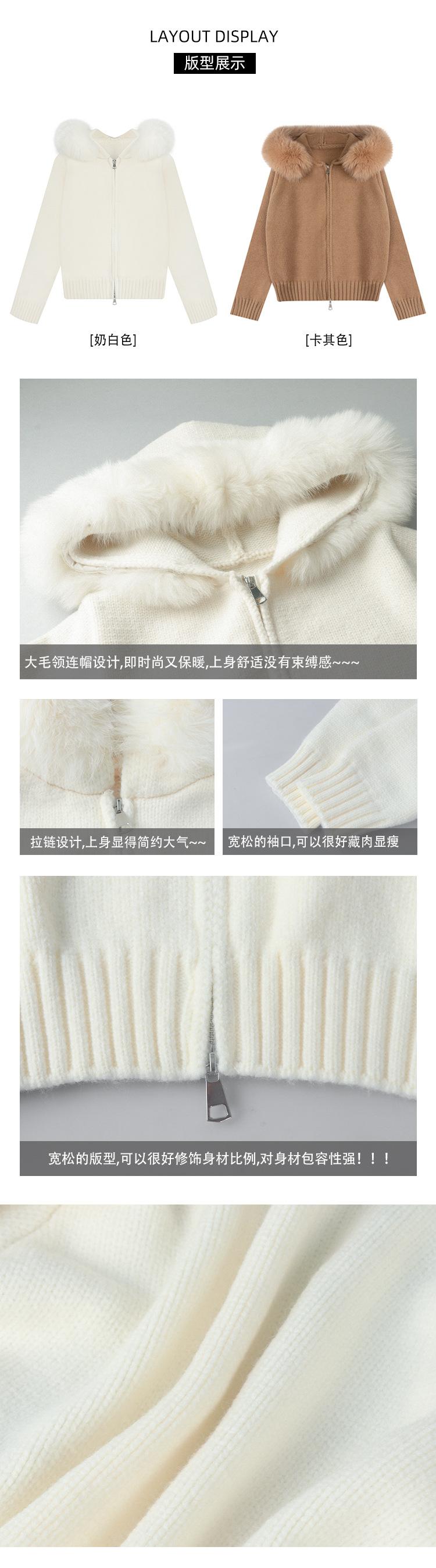 La decoración de piel de zorro muestra lujo y calidad. El diseño de cremallera del suéter es duradero.