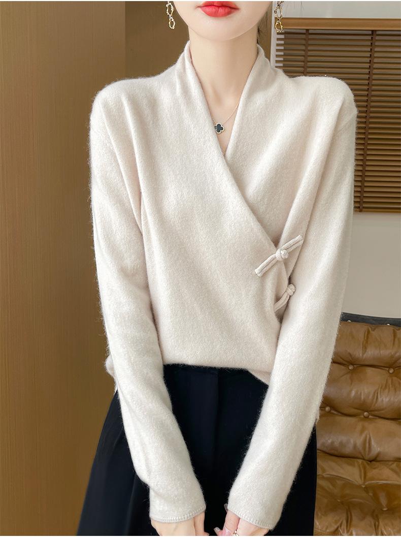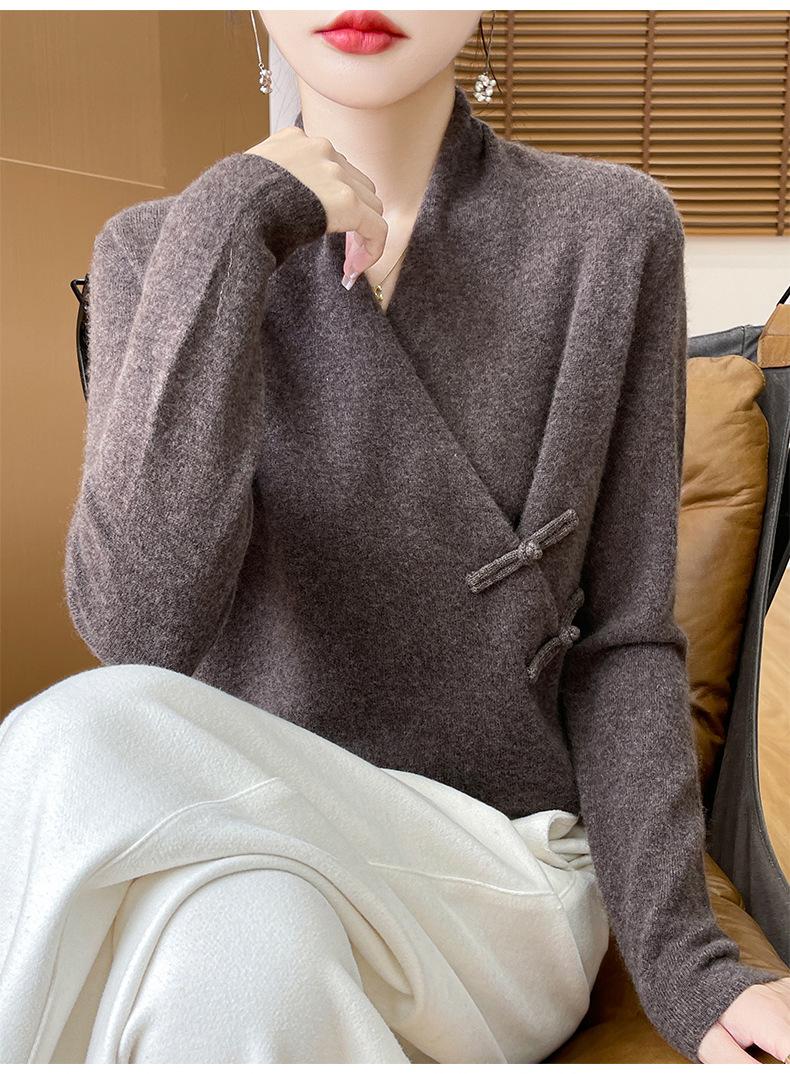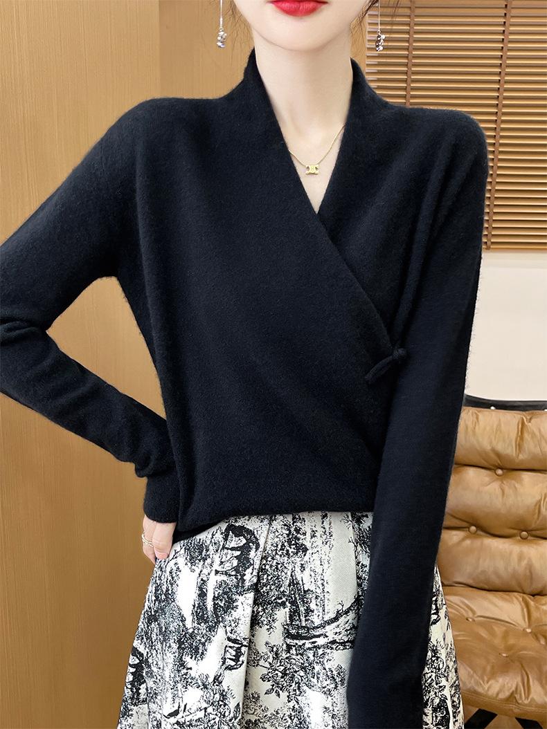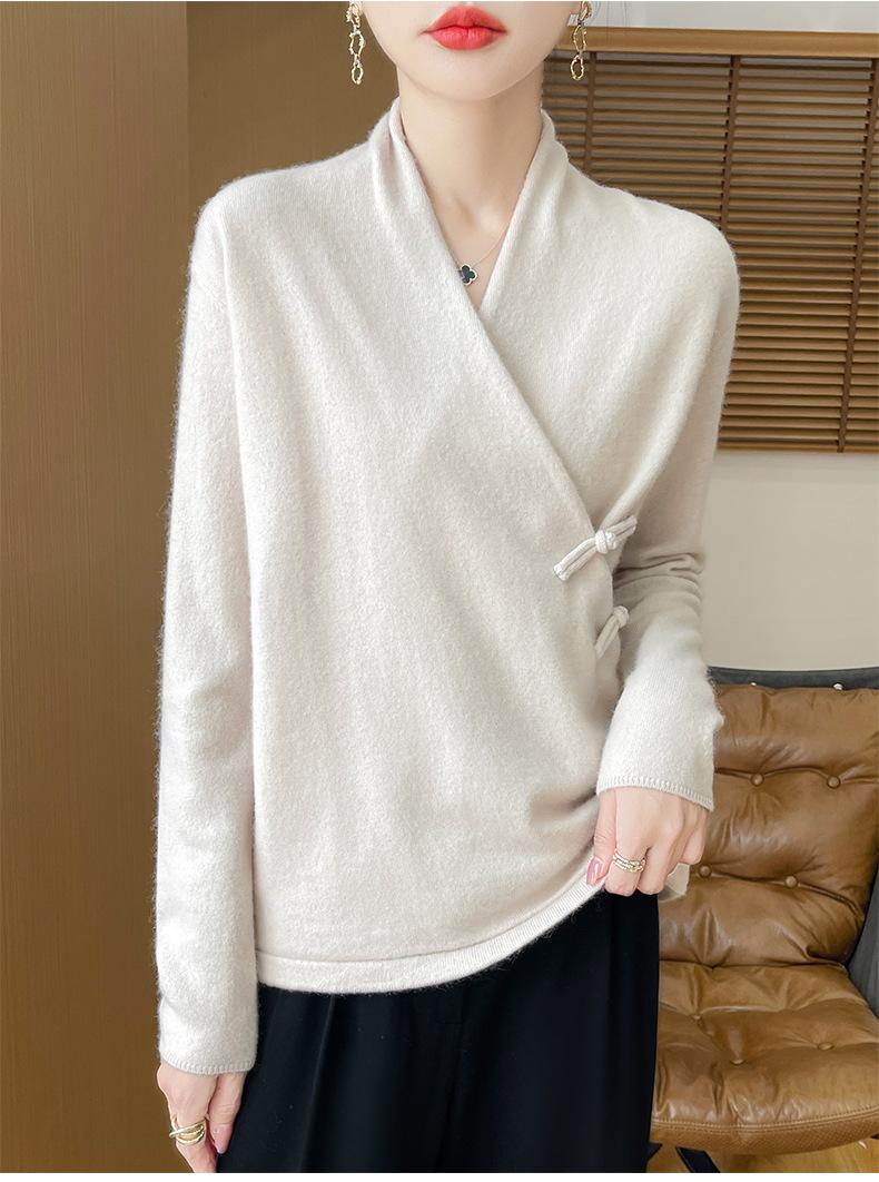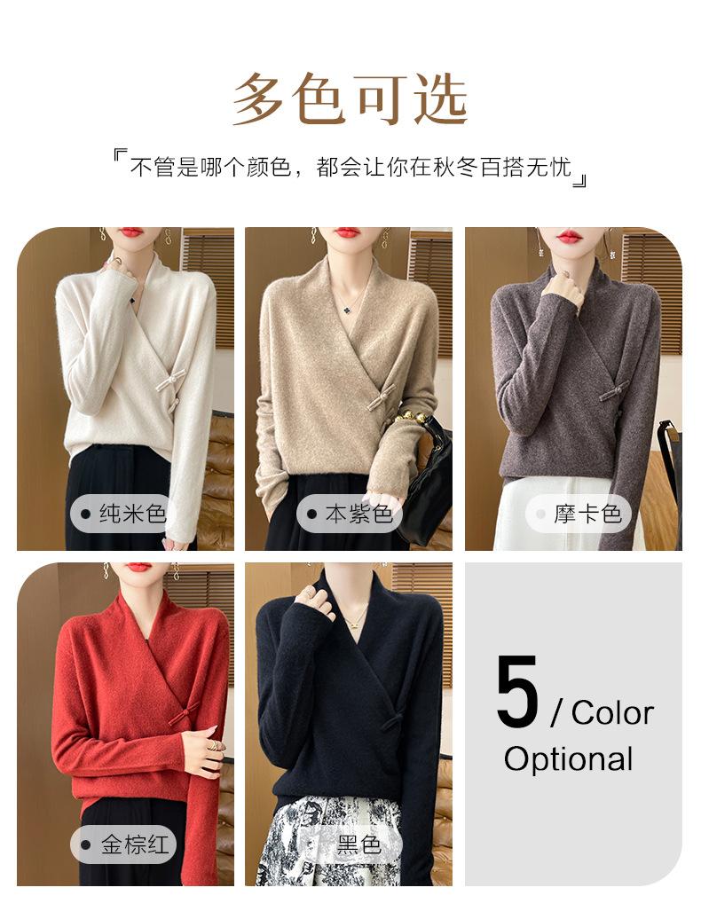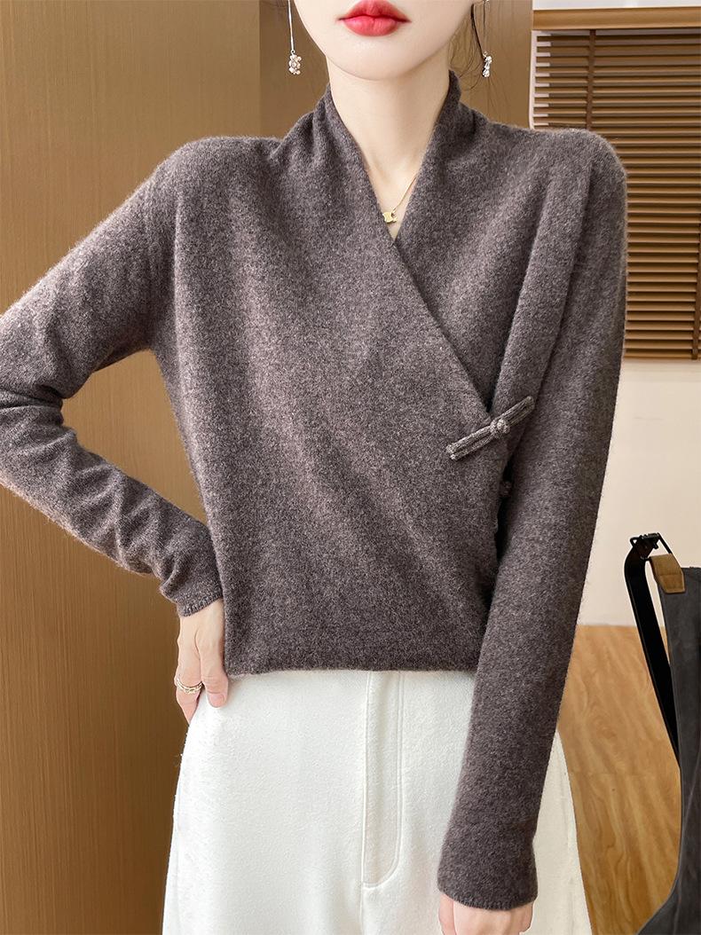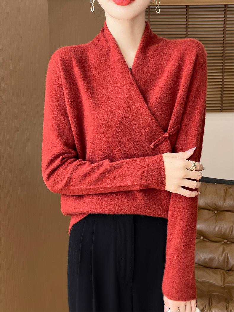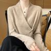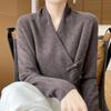 Suéter con hebilla de cuello cruzado 100 para mujer, moda de otoño e invierno, nuevo jersey de punto, suéter de camisa base, combina con todo, elegante