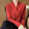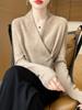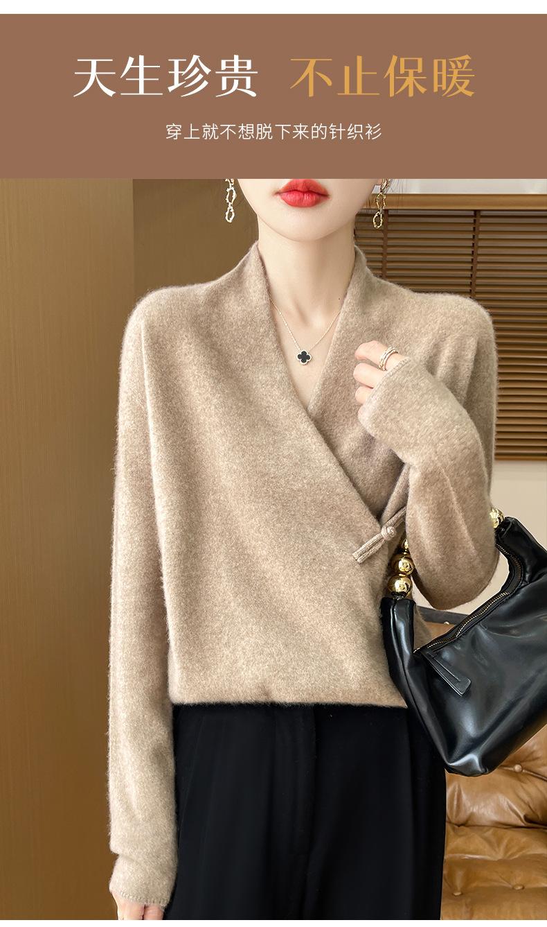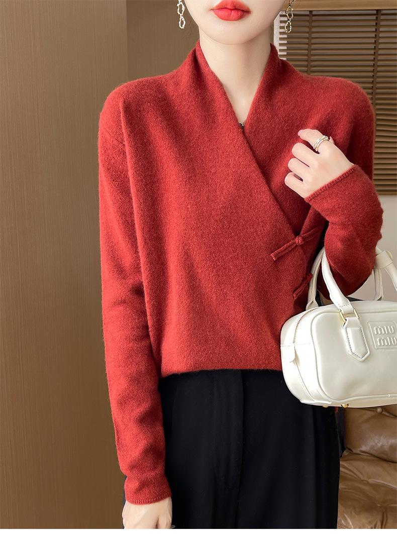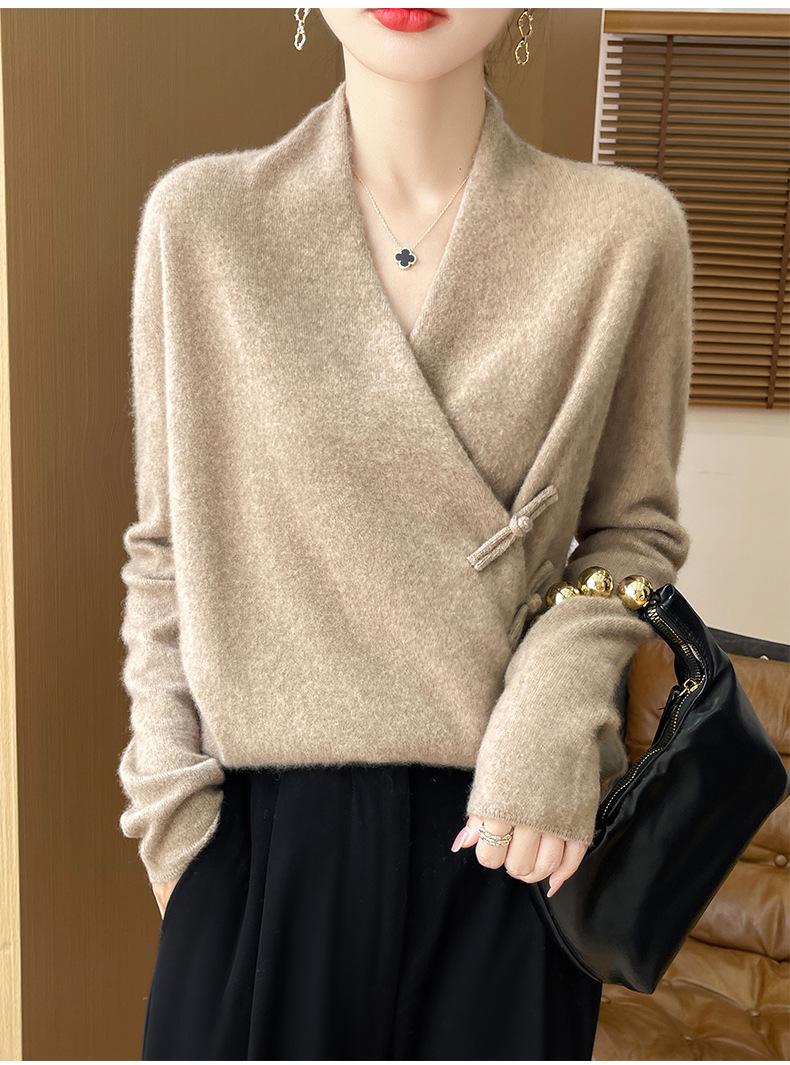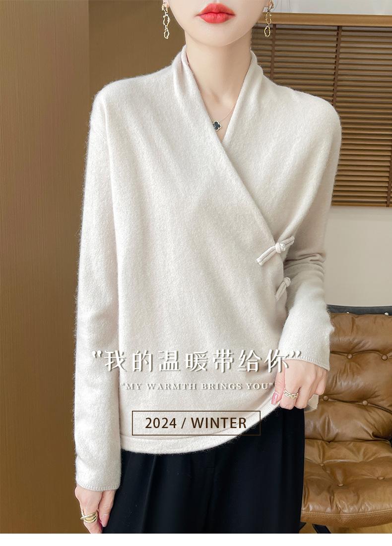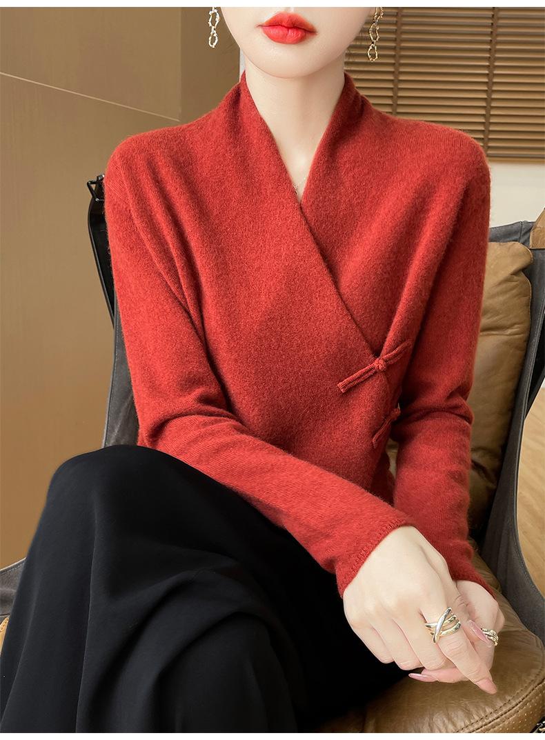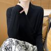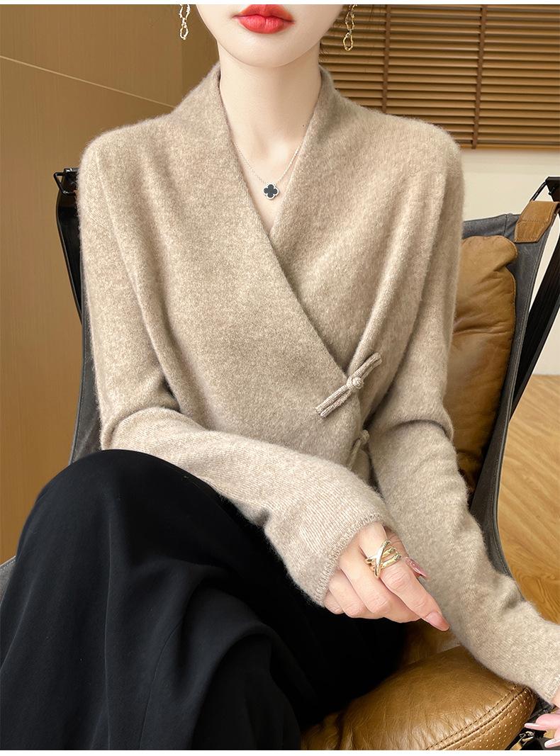 Suéter con hebilla de cuello cruzado 100 para mujer, moda de otoño e invierno, nuevo jersey de punto, suéter de camisa base, combina con todo, elegante