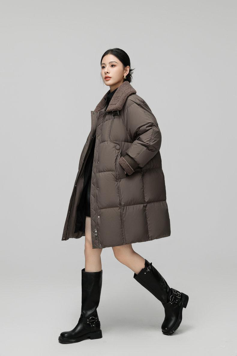 Chamarra de Plumas para Mujer de Alta Gama Invierno Nuevo Estilo Coreano Largo Medio para Mujer 90% plumón Plumón de Pato Cálido para Mujer Lago Plano Venta al por Mayor