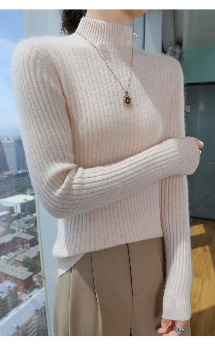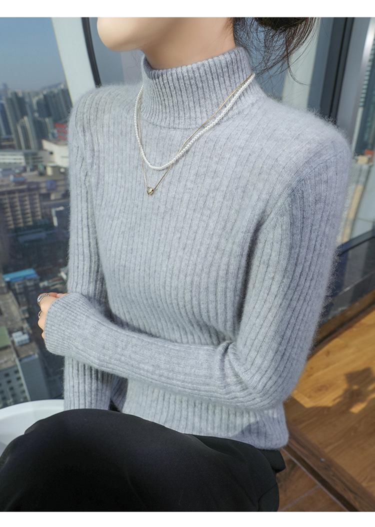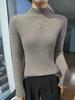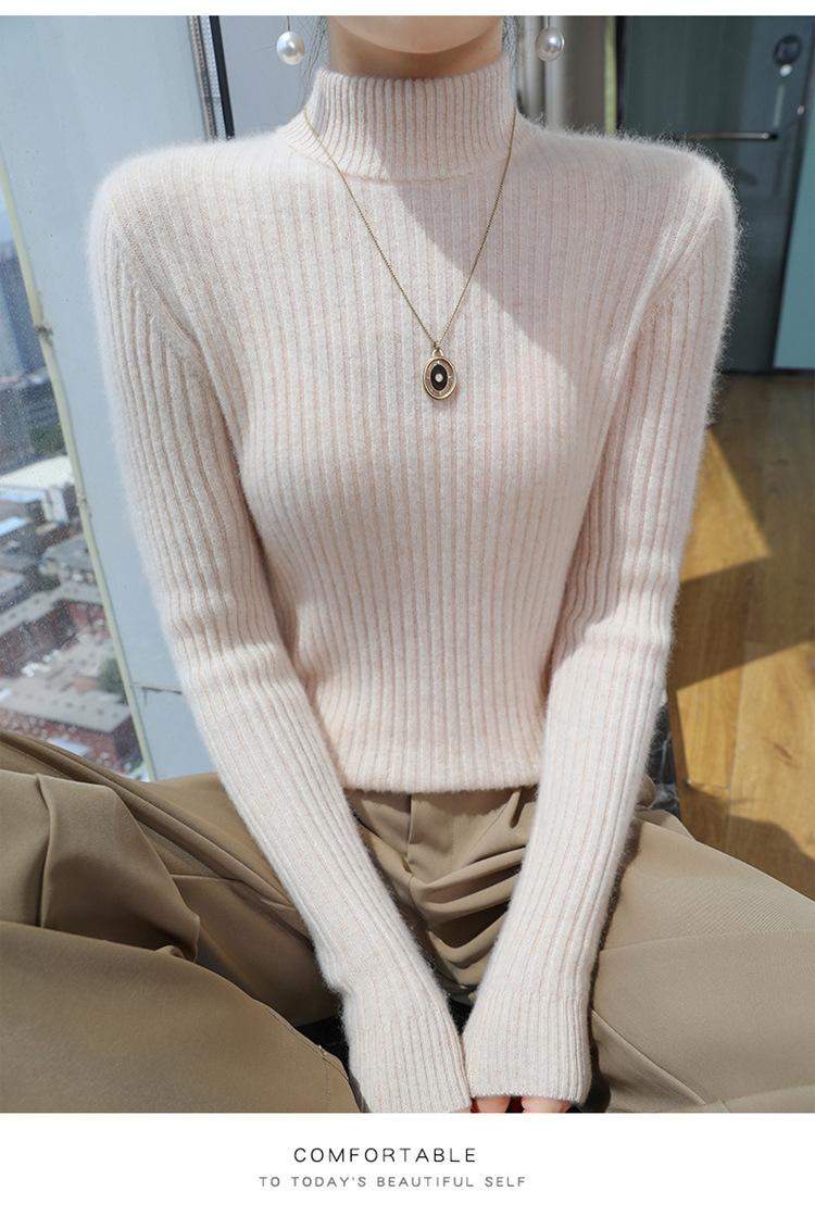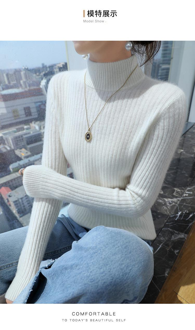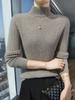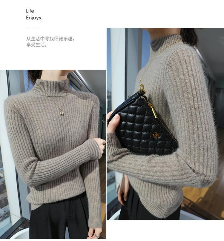 Suéter de lana pura para otoño e invierno, nuevo jersey corto ajustado de cuello alto para mujer, suéter cálido de lana de color liso, camisa de base de punto