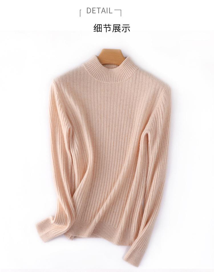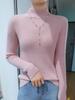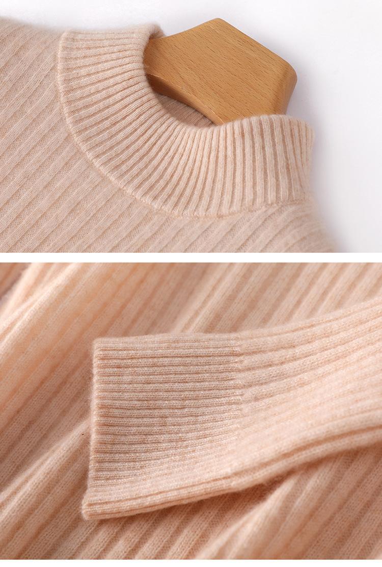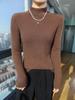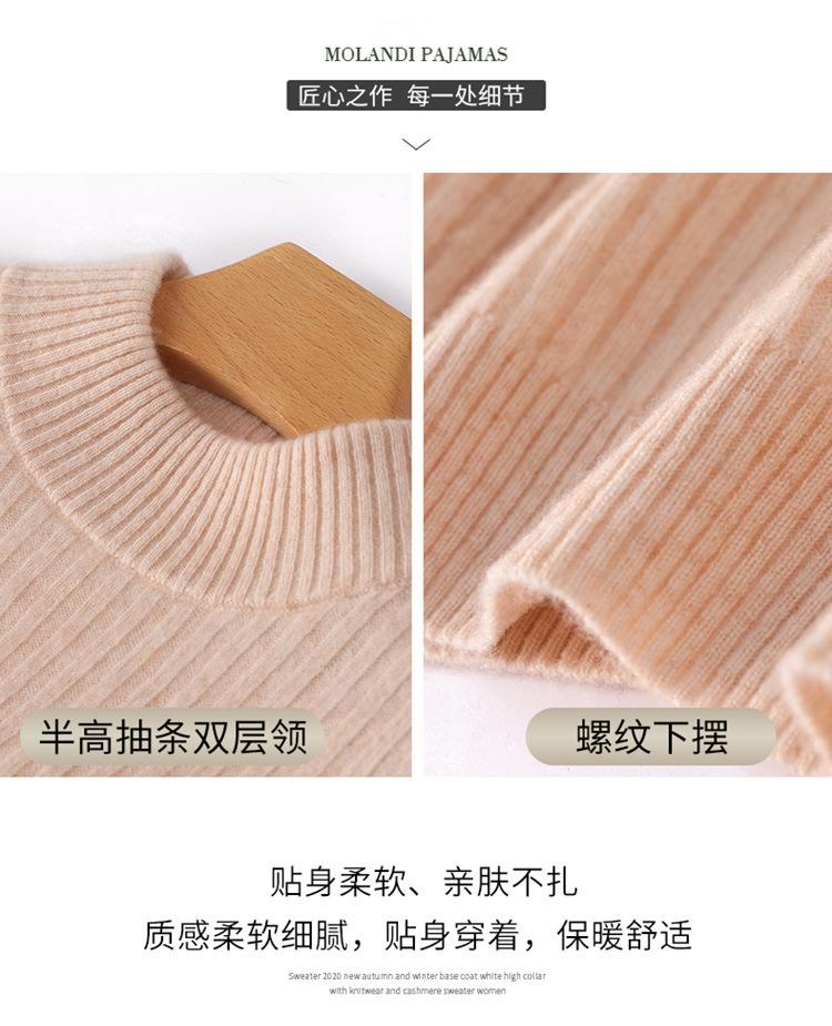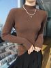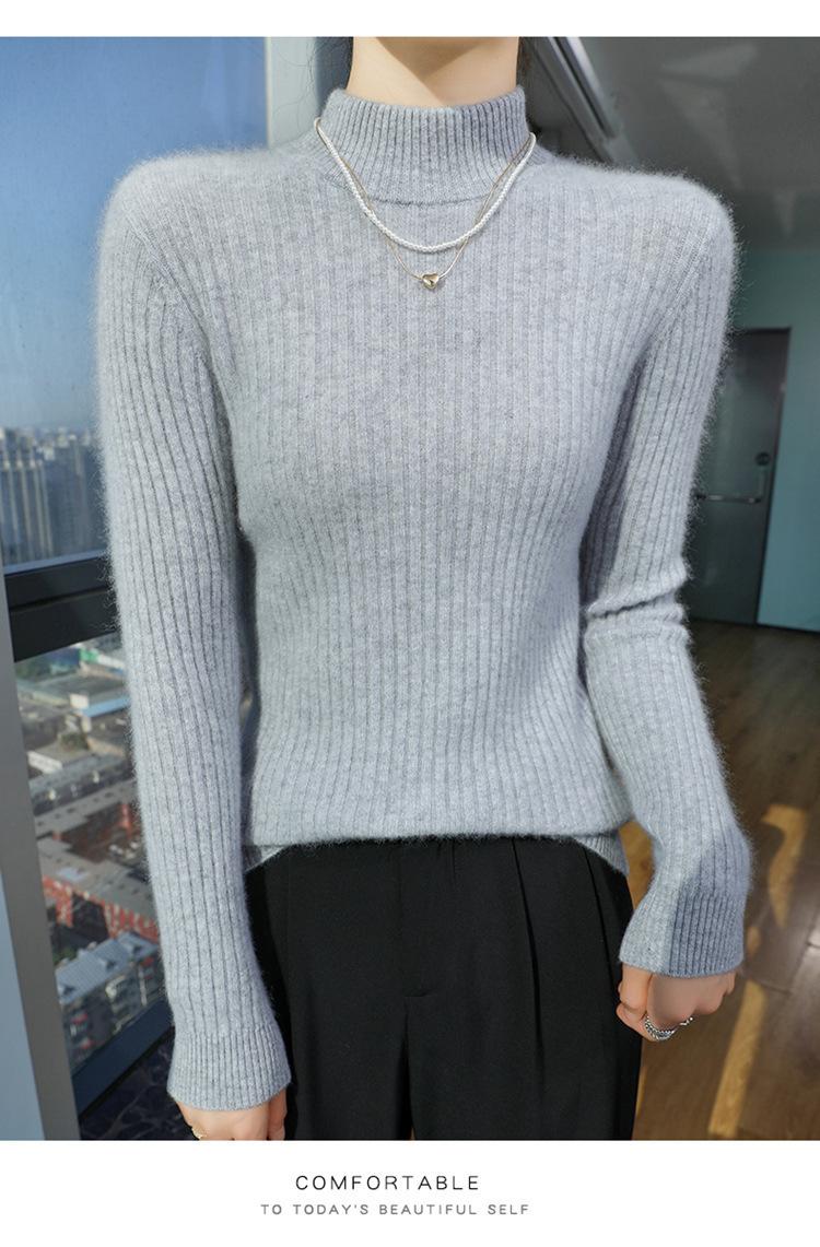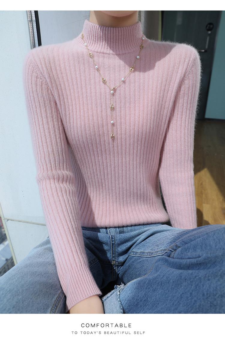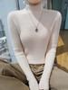 Suéter de lana pura para otoño e invierno, nuevo jersey corto ajustado de cuello alto para mujer, suéter cálido de lana de color liso, camisa de base de punto