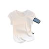 Verano Hombro Pequeño Slim Blanco Camiseta de Manga Corta para Mujer 2025 Nuevo Sin Mangas Caliente Top Europeo