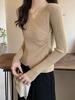 Camisa de punto con cuello en V cruzado para mujer, otoño e invierno 2024, nuevo diseño, suéter interior de estilo extranjero con sensación de moda
