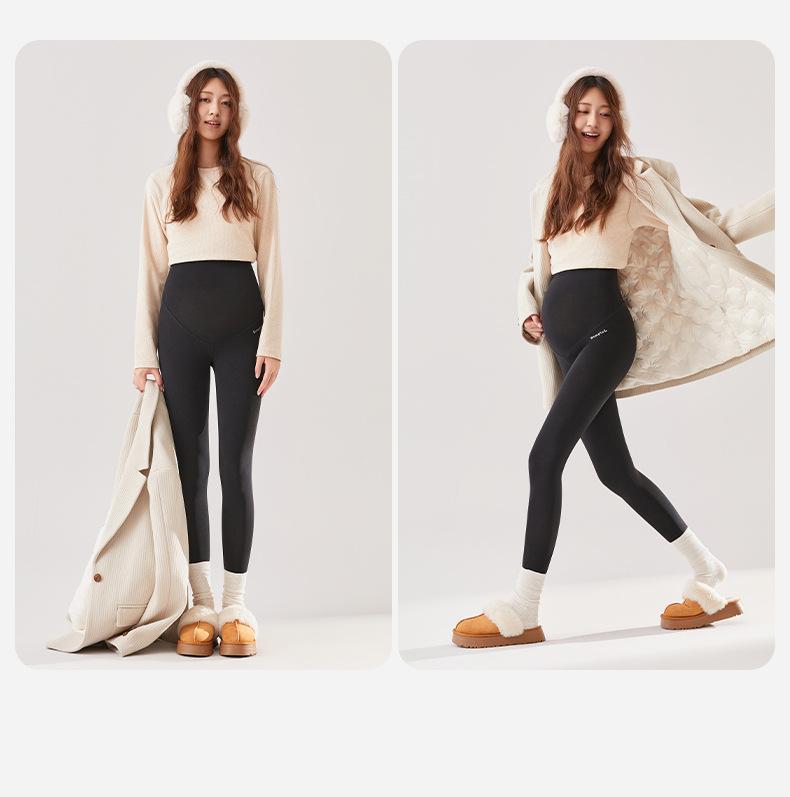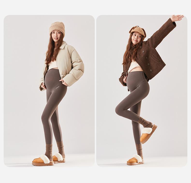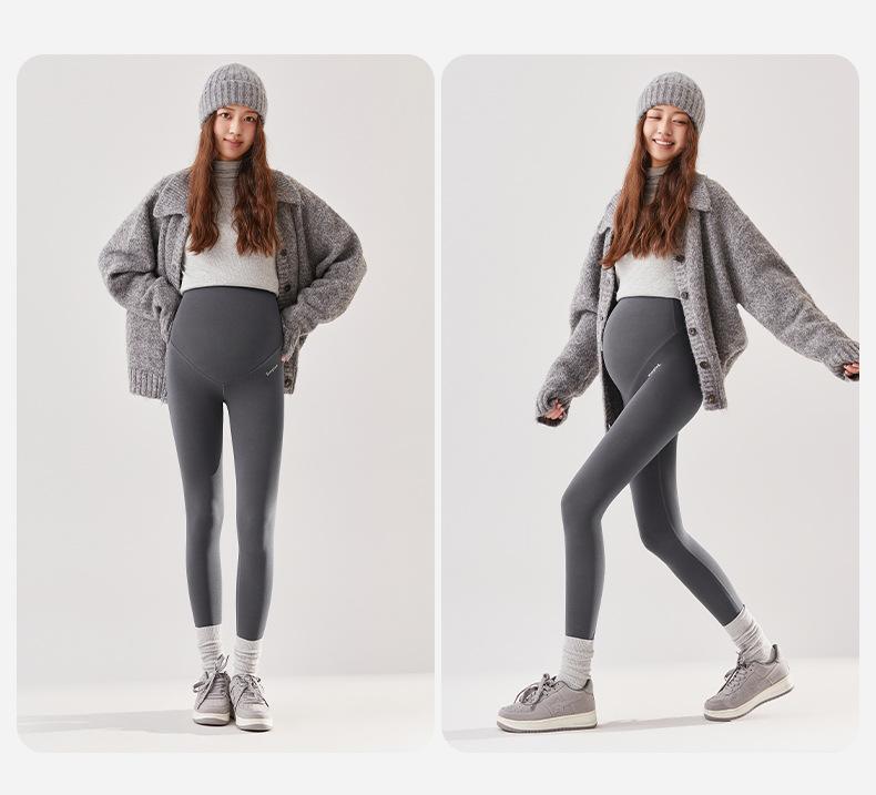 Leggings para embarazadas con forro polar grueso para otoño e invierno, nuevos pantalones cálidos para embarazadas, pantalones de cintura alta de talla grande para embarazadas.