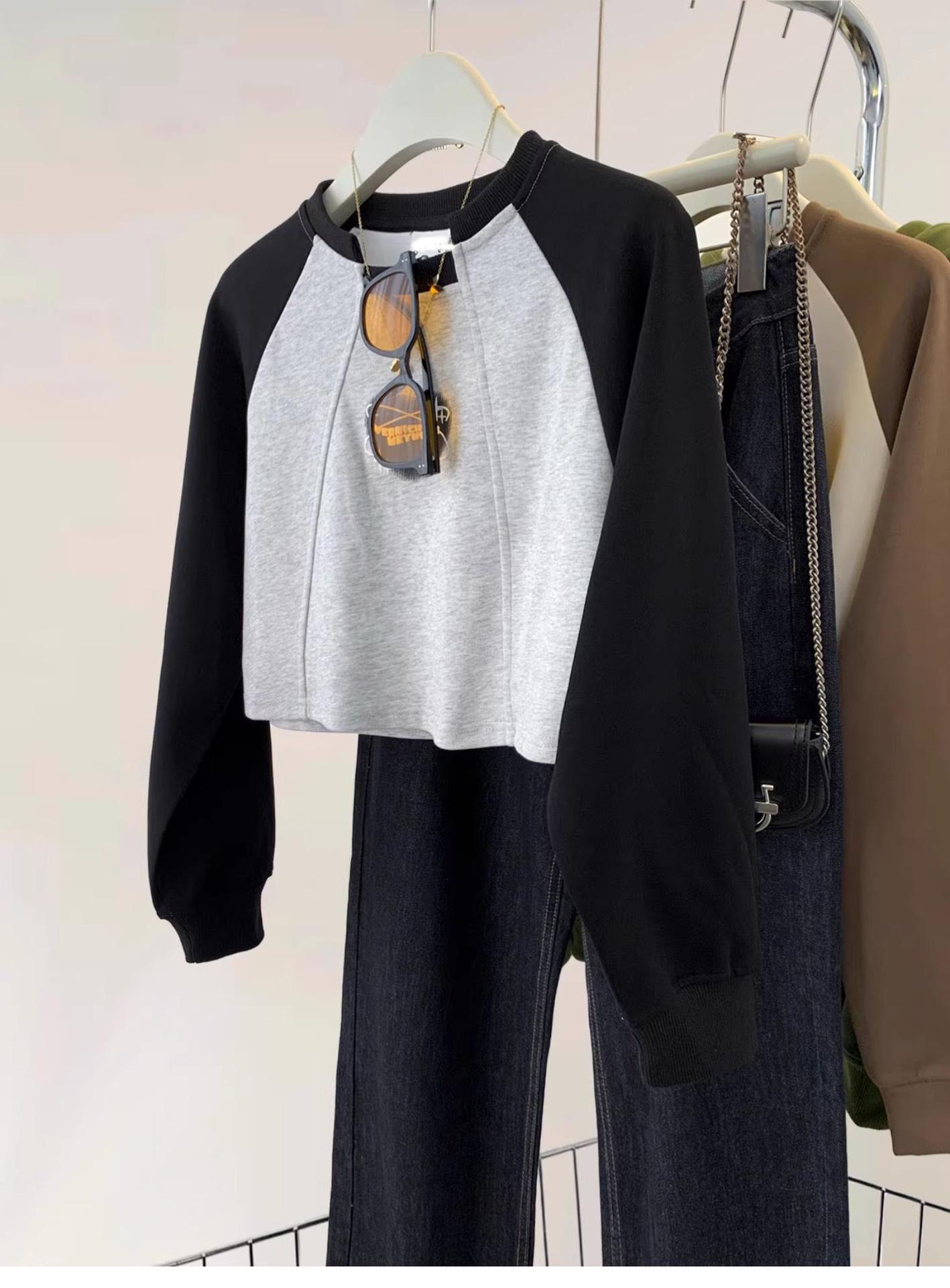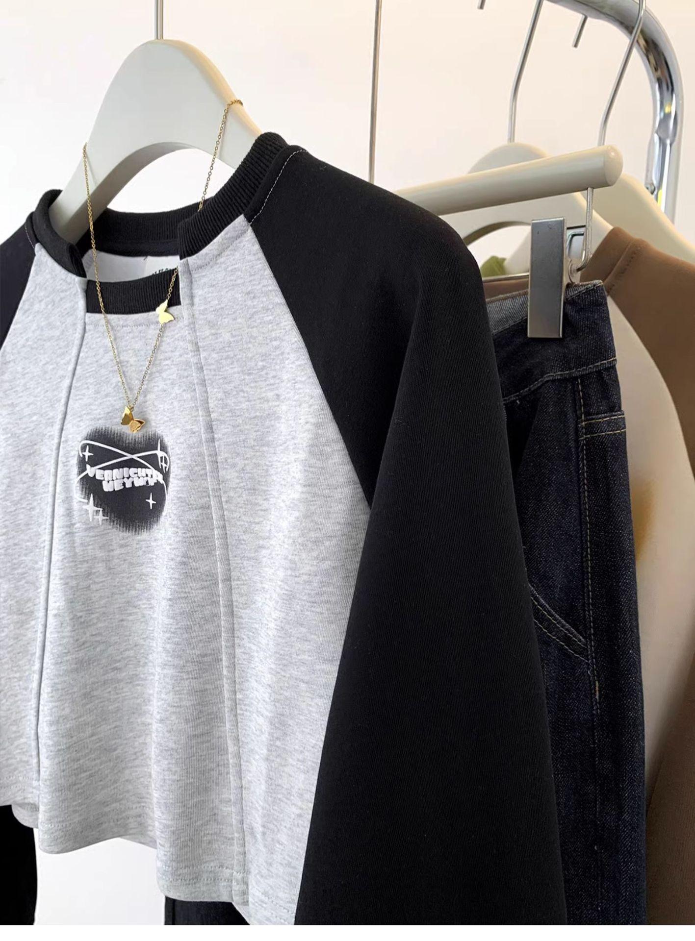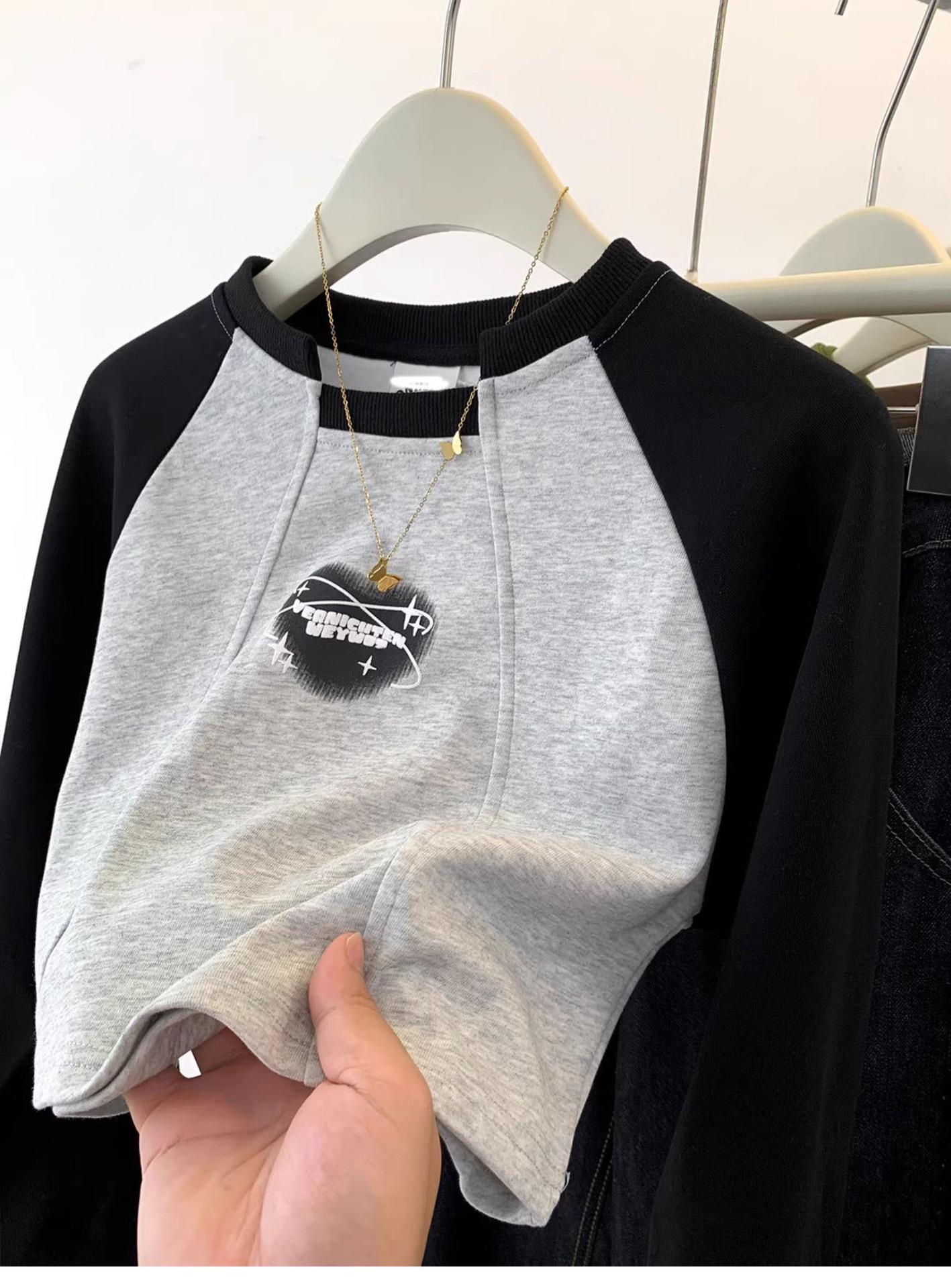 Sudadera irregular de hombros cortos para mujer, primavera y otoño, otoño 2024, nuevas explosiones, top de manga larga pequeño, principios de otoño