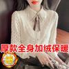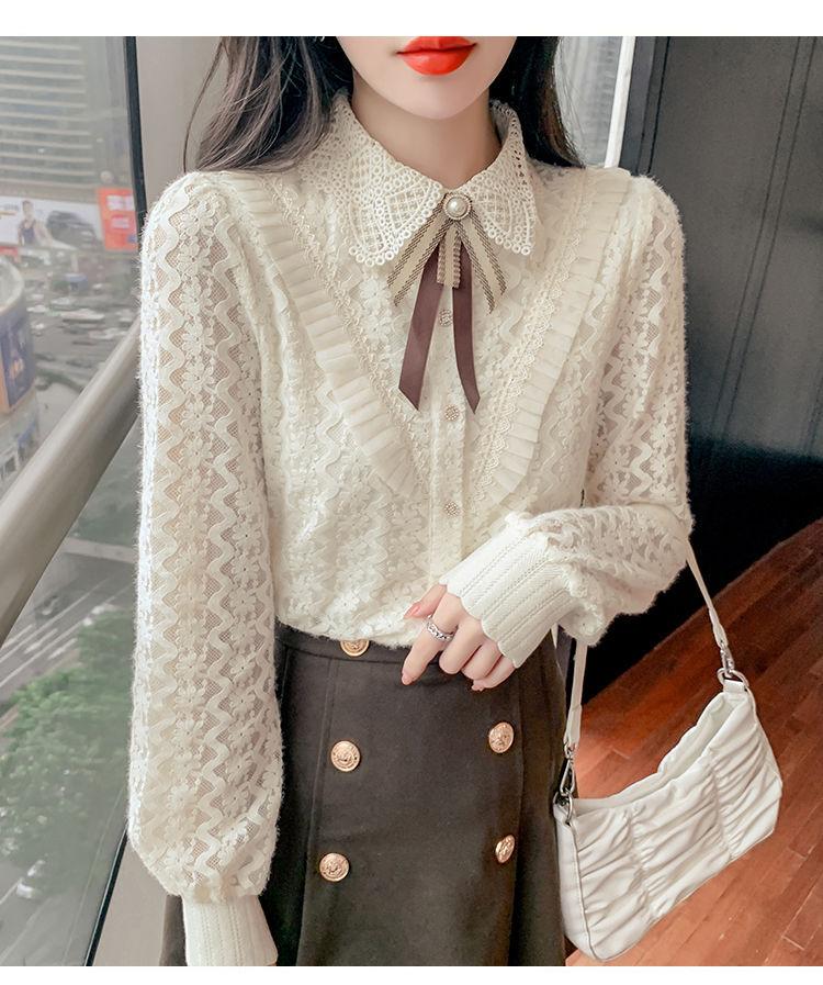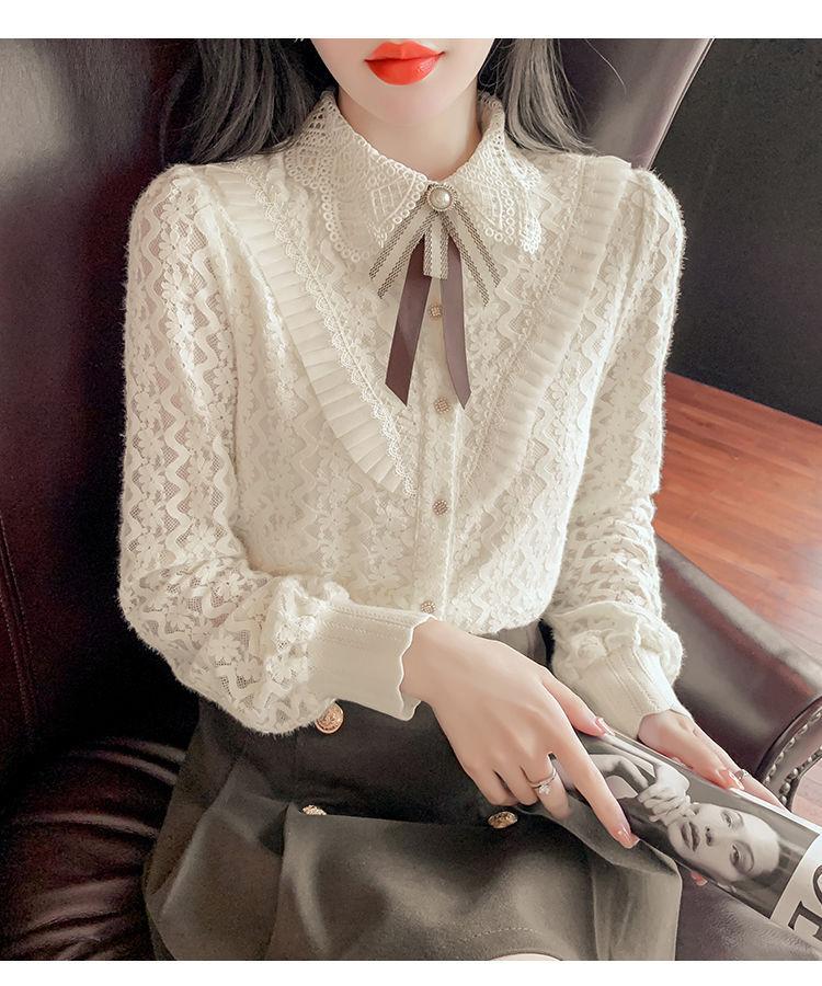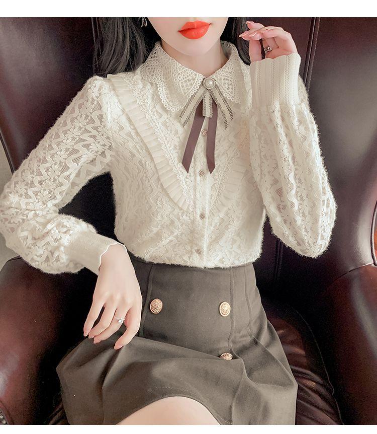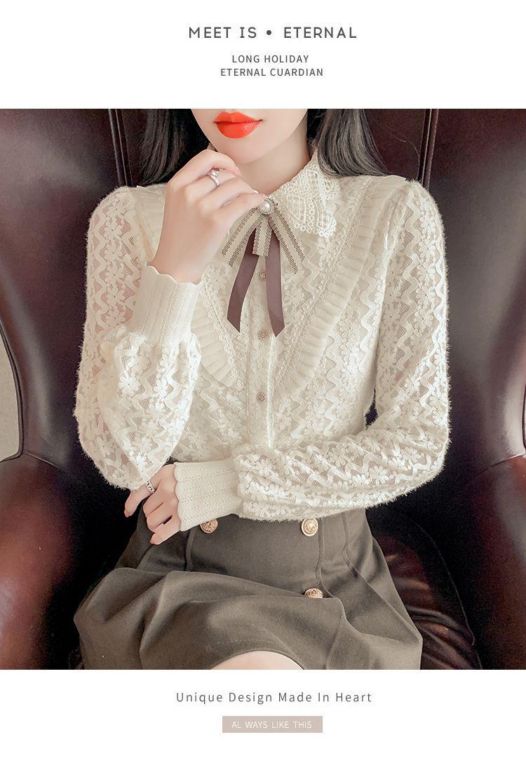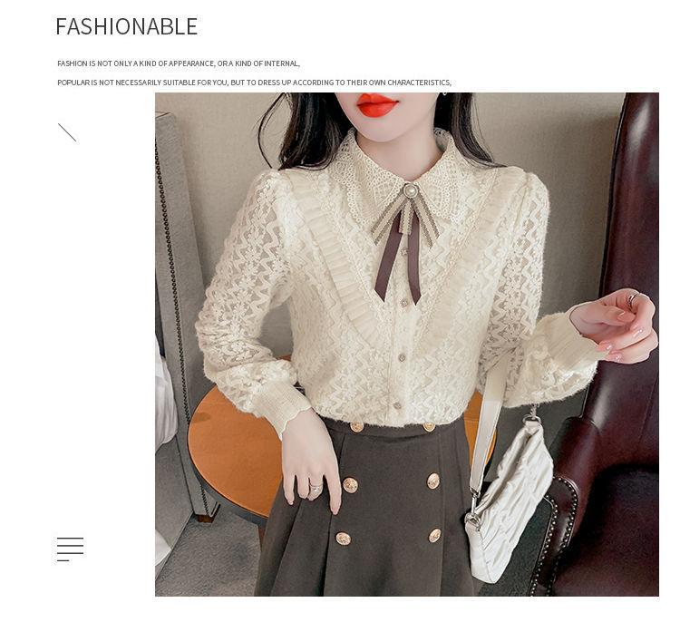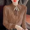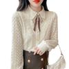 Camisa básica para mujer, otoño e invierno 2024, nueva moda, camisa de encaje suelta de alta gama, elegante, combinable, camisa superior antiedad
