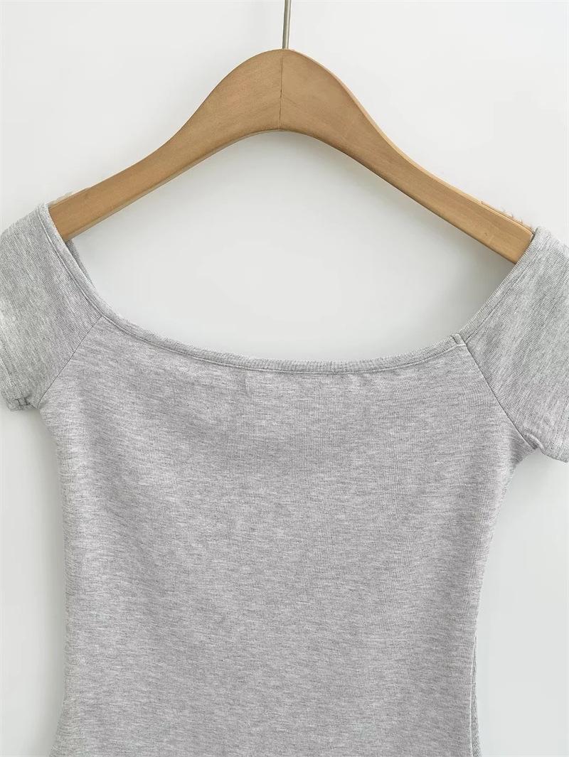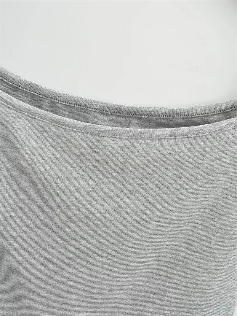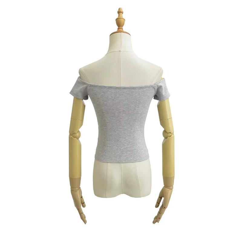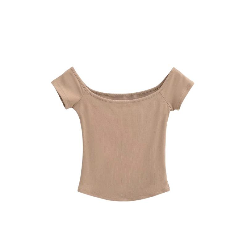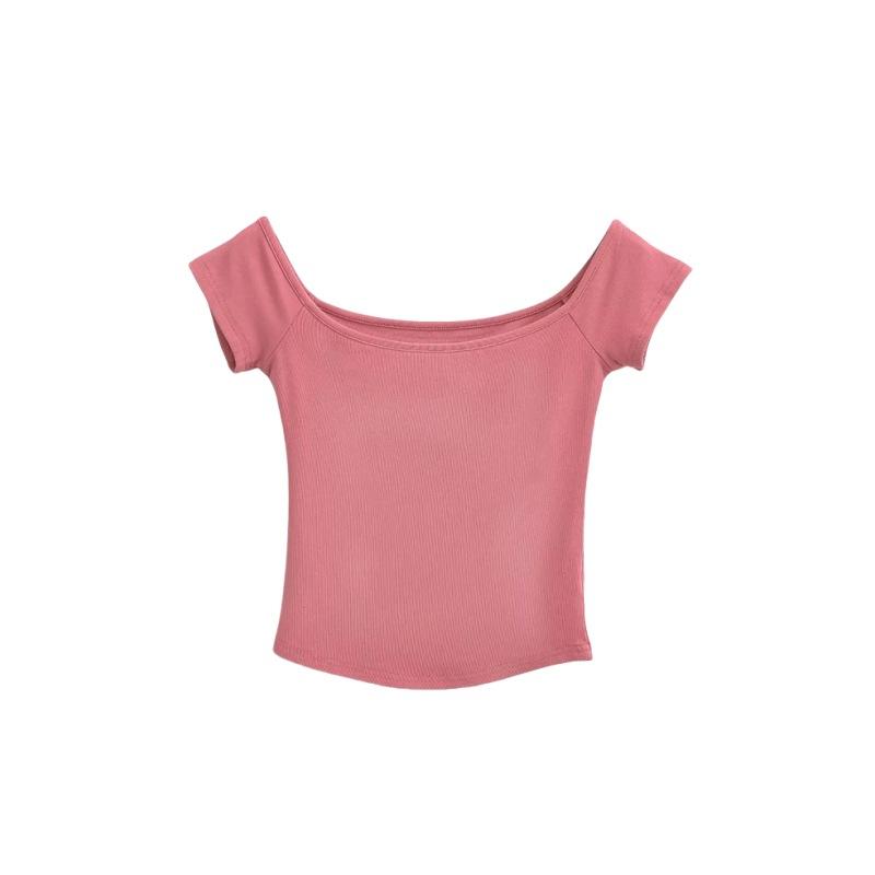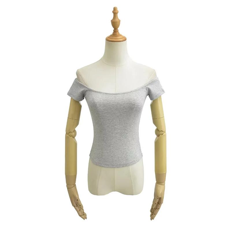 Camiseta de manga corta con cuello de un solo personaje y hombros descubiertos, estilo blogger europeo y americano, estilo Spice Girls de nicho para mujer, elástica, ajustada y corta.