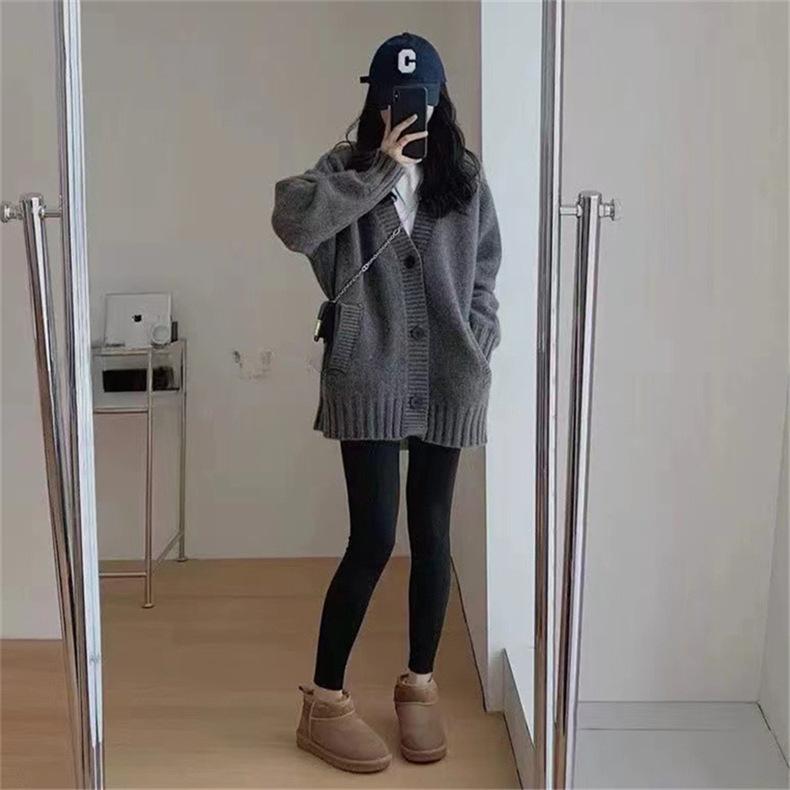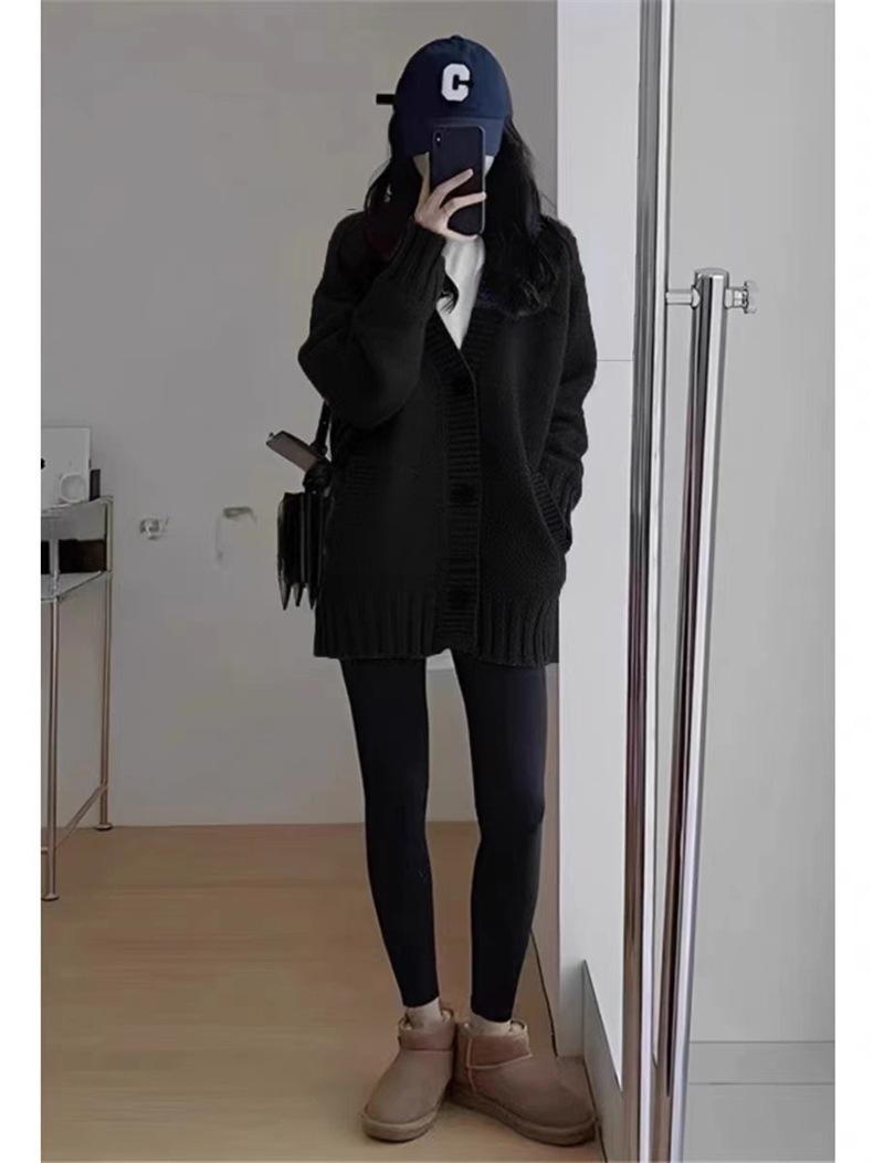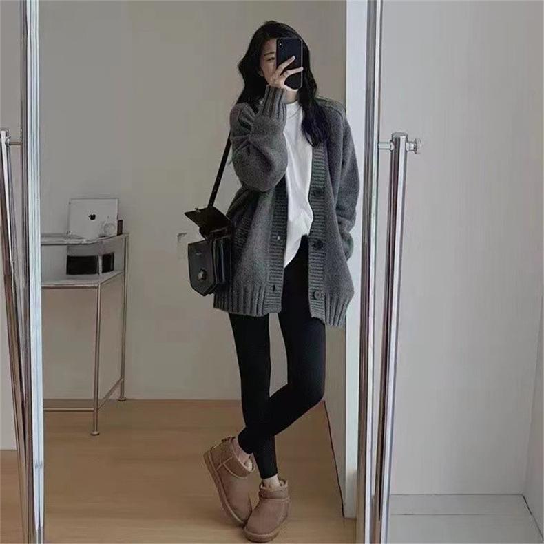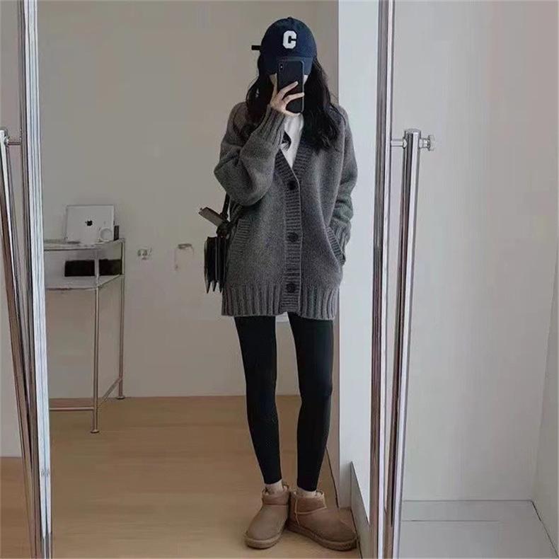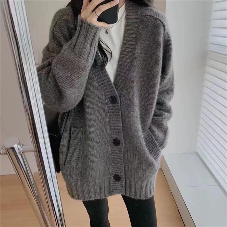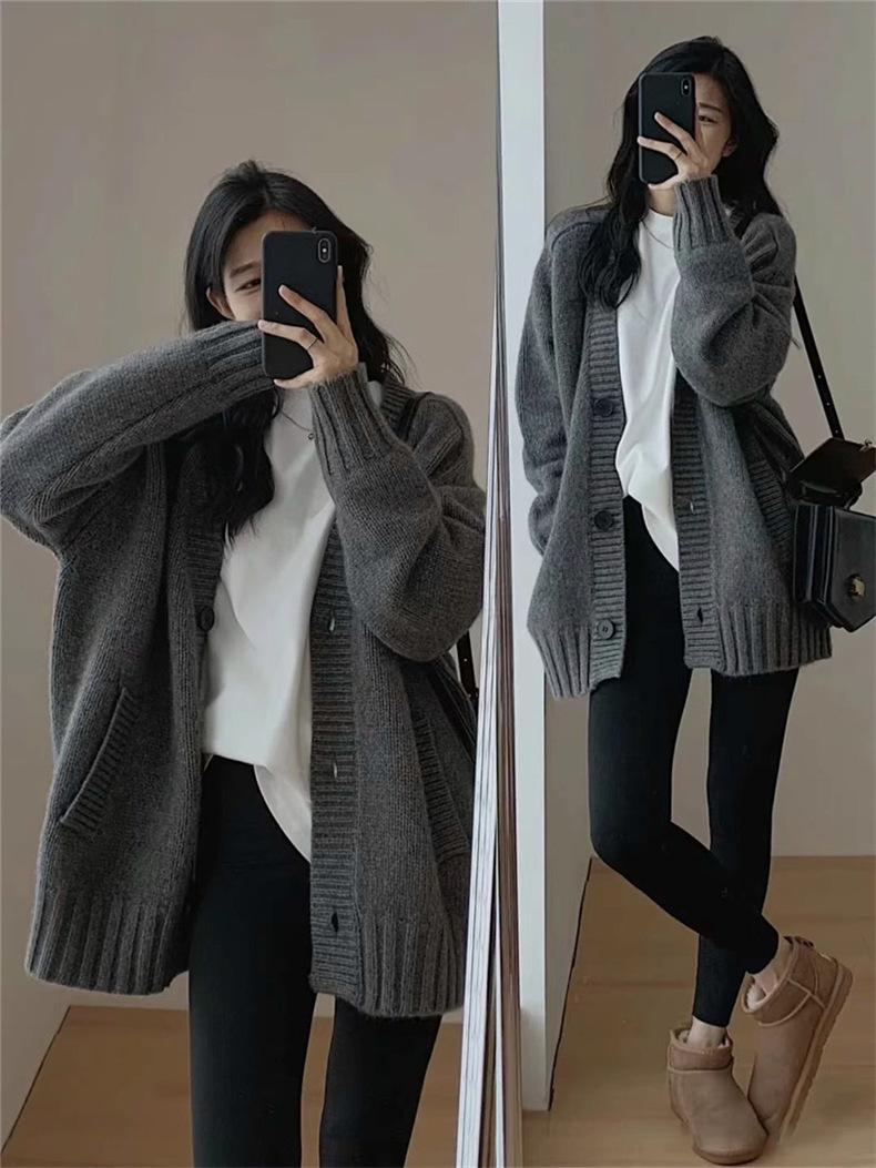 Suéter de Lana Estilo Coreano de Talla Grande Estilo Lazy Suave Cera Suéter Ropa Exterior para Mujer Otoño e Invierno Cachemira Nuevo Cárdigan de Punto de Largo Medio