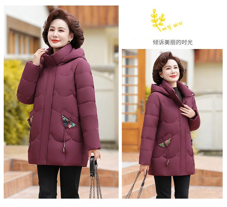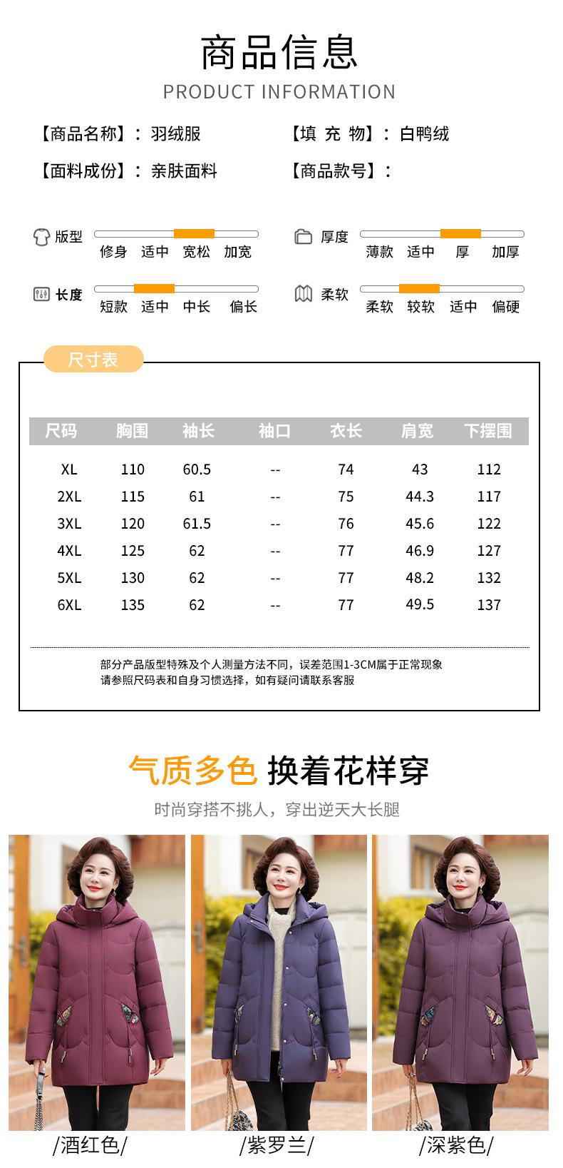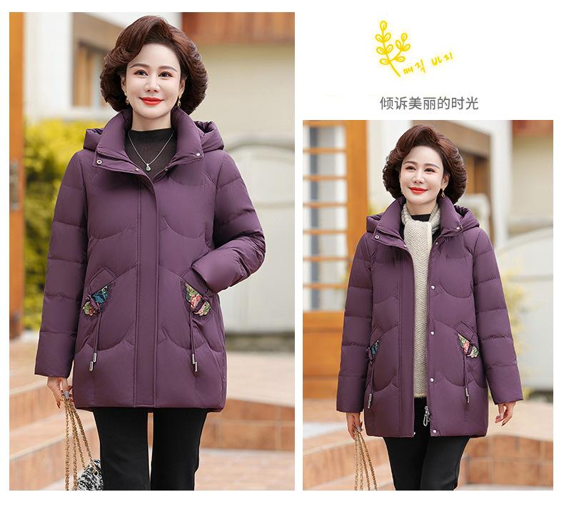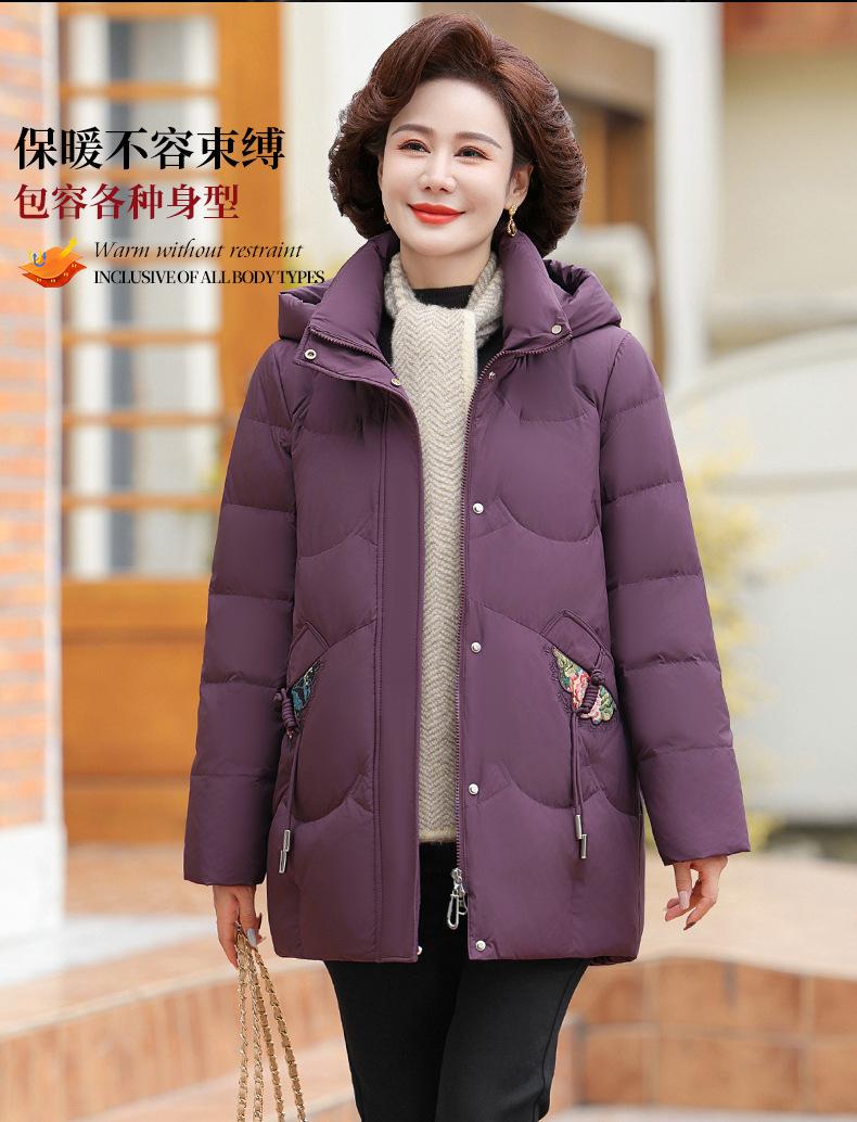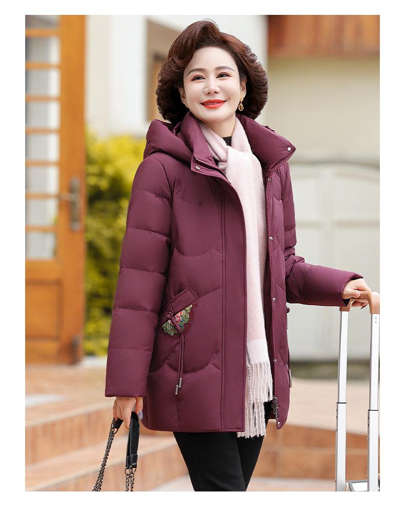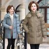 Chamarra de plumón de invierno para madre de mediana edad 2024 nuevo temperamento media longitud para mujeres de mediana edad y mayores chamarra de plumón de pato blanco