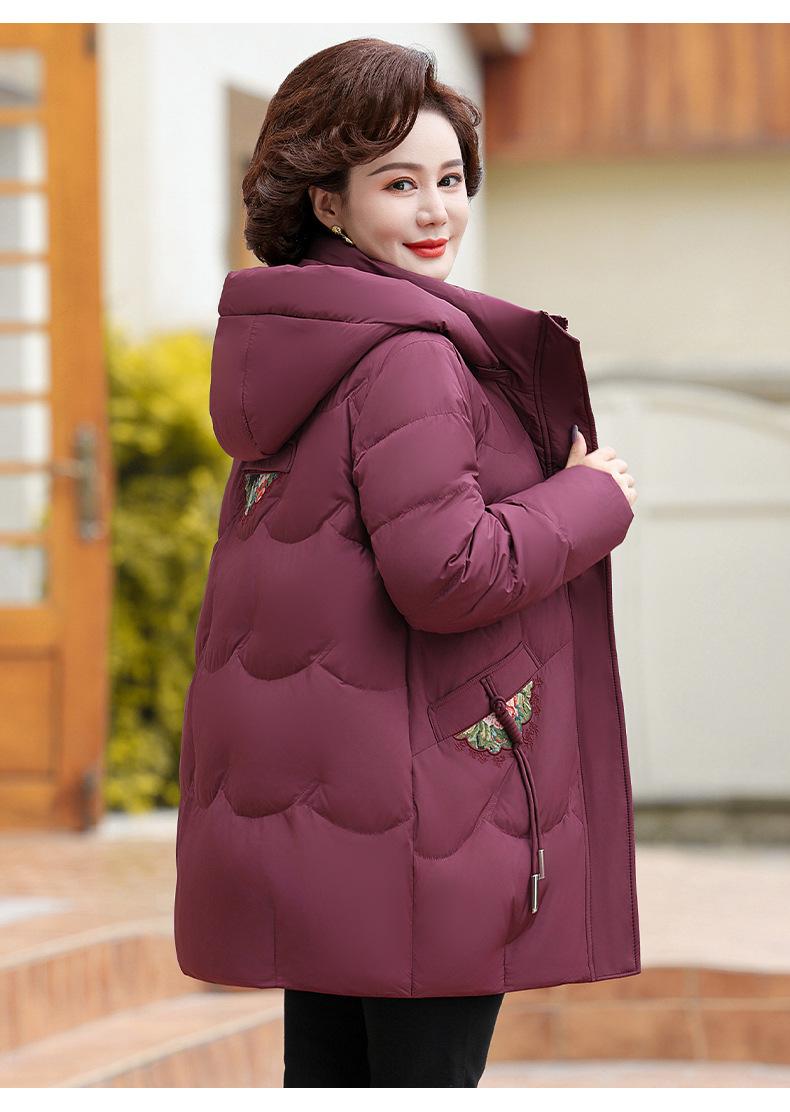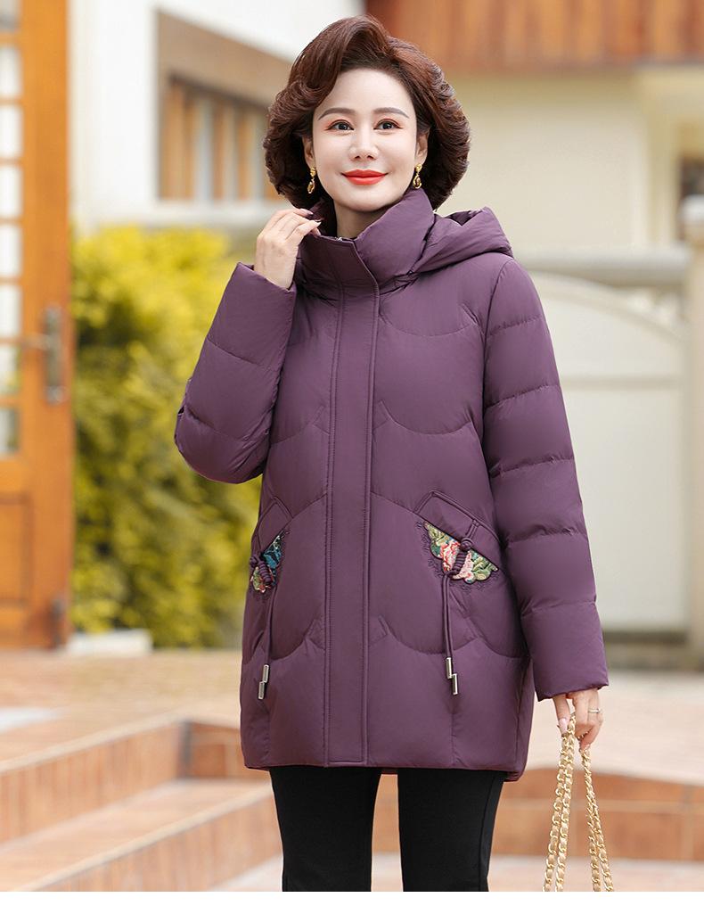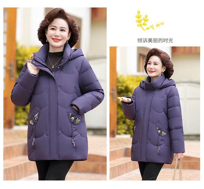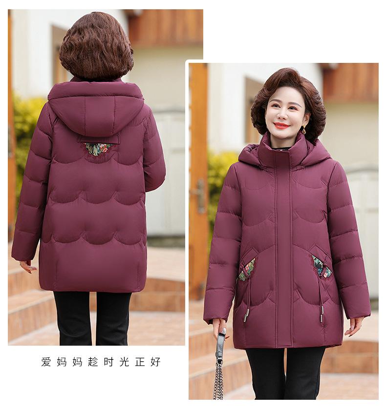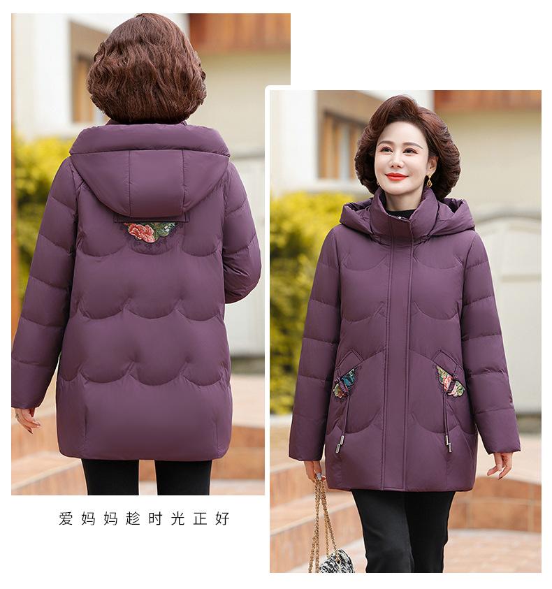 Chamarra de plumón de invierno para madre de mediana edad 2024 nuevo temperamento media longitud para mujeres de mediana edad y mayores chamarra de plumón de pato blanco