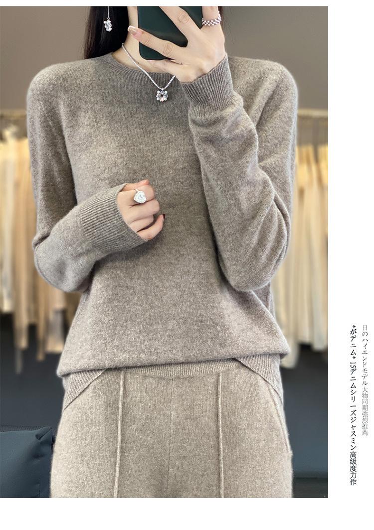 Suéter de otoño e invierno nuevo al por mayor de fábrica, suéter de cuello redondo para mujer, suéter delgado, abrigo base de punto Joker