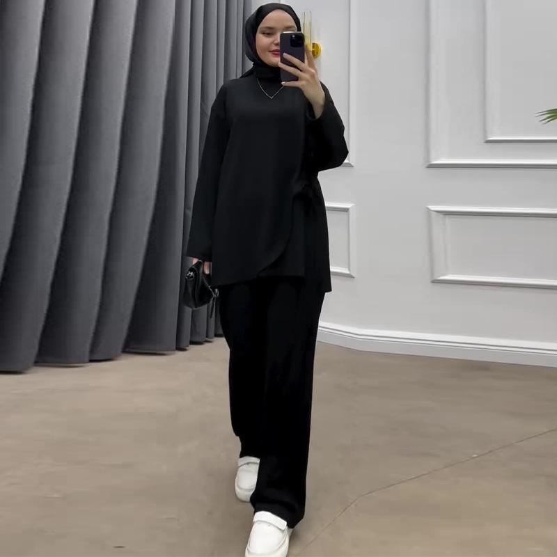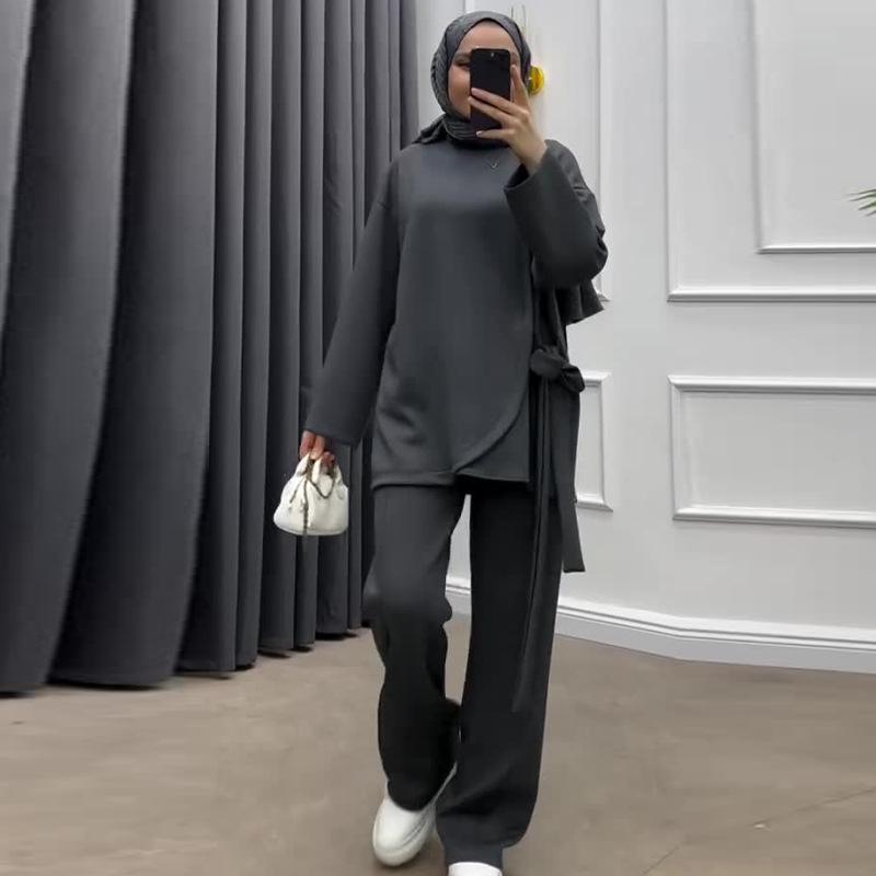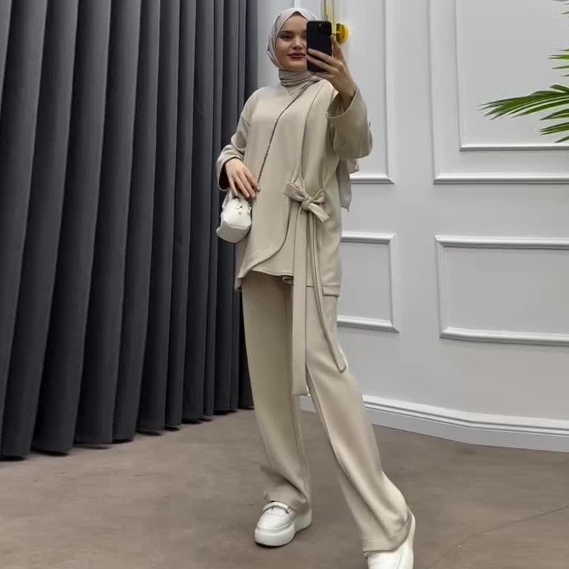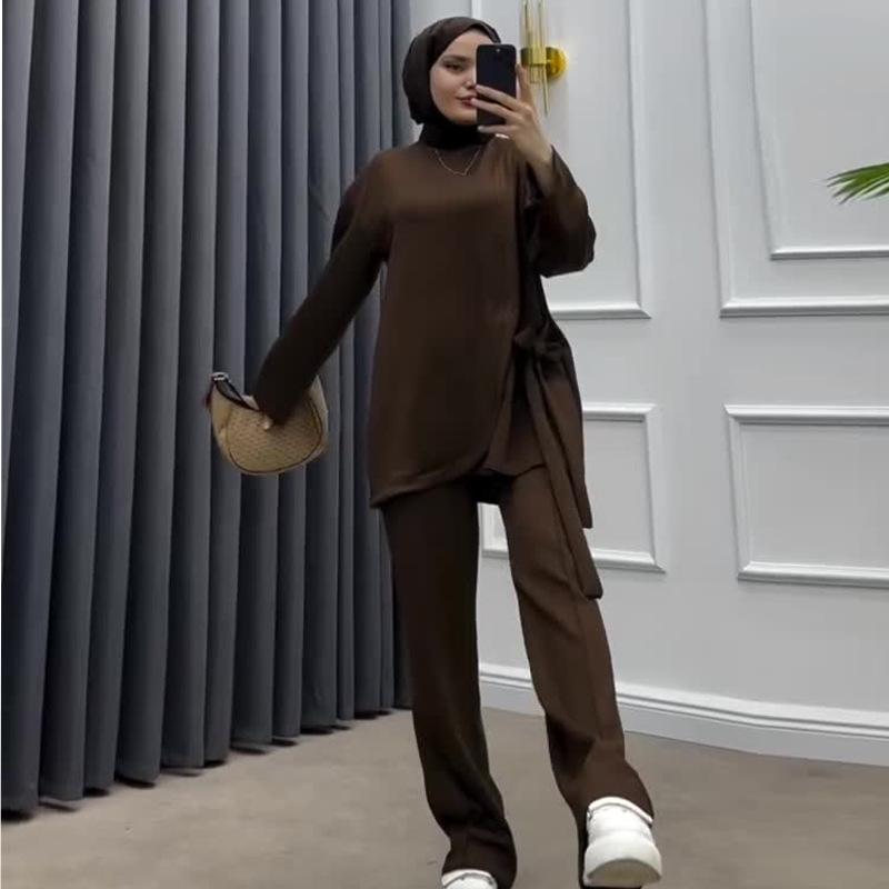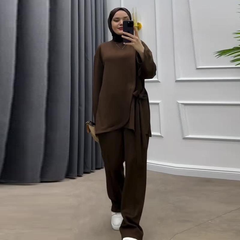 Otoño 2024 Nuevo Europeo y Americano Amazon Transfronterizo para Mujer Color Sólido Diseño con Cordones Top Pantalones Combinables Conjunto de Dos Piezas