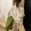 Suéter de cuello alto de color sólido estilo coreano para mujer, corto, otoño e invierno, estilo perezoso, suave, ceroso, grueso, elegante, básico, tejido