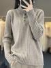 Suéter de lana para mujer, cuello alto, botones semiabiertos, camisa de punto, suéter grueso adelgazante para otoño e invierno