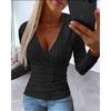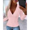 2024Ebay Aliexpress Wish Popular Otoño e Invierno Sencillo Manga Larga Cuello V Jersey Tejido para Mujer Top de Mujer