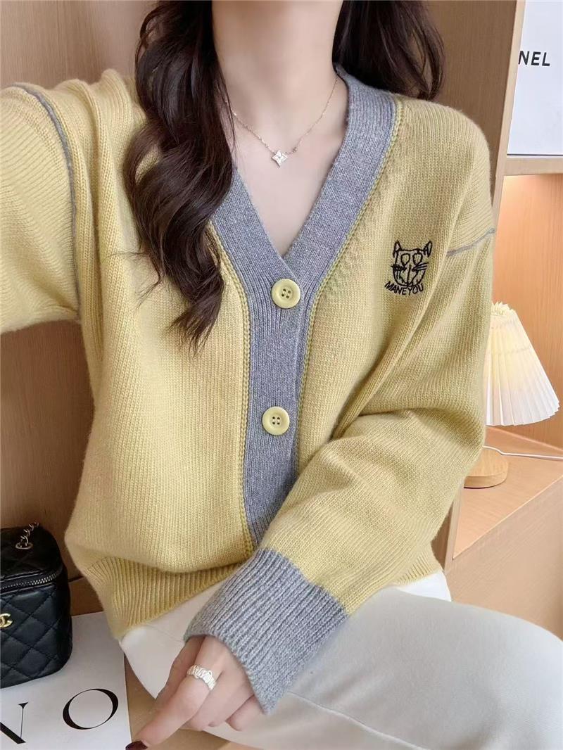 Suéter de Rayas para Mujer de Principios de Otoño Chaqueta Cárdigan Tejida Ropa Exterior para Mujer 2025 Nueva Primavera y Otoño Ropa Exterior Top Corto