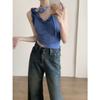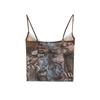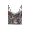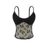 Verano Nuevo Retro Chica Caliente Cuello en V Encaje Recorte Slim Top Corto Camisola Estampada Europea y Americana para Mujer