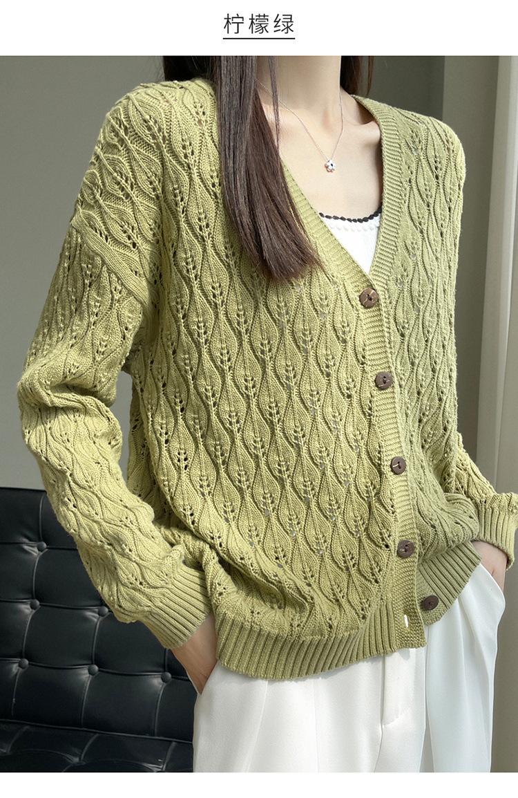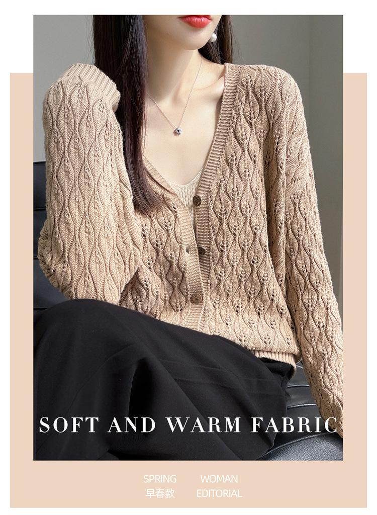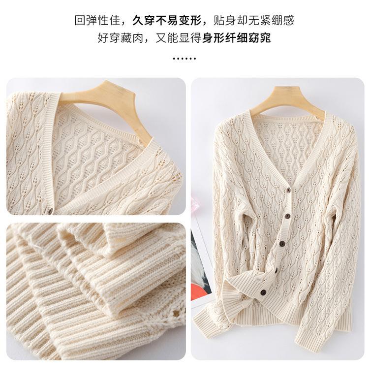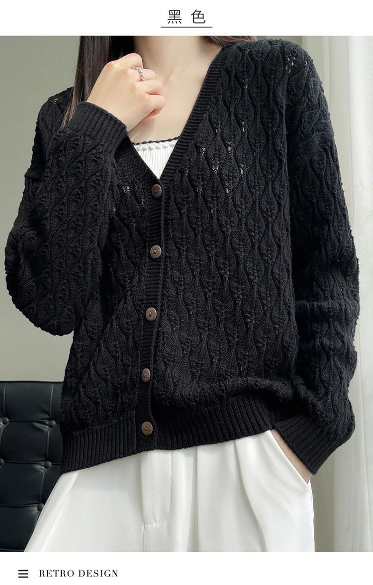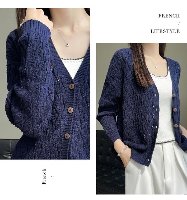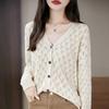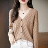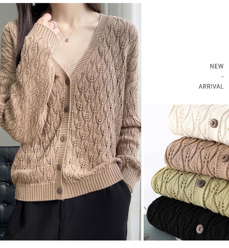 2024 Nuevo Cárdigan Calado de Otoño Top Estilo V Cuello Algodón Talla Grande Suéter para Mujer Abrigo para Mujer