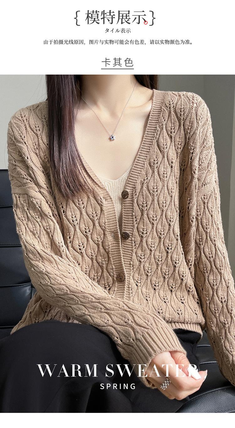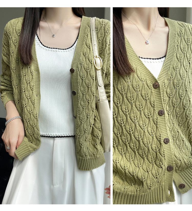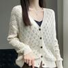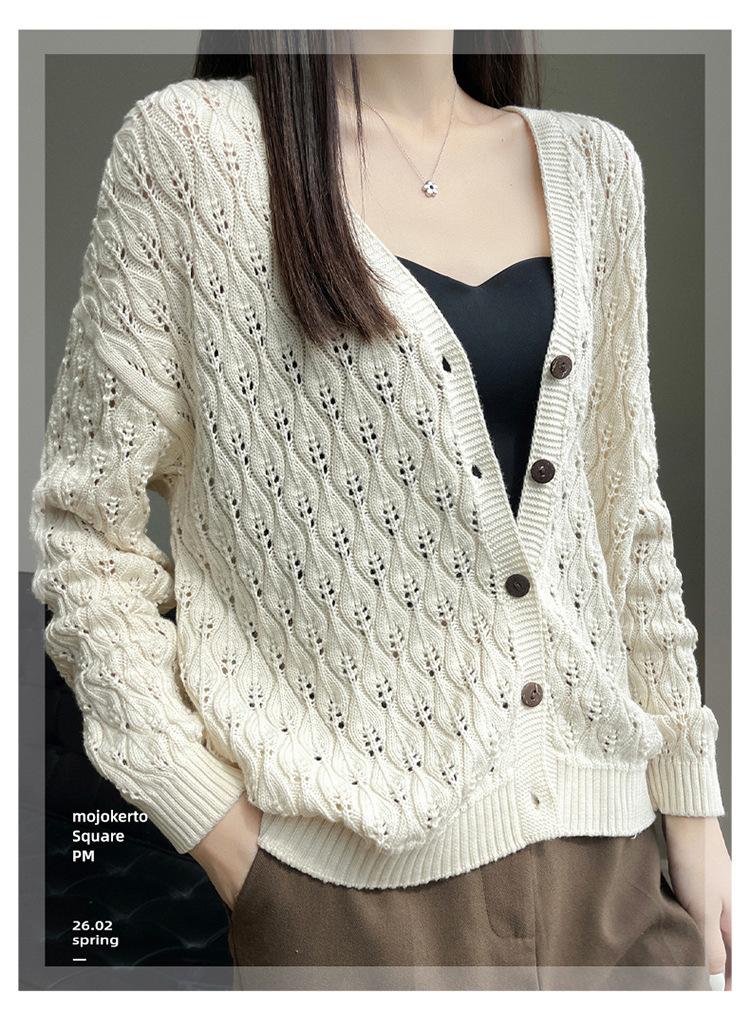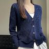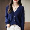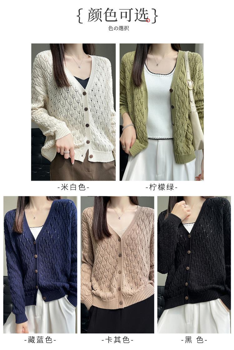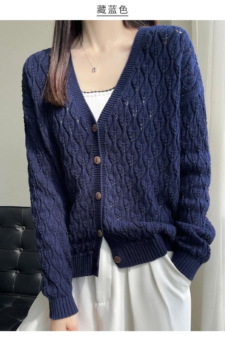 2024 Nuevo Cárdigan Calado de Otoño Top Estilo V Cuello Algodón Talla Grande Suéter para Mujer Abrigo para Mujer