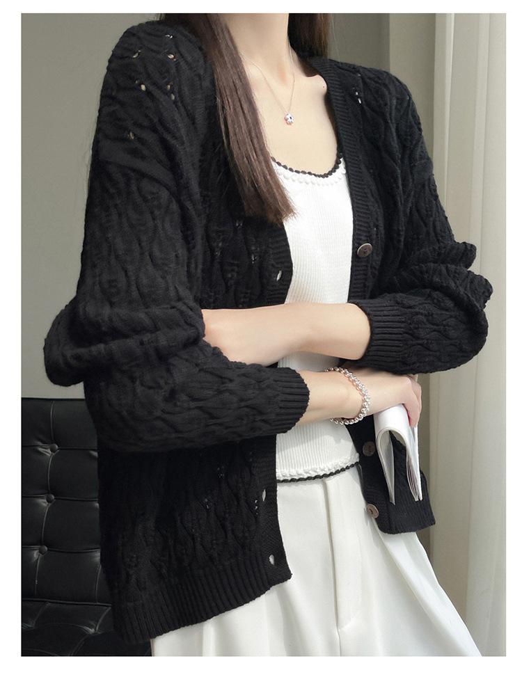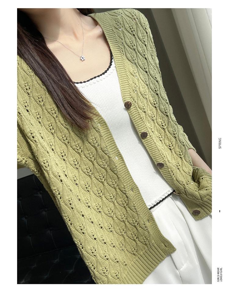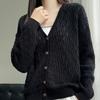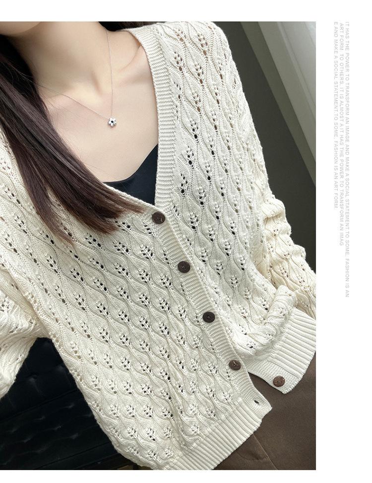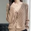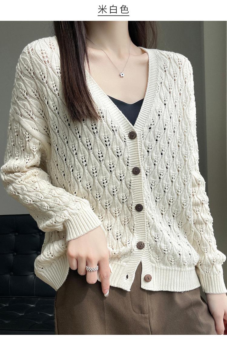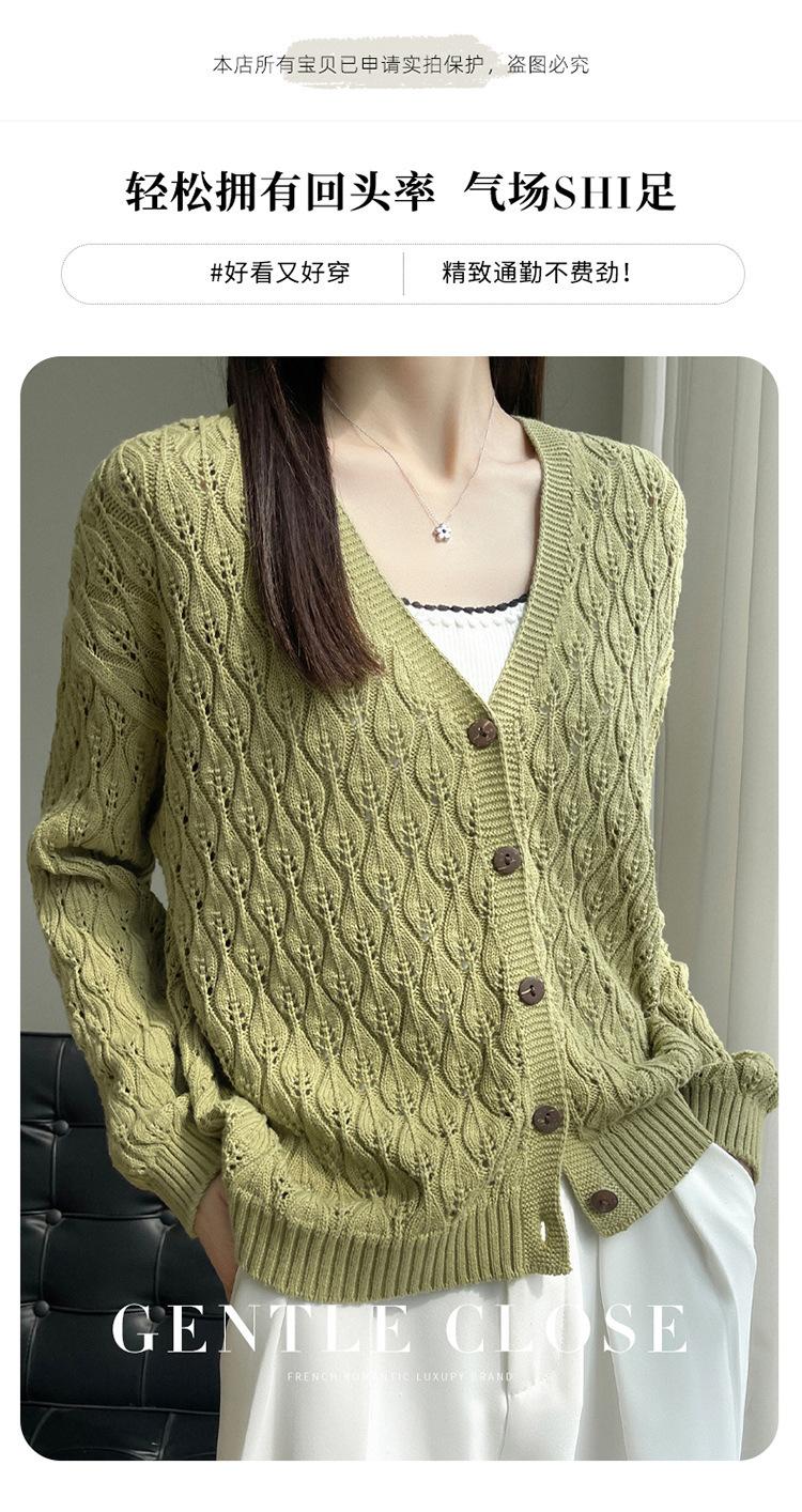 2024 Nuevo Cárdigan Calado de Otoño Top Estilo V Cuello Algodón Talla Grande Suéter para Mujer Abrigo para Mujer