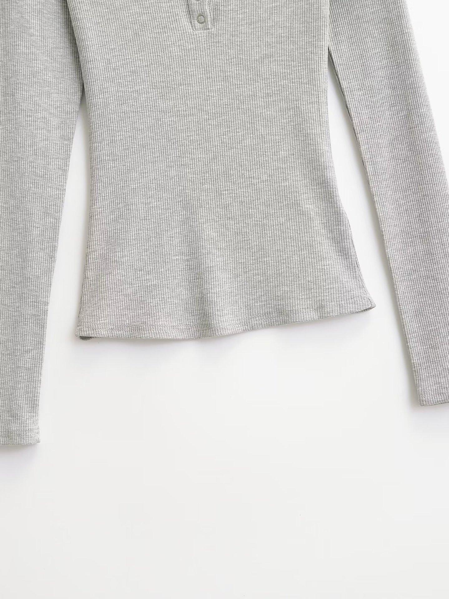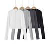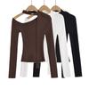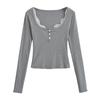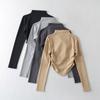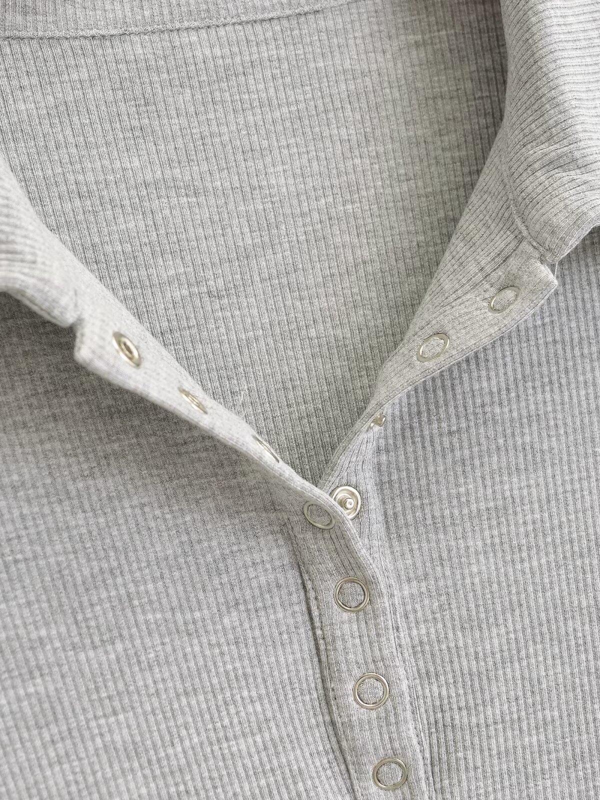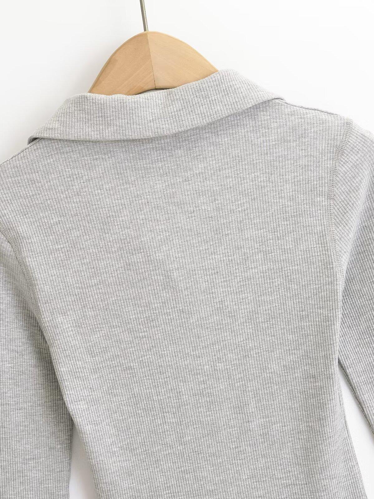 AP24321-1-24 Otoño Nuevo estilo europeo y americano Cuello polo Hebilla de cinco garras Entallado Camiseta de manga larga para mujer