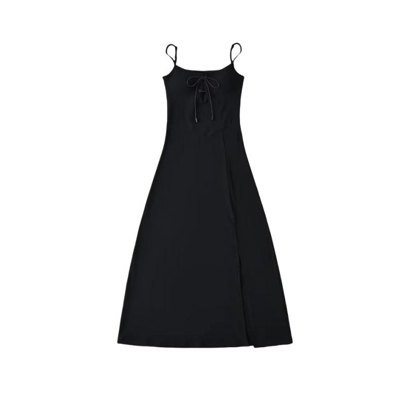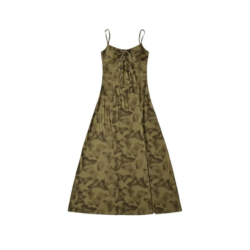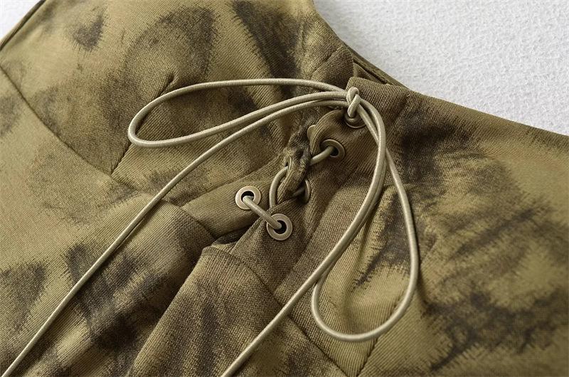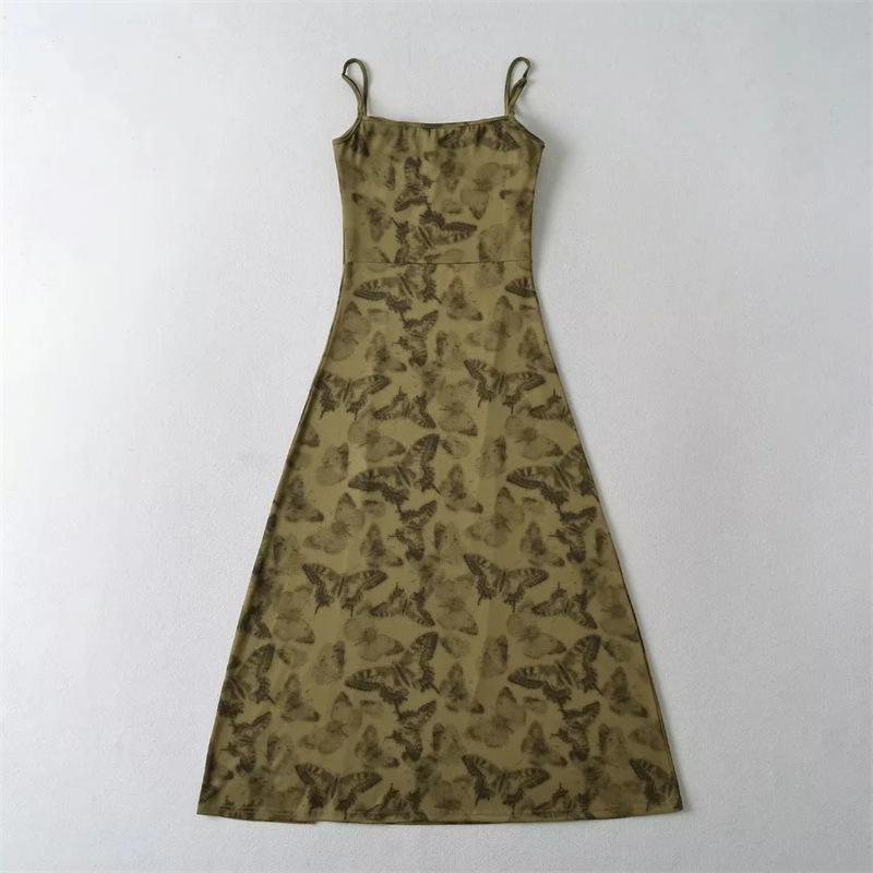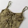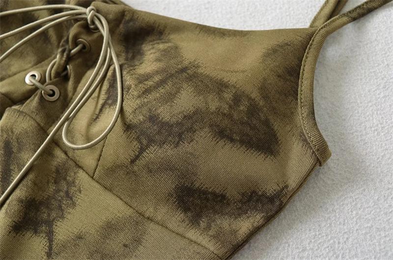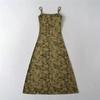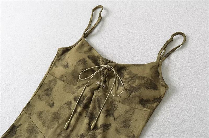 Vestido de mujer con escote en V, tirantes cruzados, corte entallado, sexy, abertura lateral, estampado, corte A, largo medio
