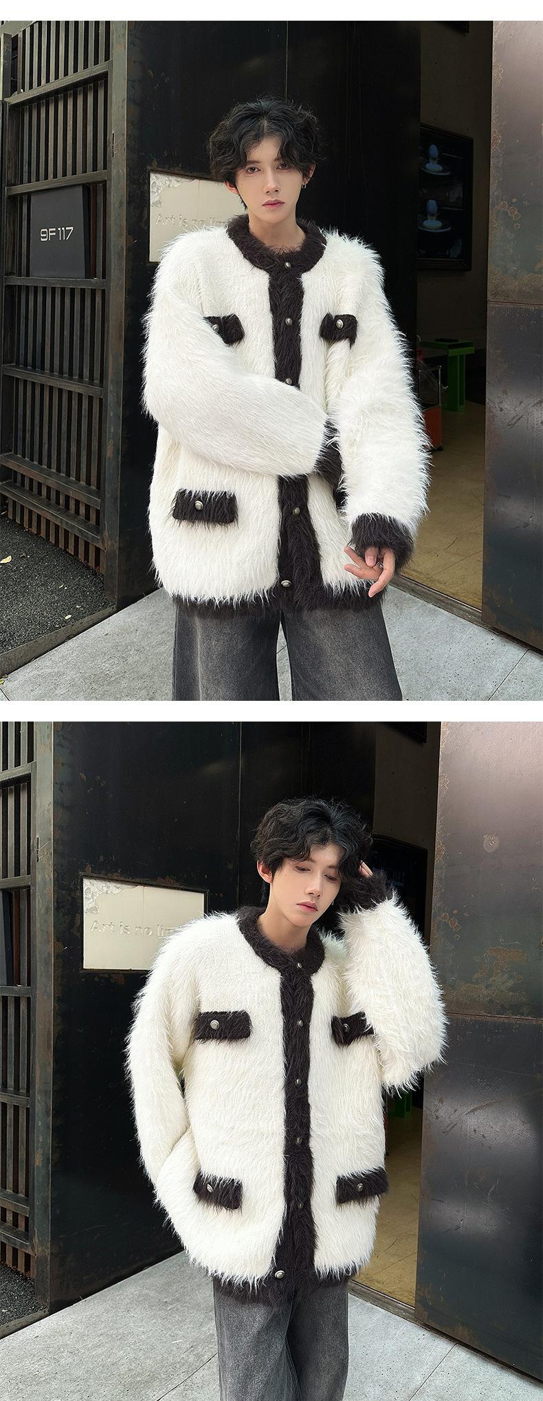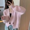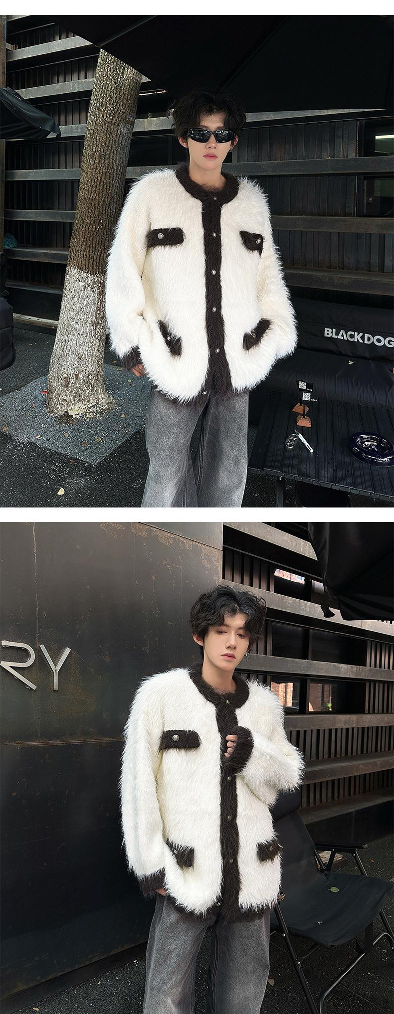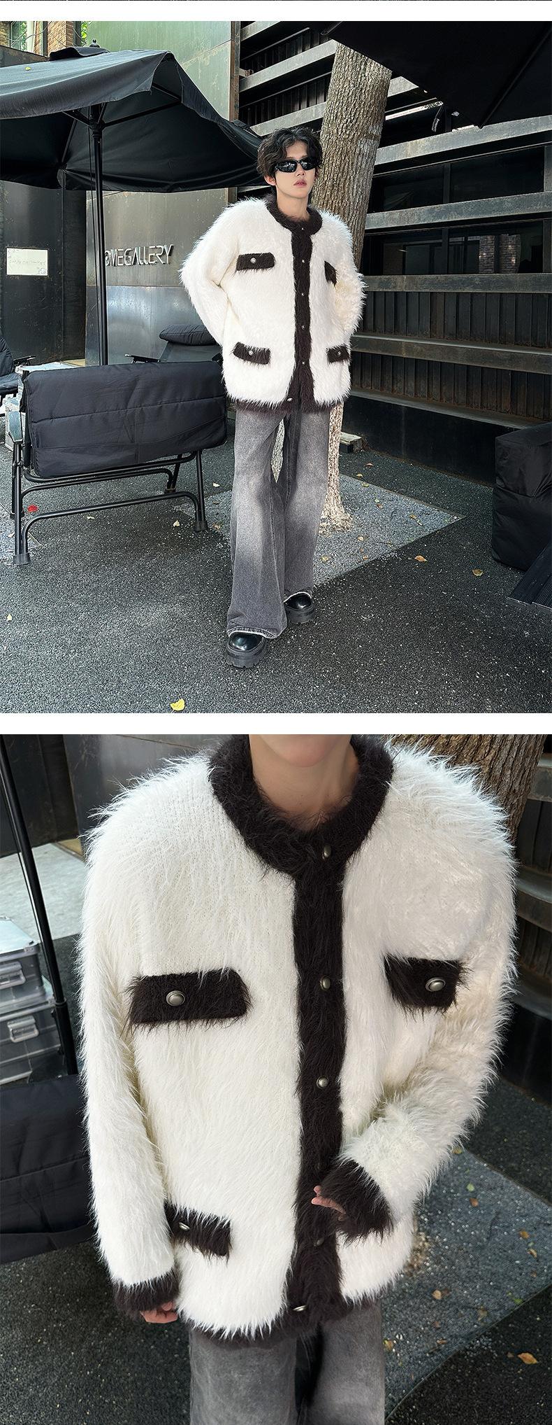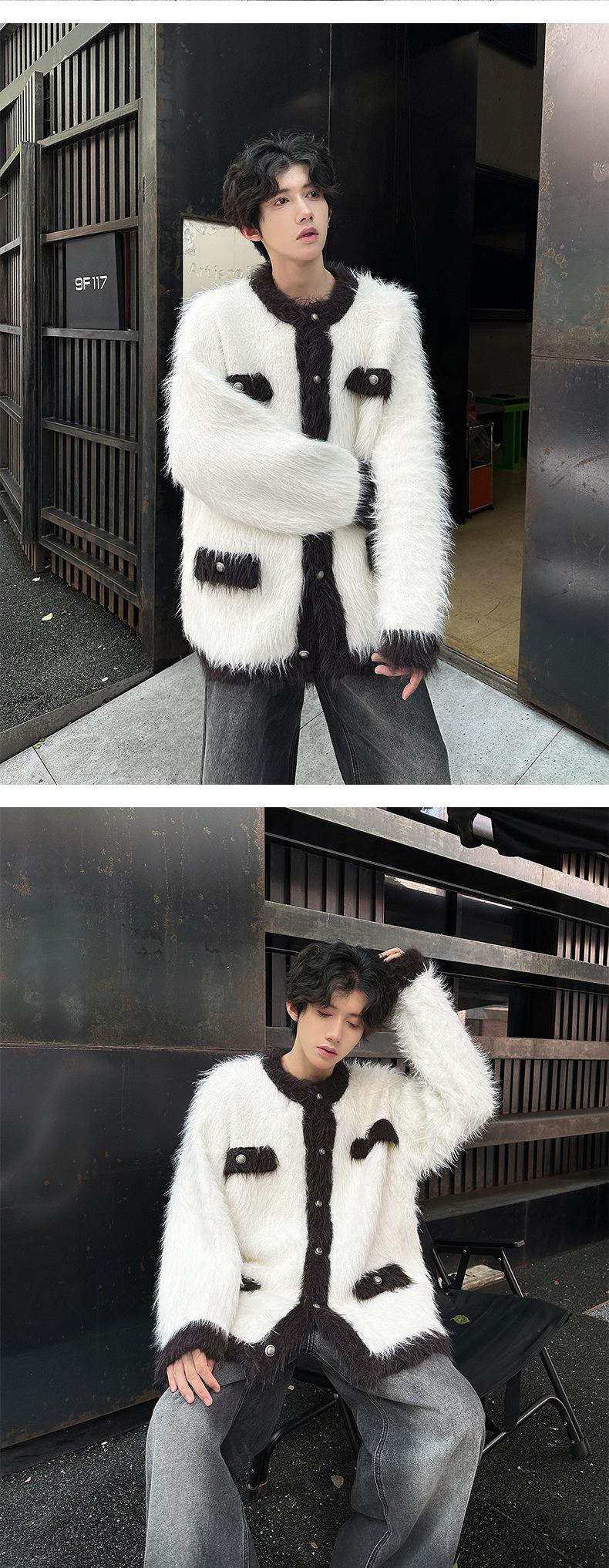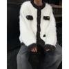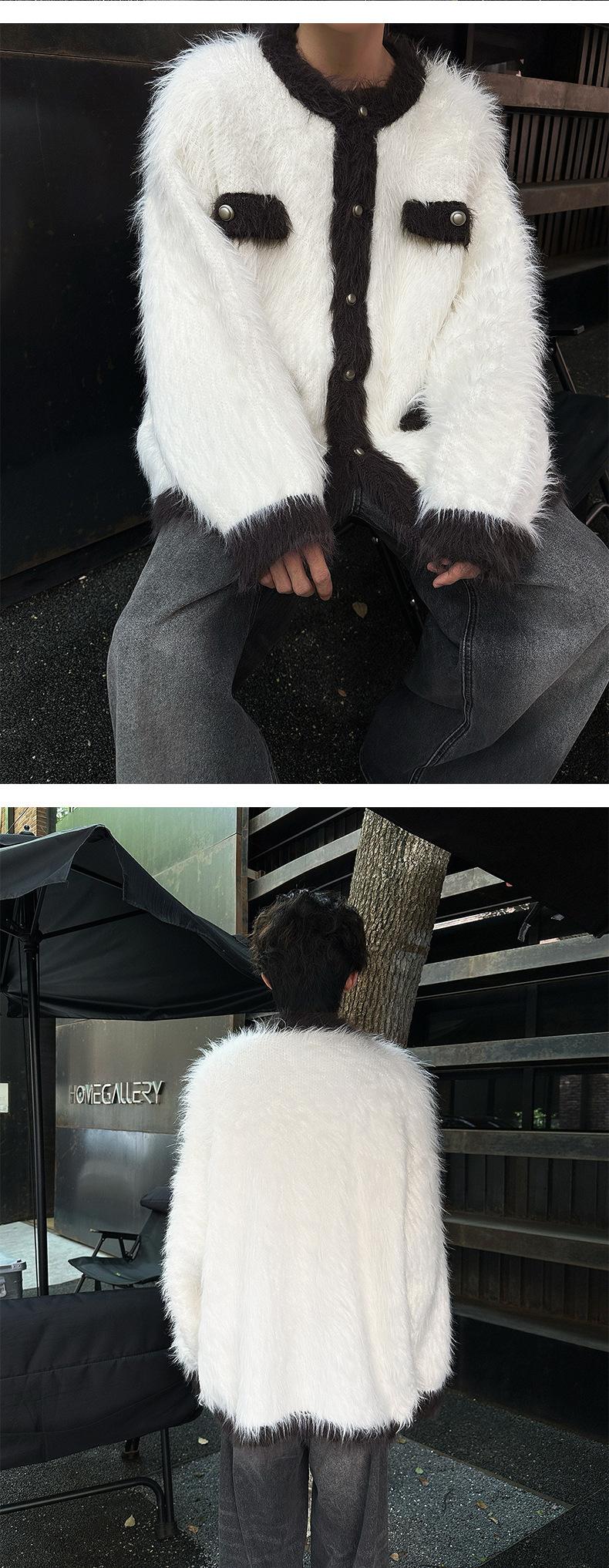 Otoño e Invierno 2024 Nuevo Abrigo Suéter de Terciopelo Visón para Mujer Diseño Nicho Estilo Pequeño Chanel de Color en Contraste Cárdigan Tejido Grueso