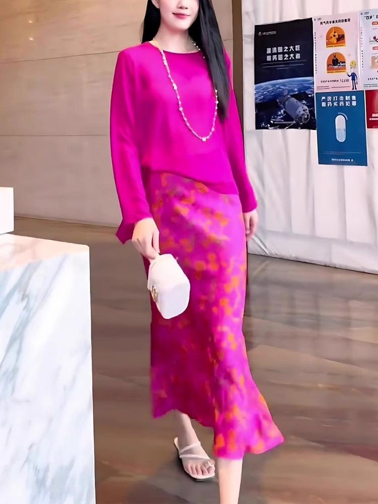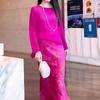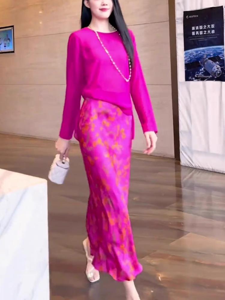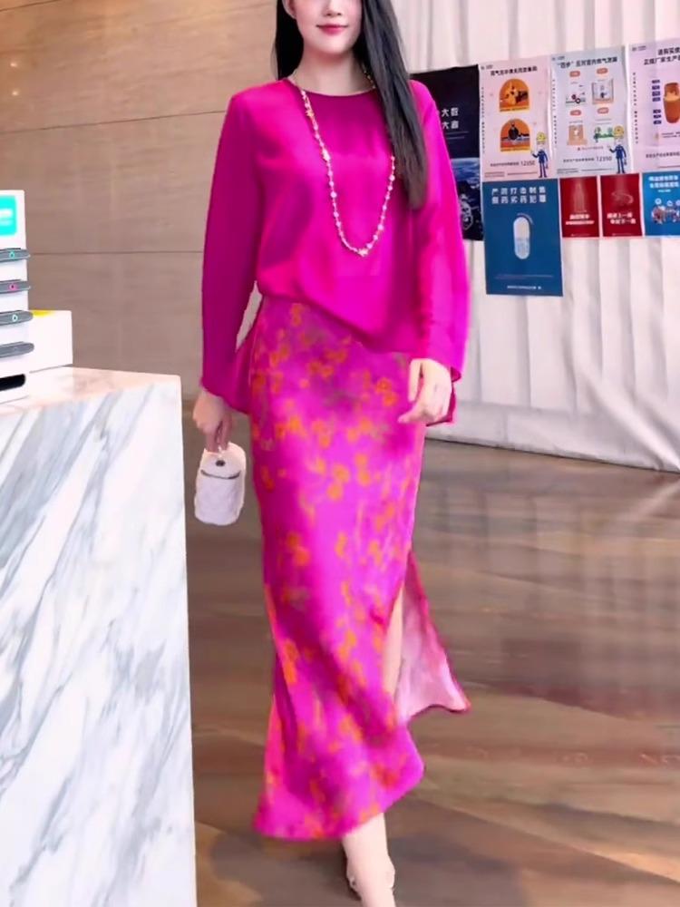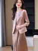Traje de moda rojo rosa para mujer, nuevo estilo nacional, alta moda china, temperamento, reducción de edad, otoño con un conjunto