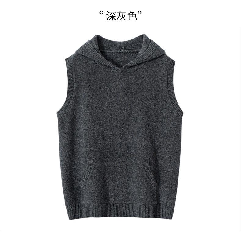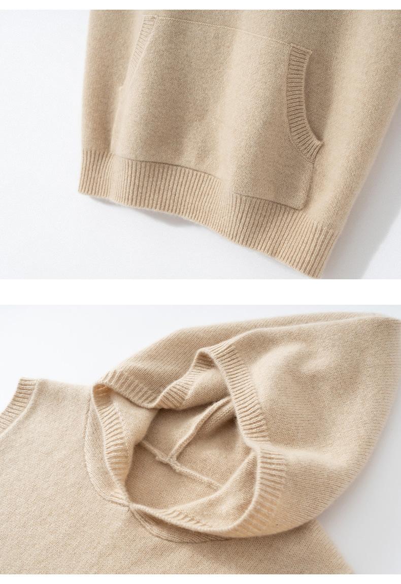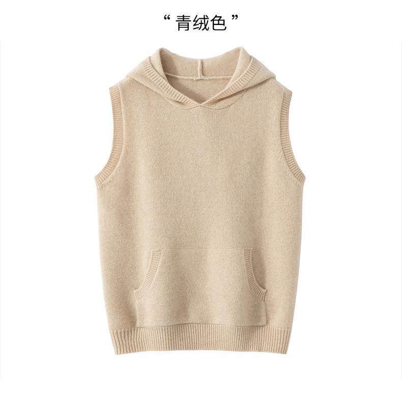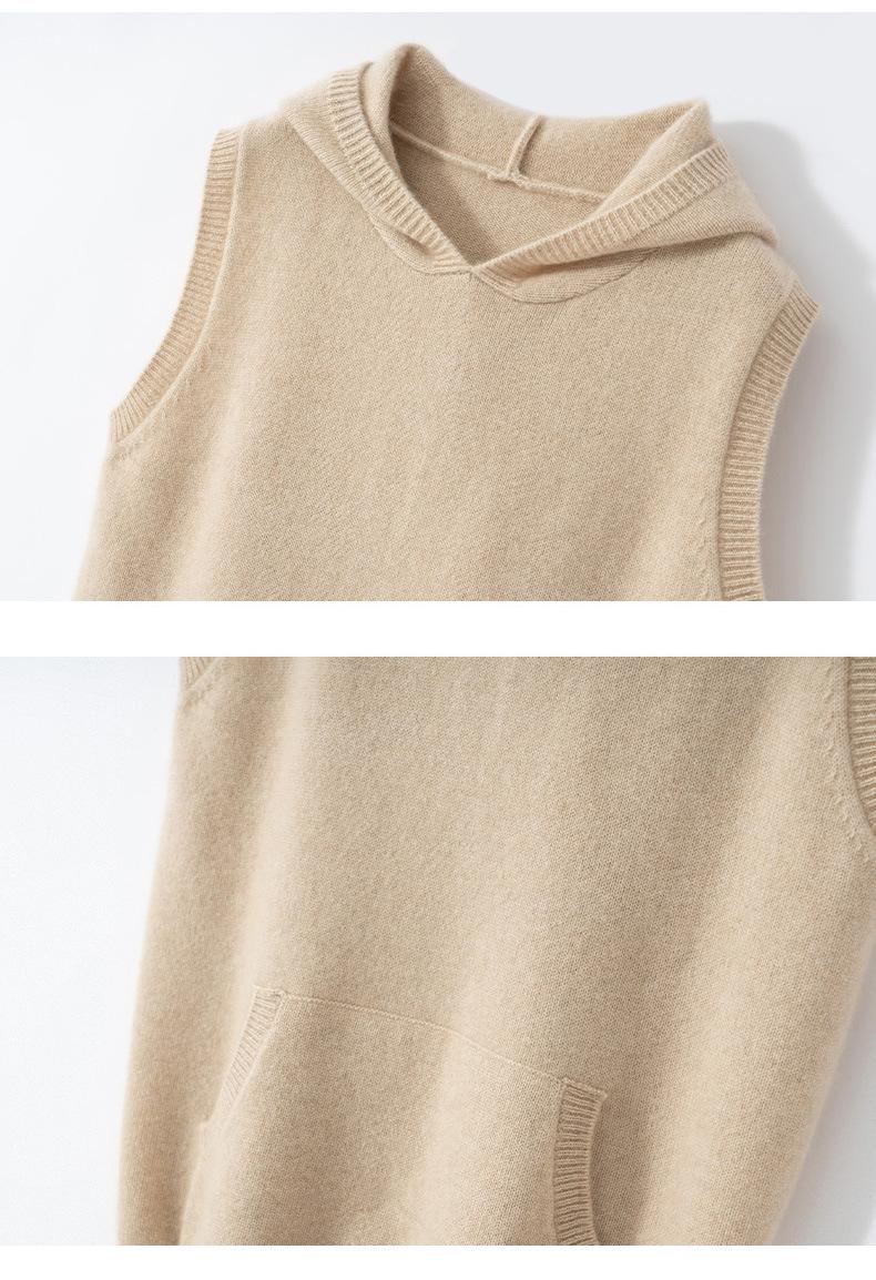 Nuevo Otoño e Invierno 100% Cachemira Pura para Mujer con Bolsillos Cálido Super Grado A Tejido sin Mangas con Capucha para Estilo Urbano