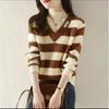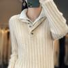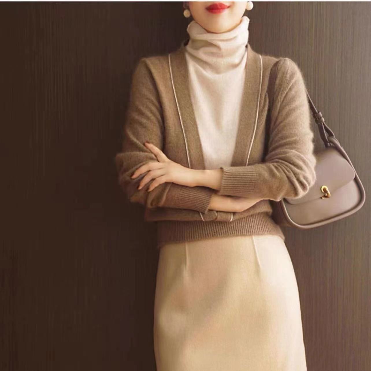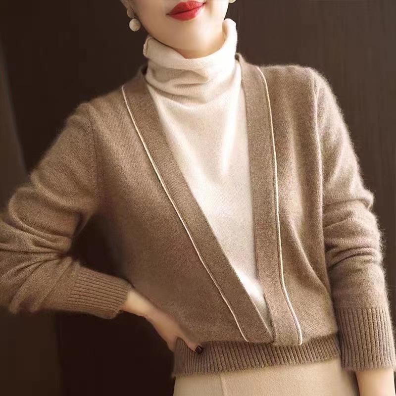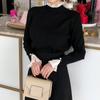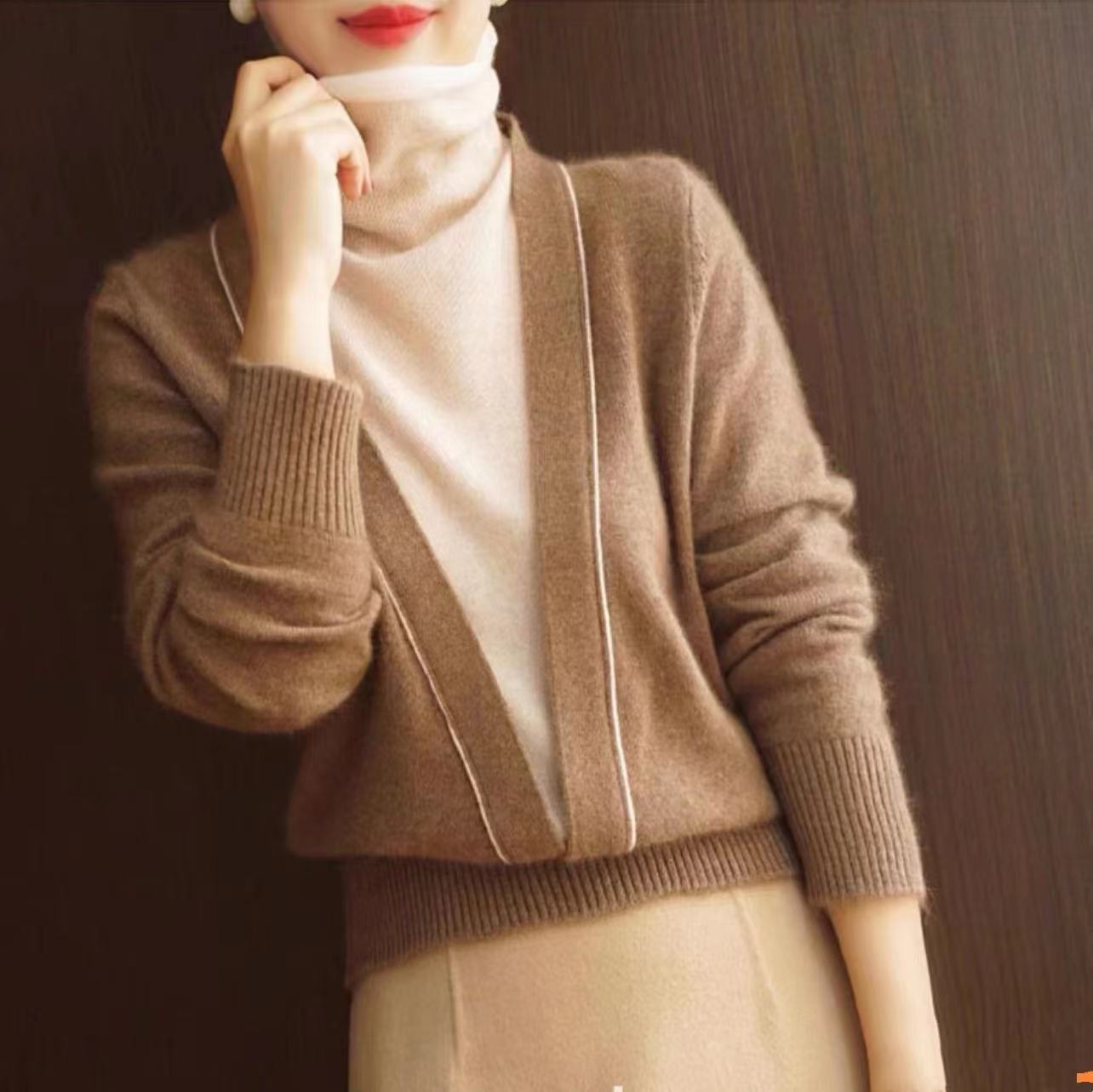 Diseño Sensorial Costuras en Color Contraste Suéter de Cuello Alto Falso de Dos Piezas Otoño e Invierno Nuevo Tejido Elegante que Combina con Todo