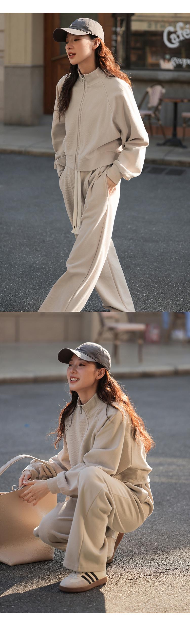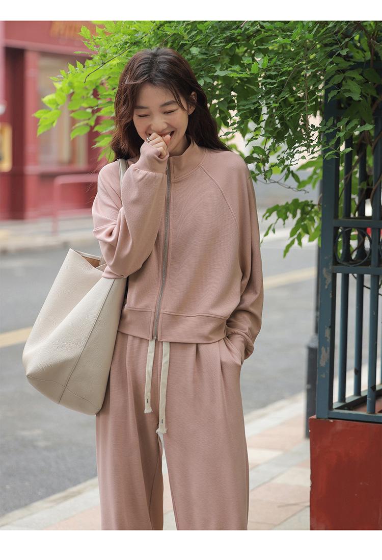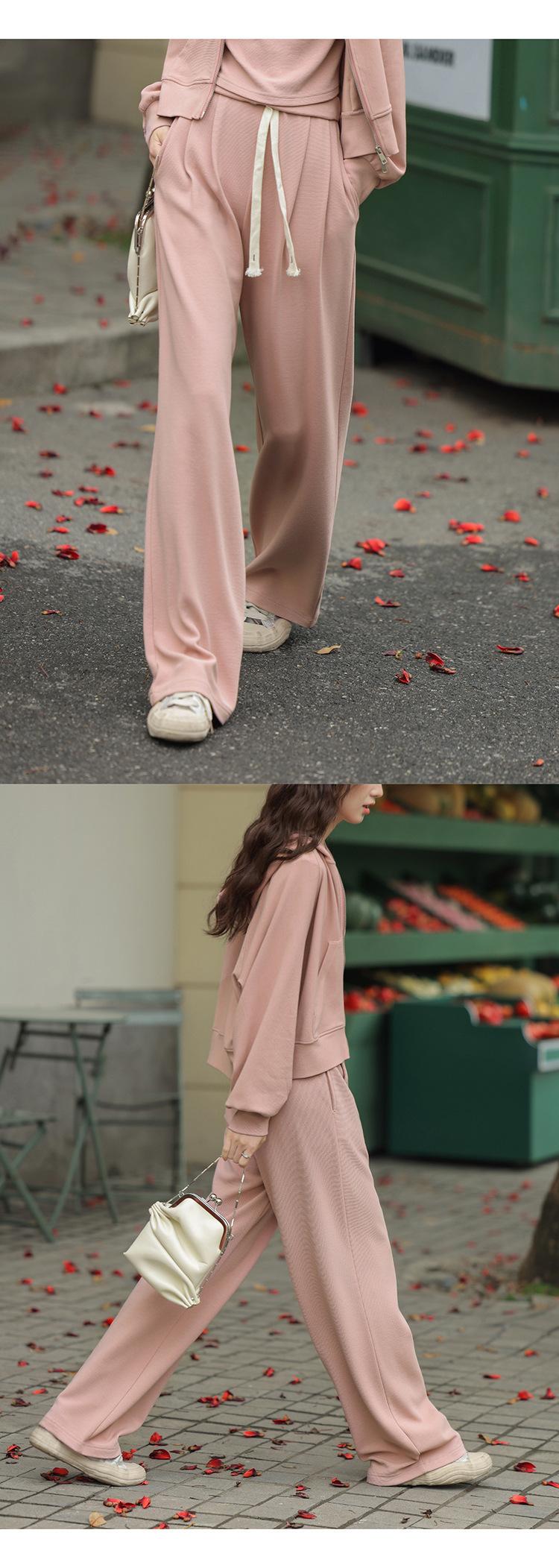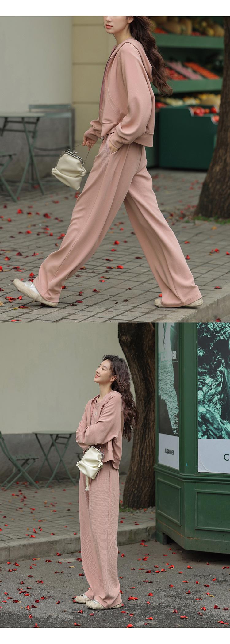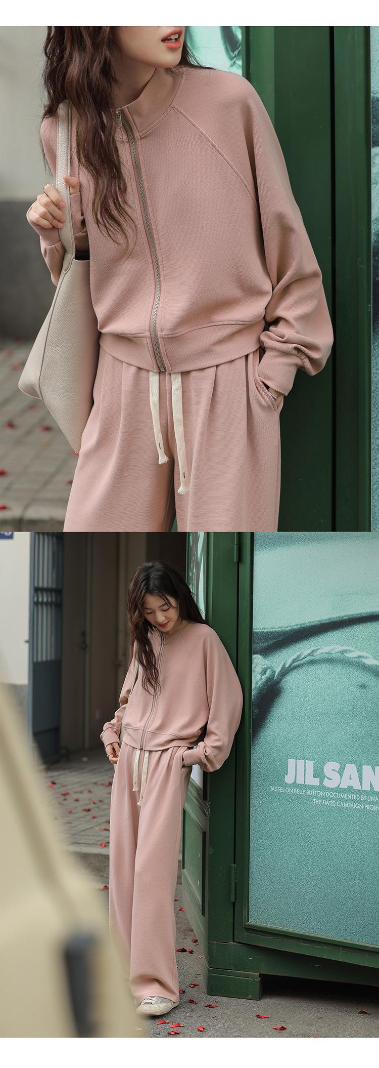 Ropa deportiva informal de estilo perezoso, sudadera fina de dos piezas con cremallera, chaqueta, pantalones de moda para mujer