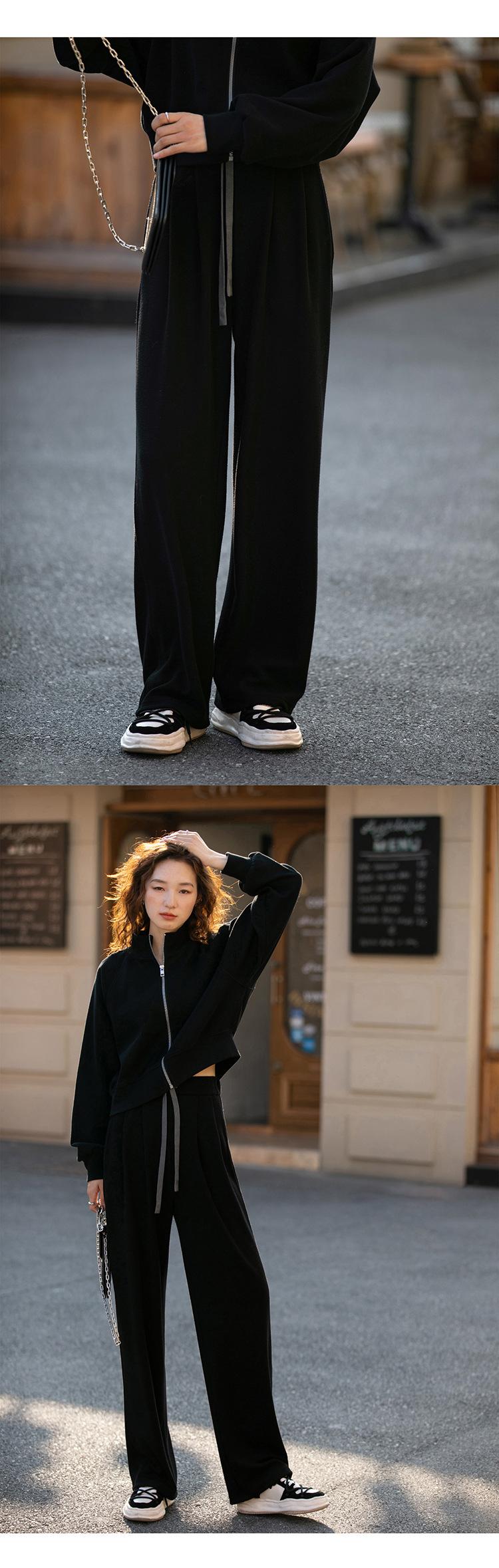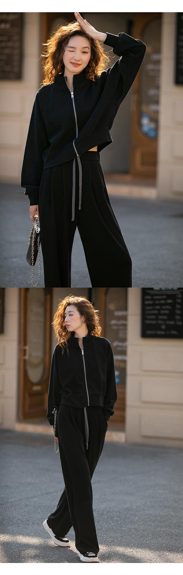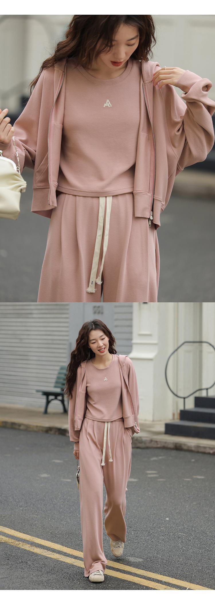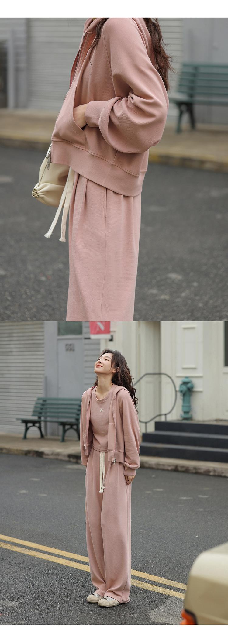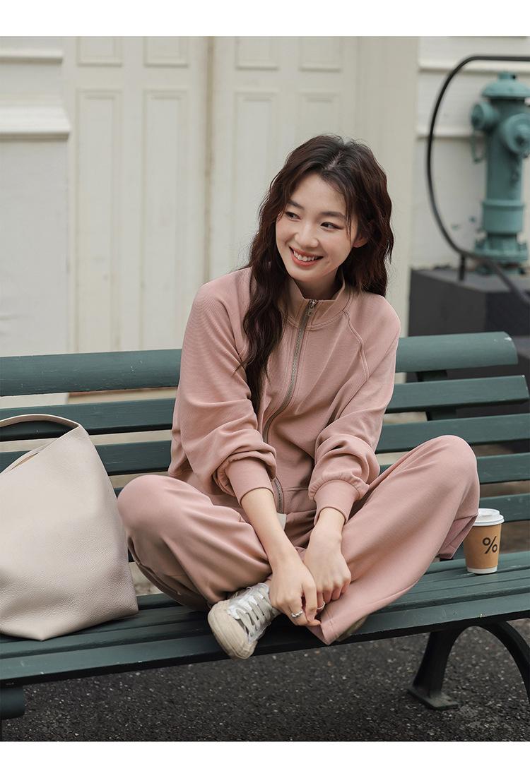 Ropa deportiva informal de estilo perezoso, sudadera fina de dos piezas con cremallera, chaqueta, pantalones de moda para mujer