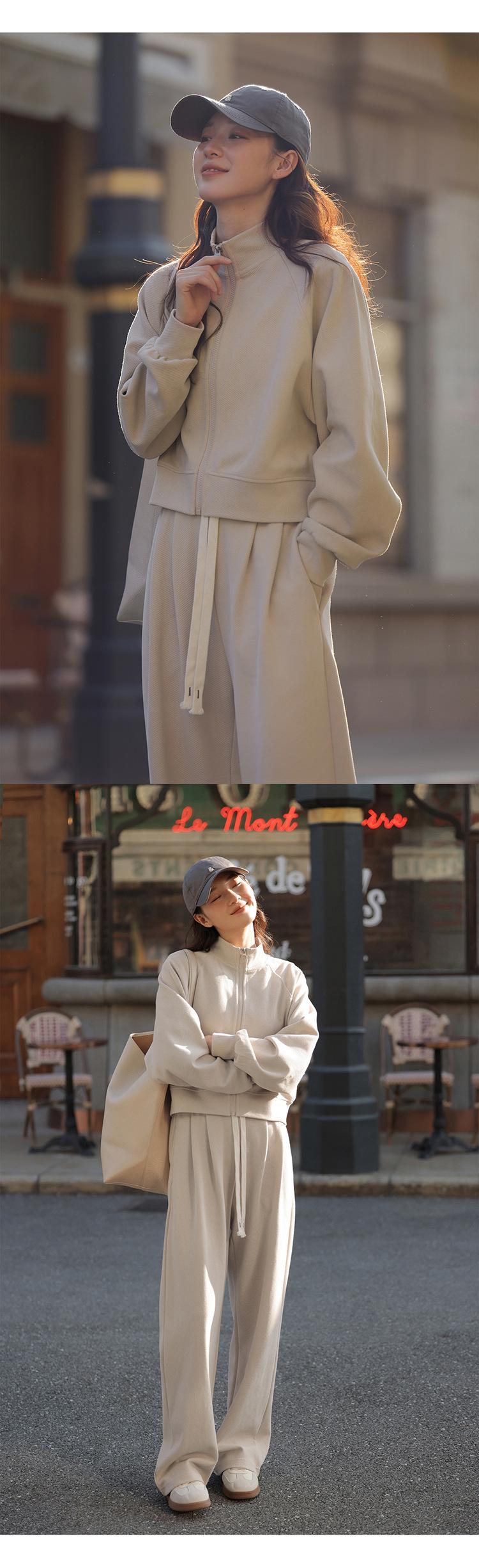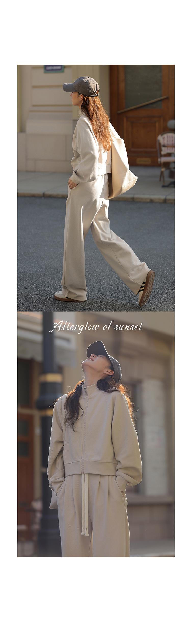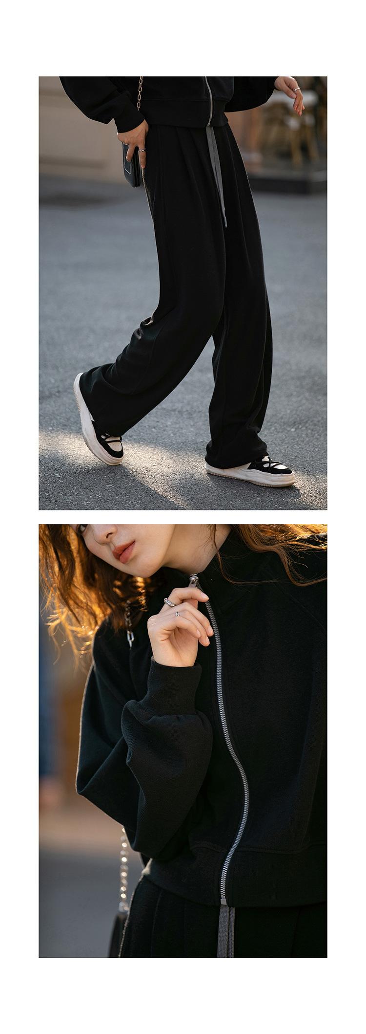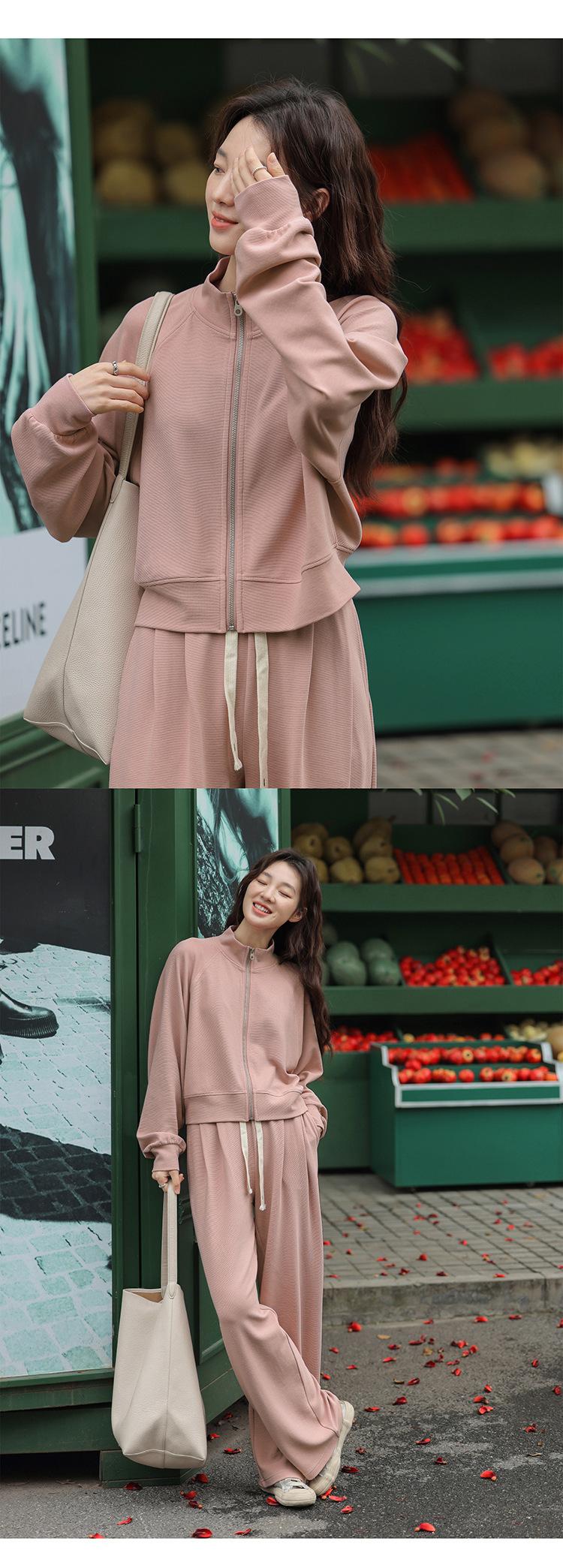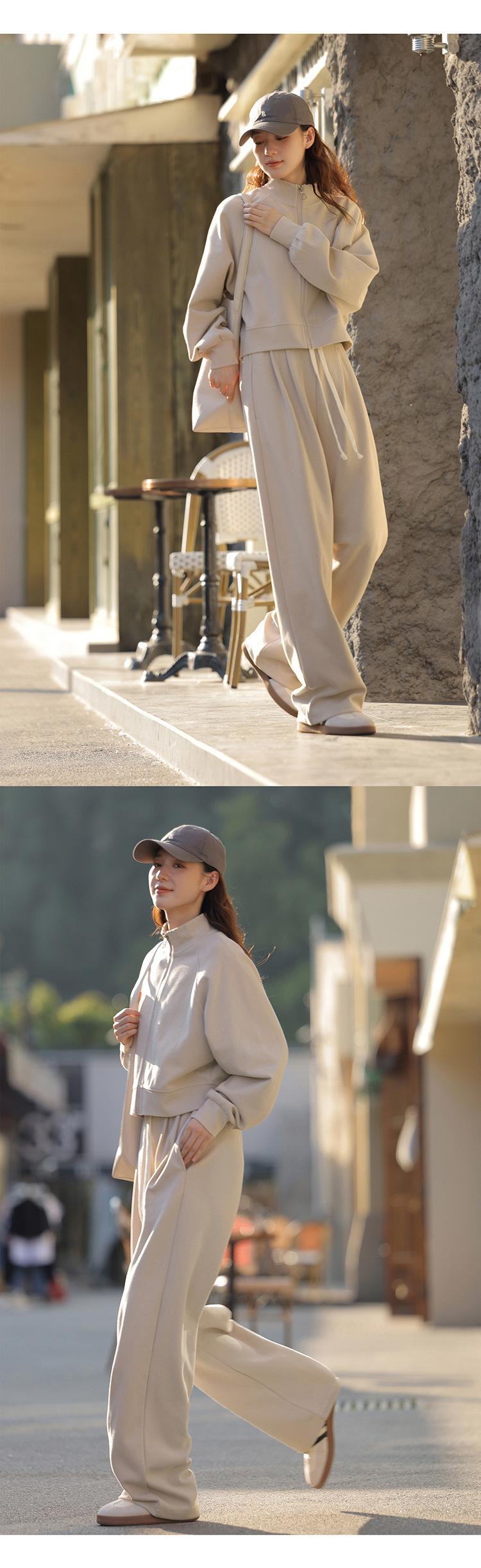 Ropa deportiva informal de estilo perezoso, sudadera fina de dos piezas con cremallera, chaqueta, pantalones de moda para mujer