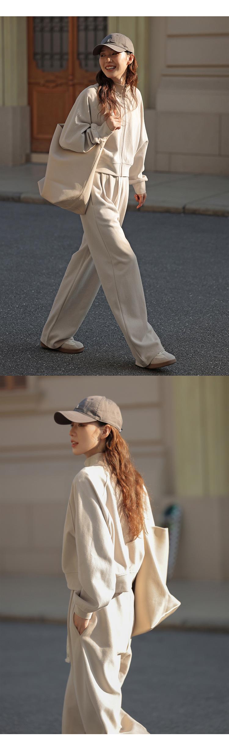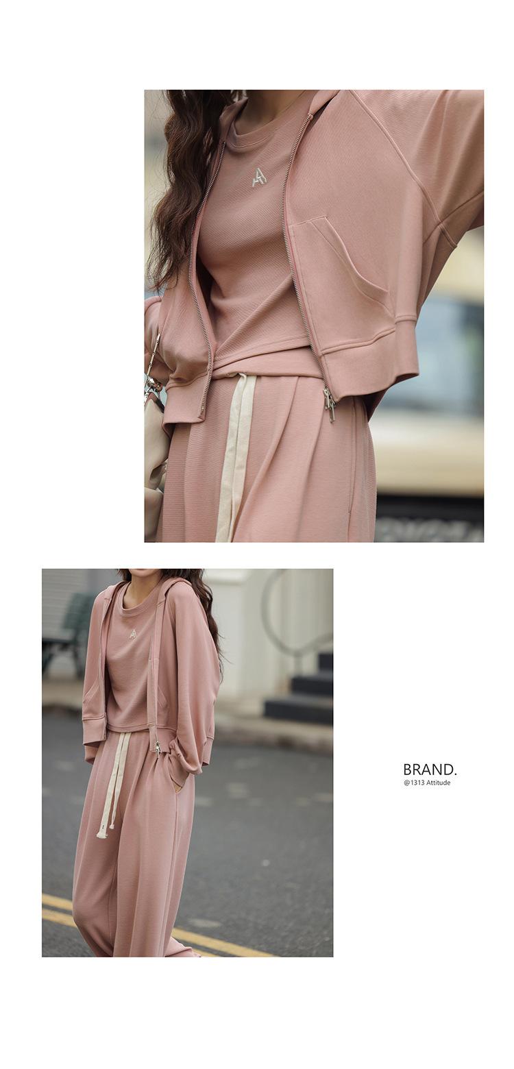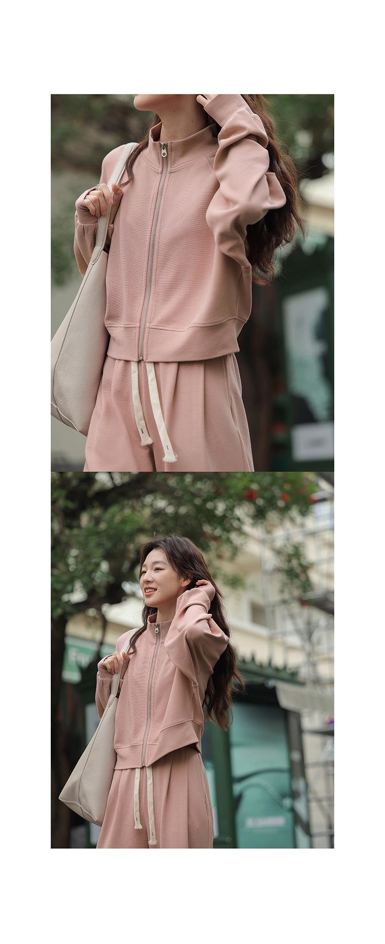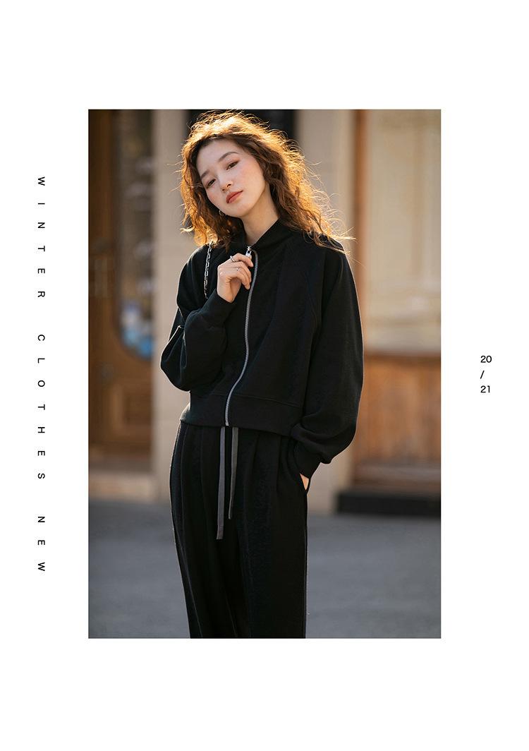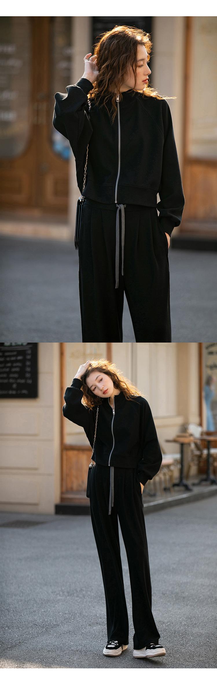 Ropa deportiva informal de estilo perezoso, sudadera fina de dos piezas con cremallera, chaqueta, pantalones de moda para mujer