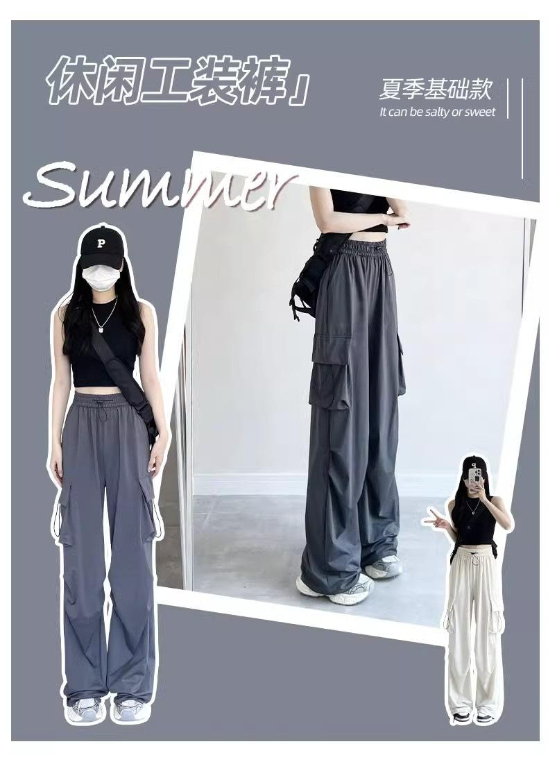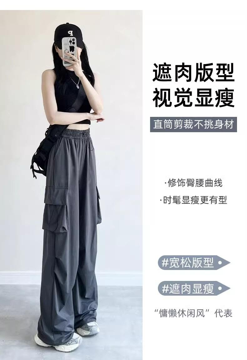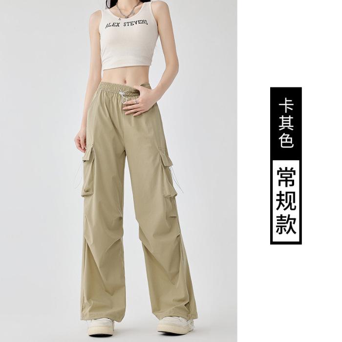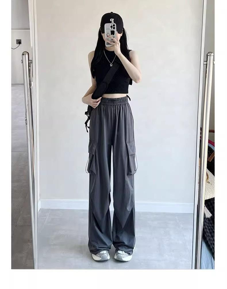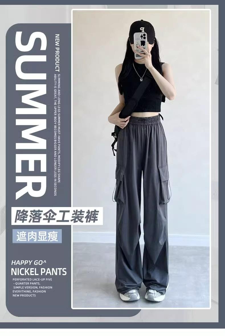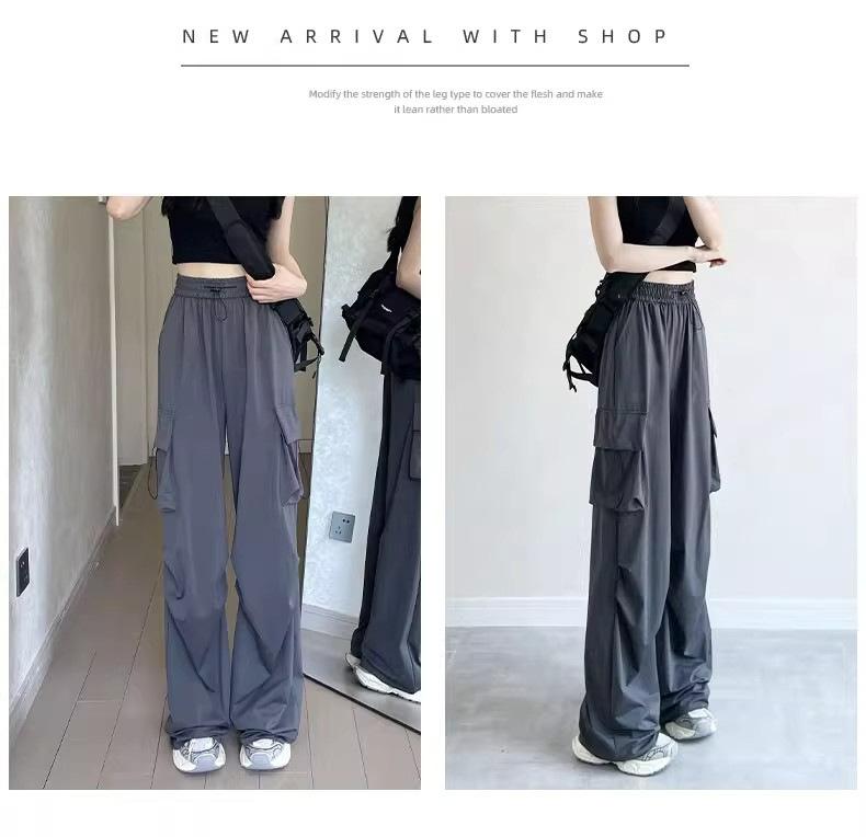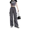 Pantalones cargo grises para mujer, nuevos pantalones de paracaídas de cintura alta, pantalones casuales de pierna ancha, deportivos