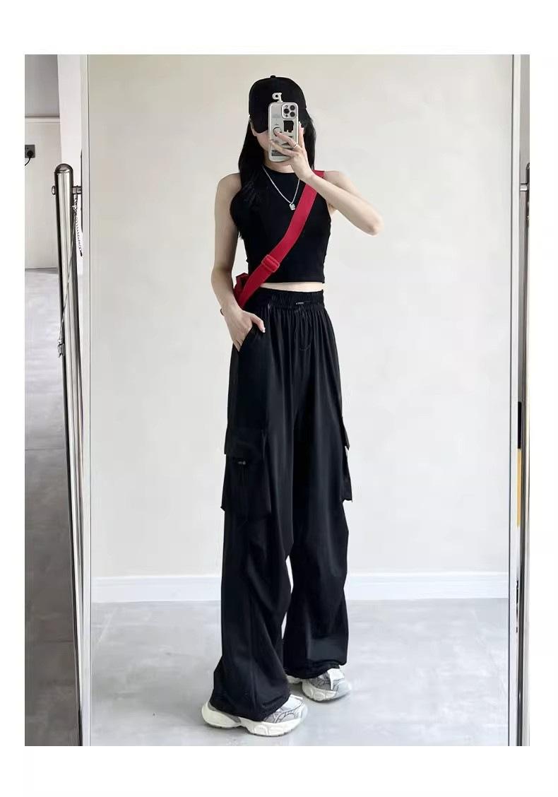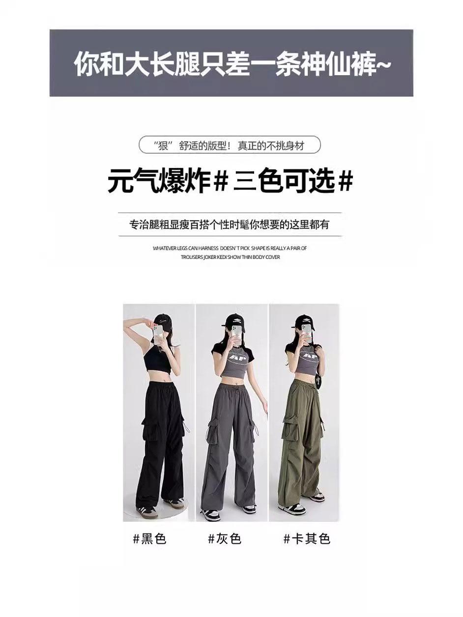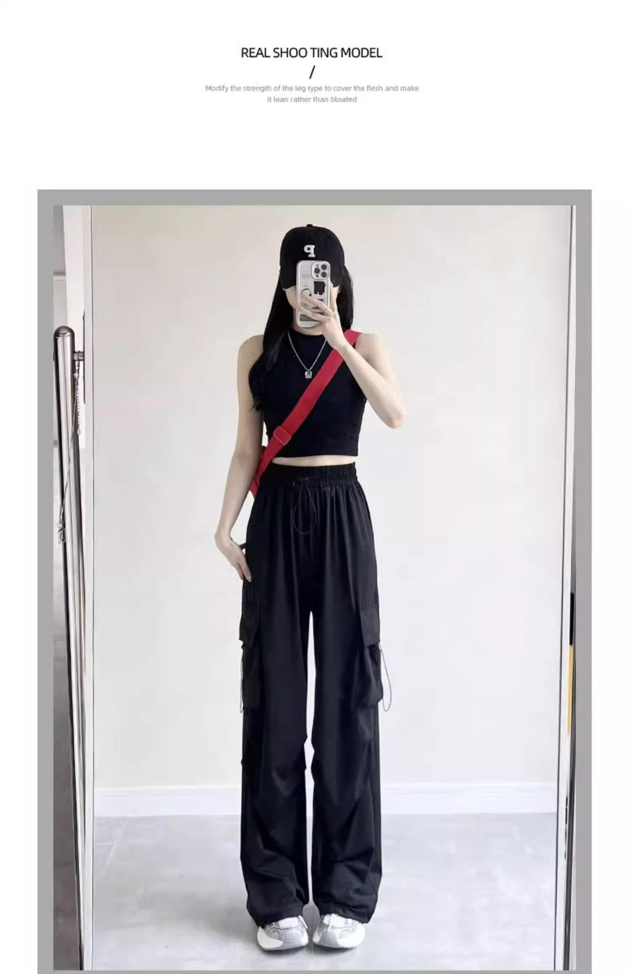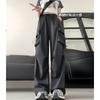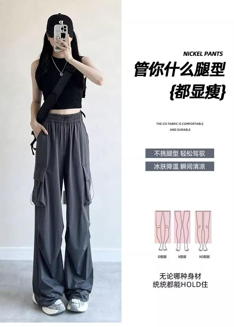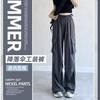 Pantalones cargo grises para mujer, nuevos pantalones de paracaídas de cintura alta, pantalones casuales de pierna ancha, deportivos