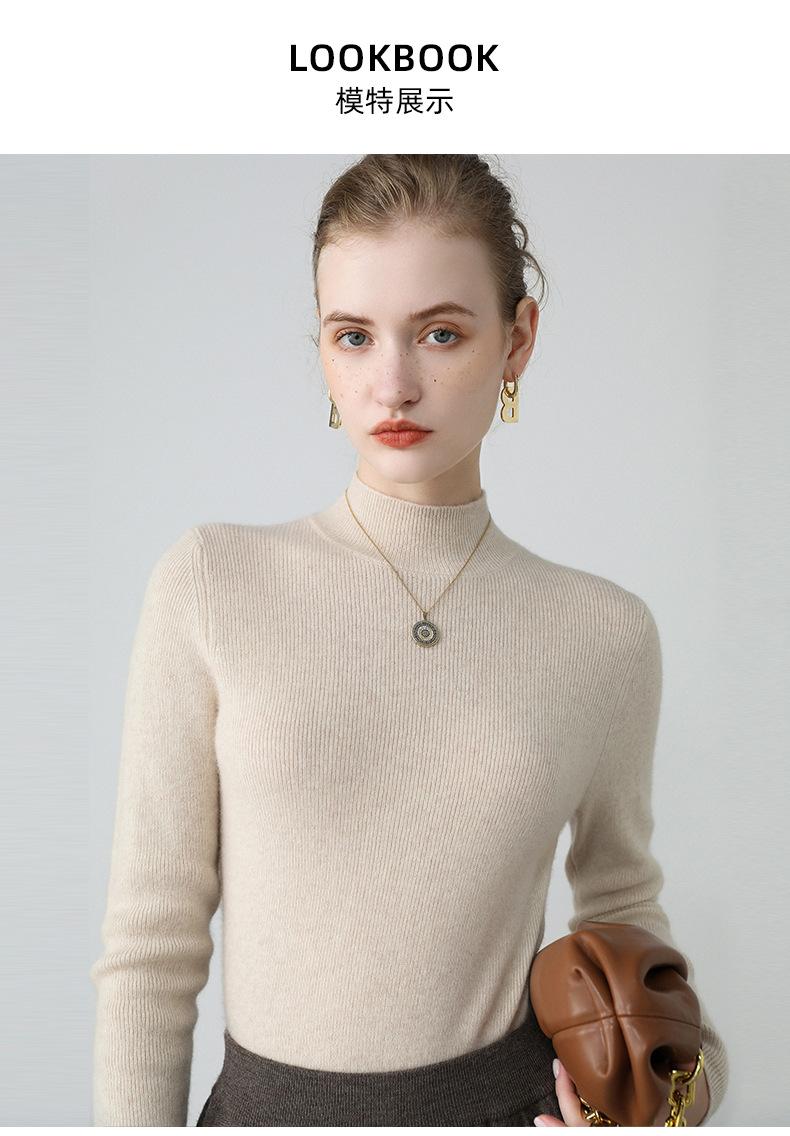 Suéter de cachemira ajustado con cuello alto para mujer, suéter de punto de lana, otoño e invierno, nuevo
