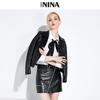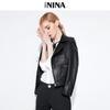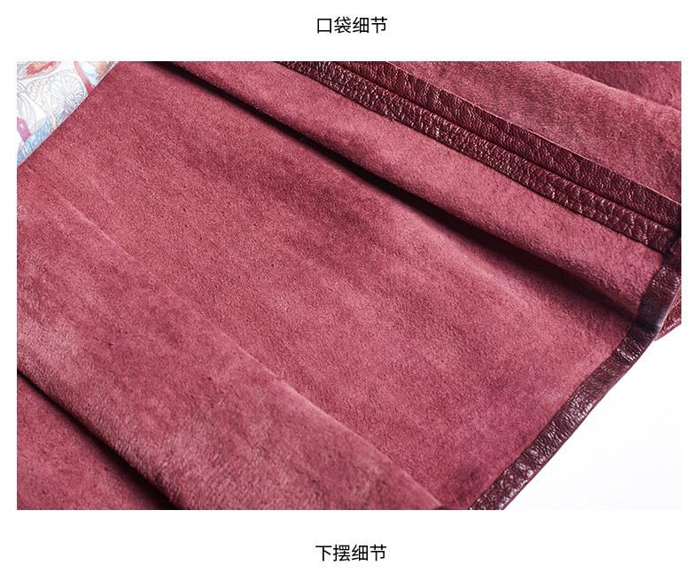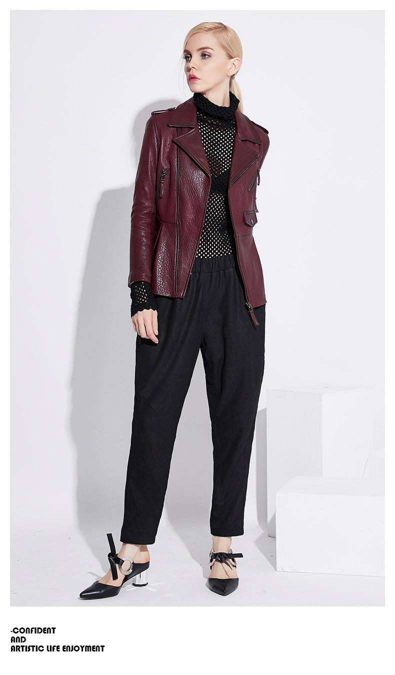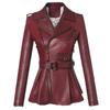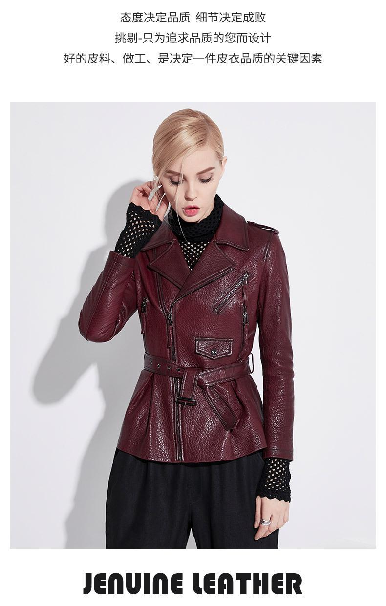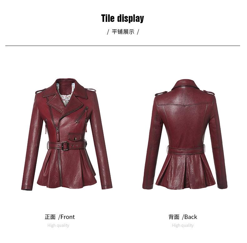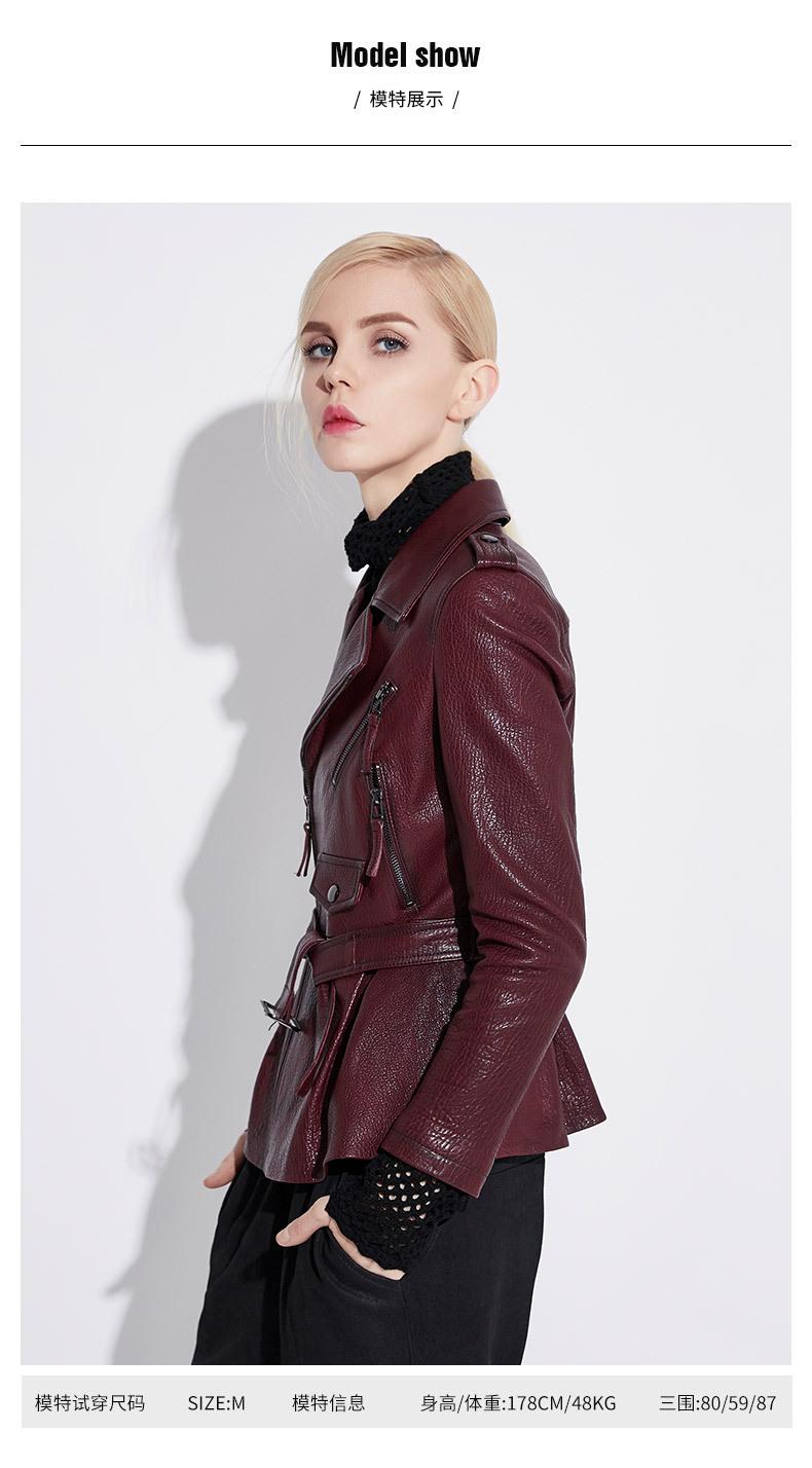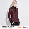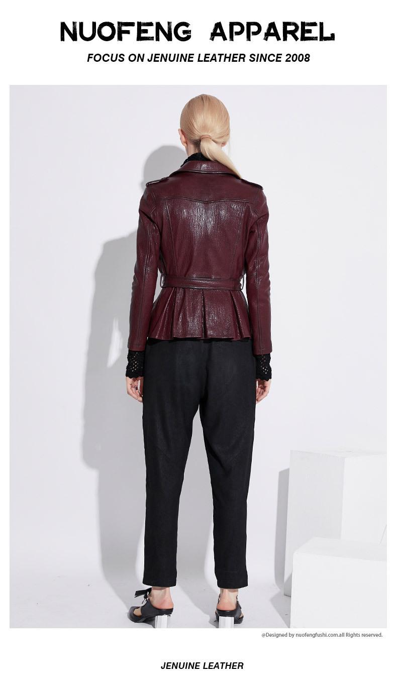 [Haining] Chaqueta de Piel Genuina Borgoña Nuofeng para Mujer Estilo Coreano Slim Corta Piel de Oveja Retro Motocicleta Chaqueta de Cuero