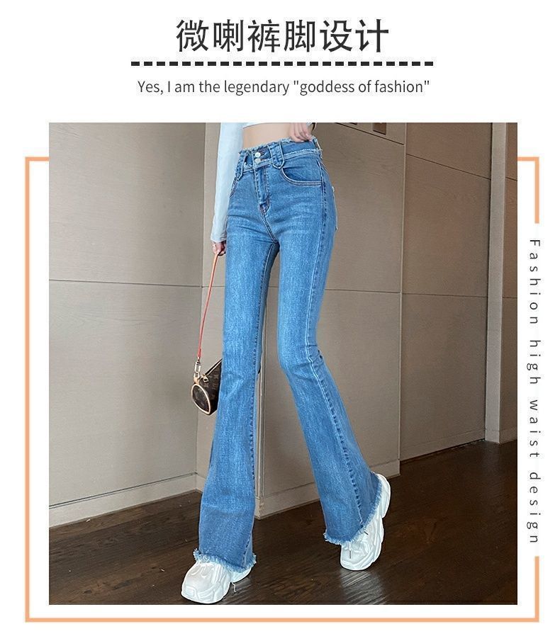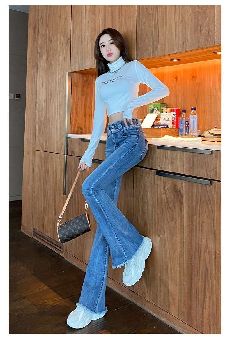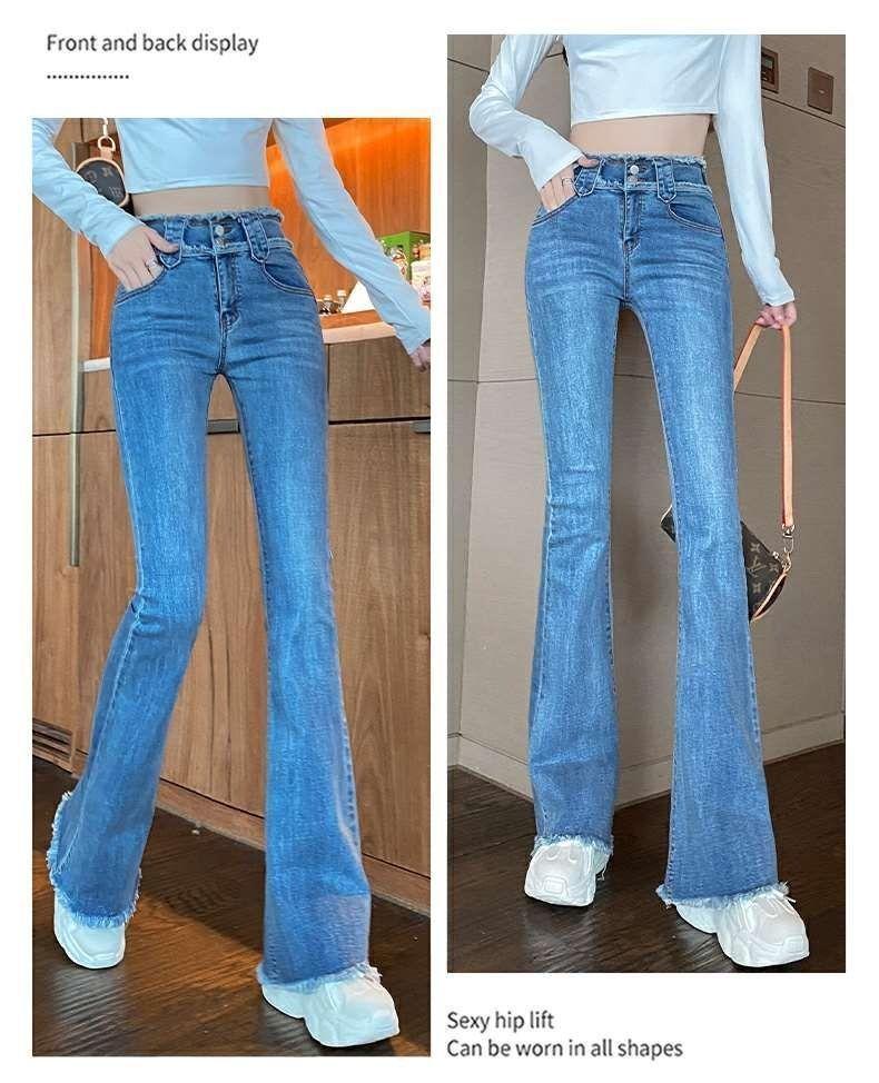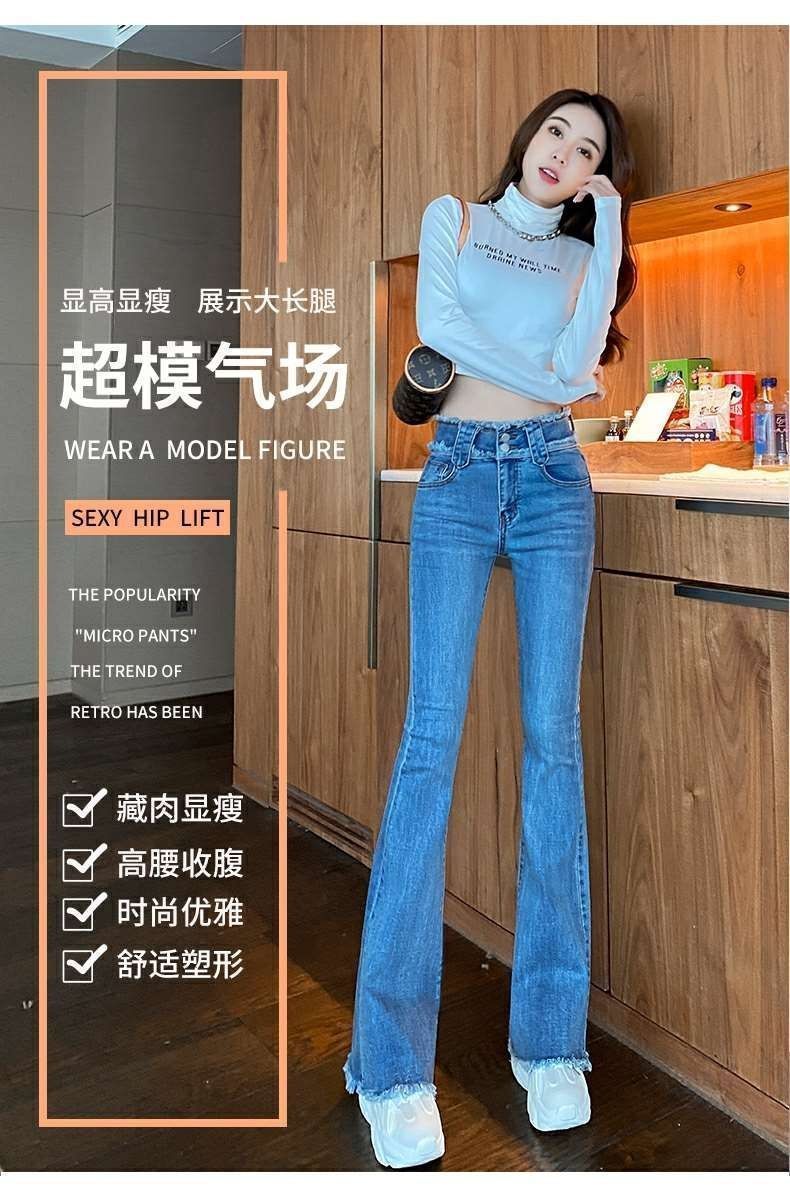 Pantalones vaqueros Micro-Lar para mujer, de primavera y otoño, de cintura alta, elásticos, cortos, de lana, de pierna ancha y acampanados.