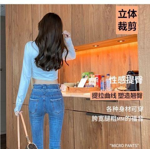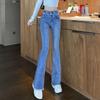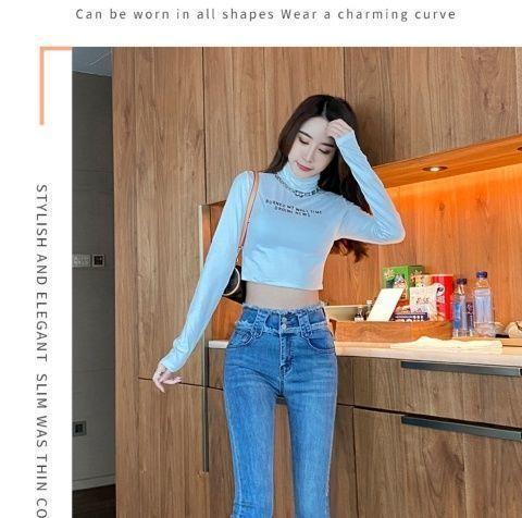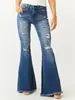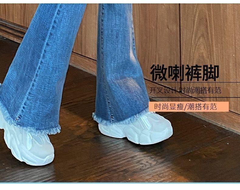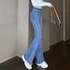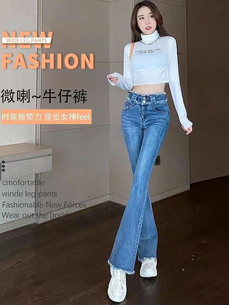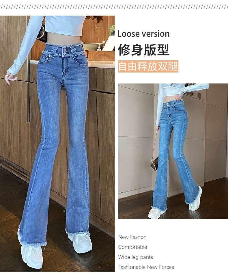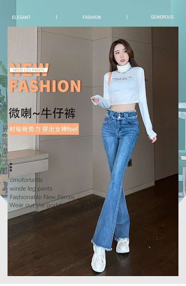 Pantalones vaqueros Micro-Lar para mujer, de primavera y otoño, de cintura alta, elásticos, cortos, de lana, de pierna ancha y acampanados.
