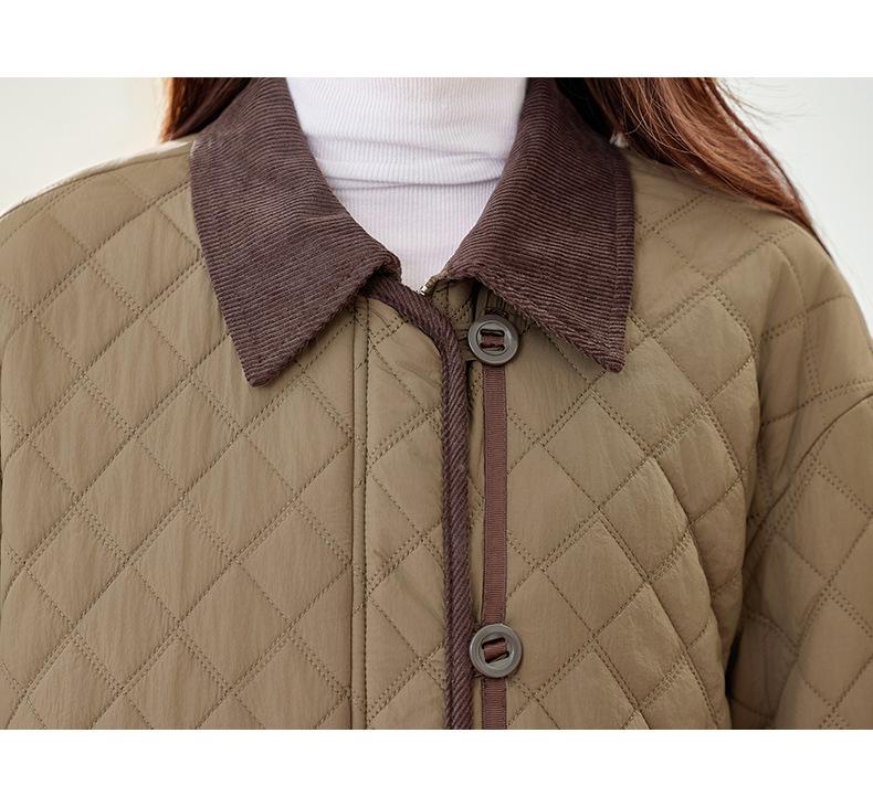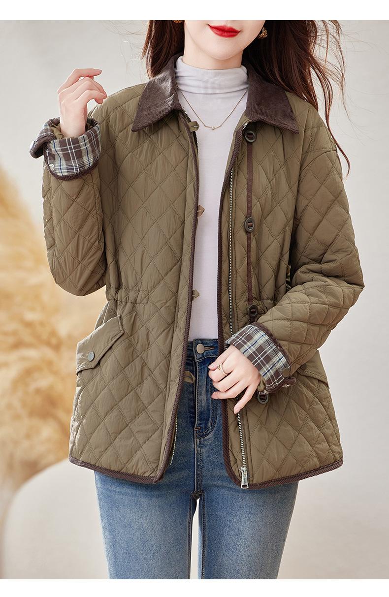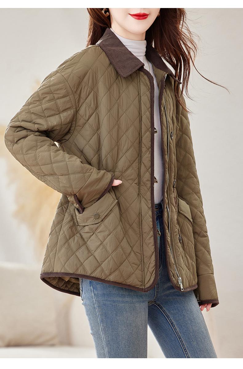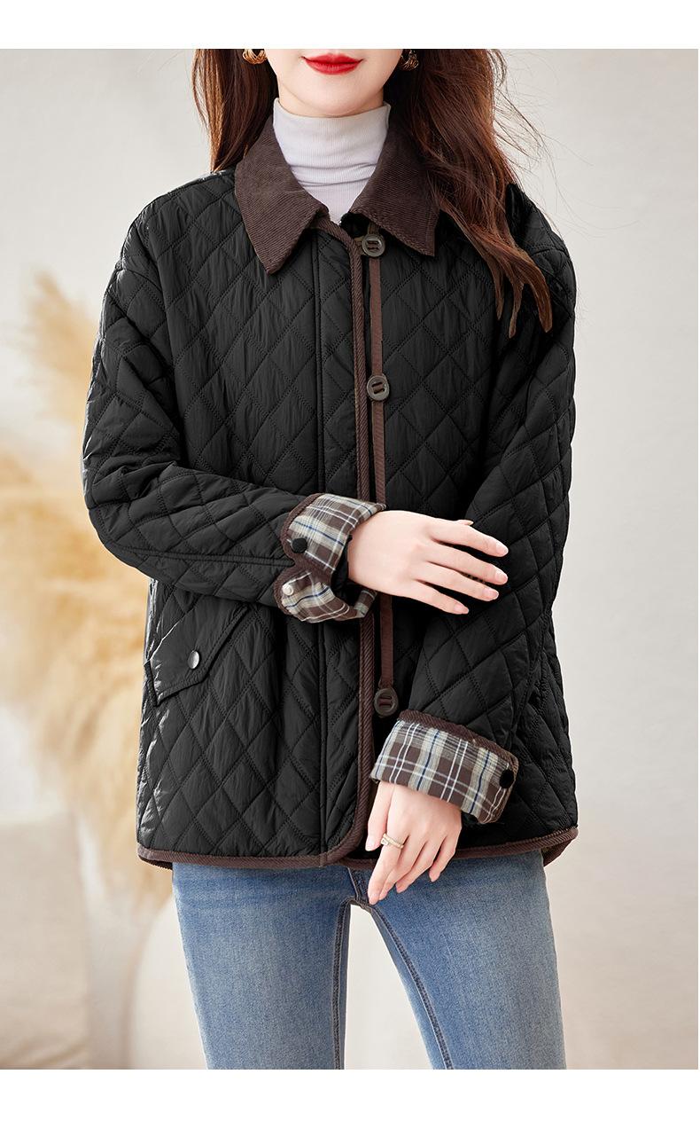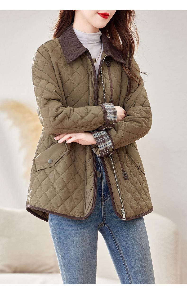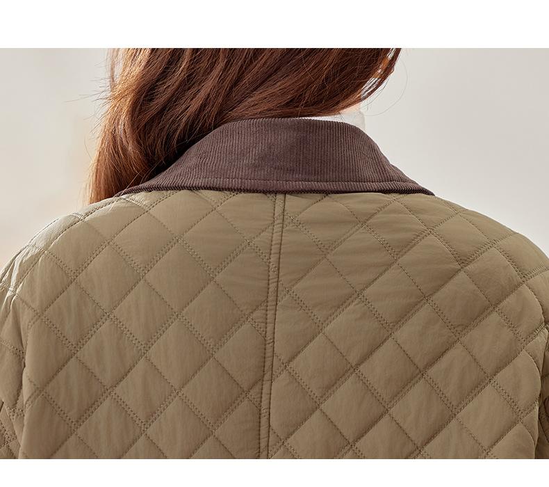 Abrigo acolchado de algodón rómbico estilo Chanel pequeño con costuras de moda para mujer 2024 invierno nuevo estilo abrigo ligero para hombres pequeños
