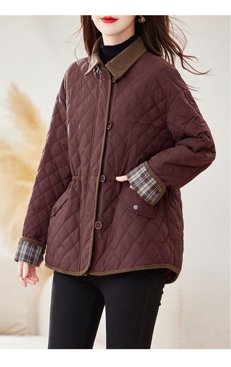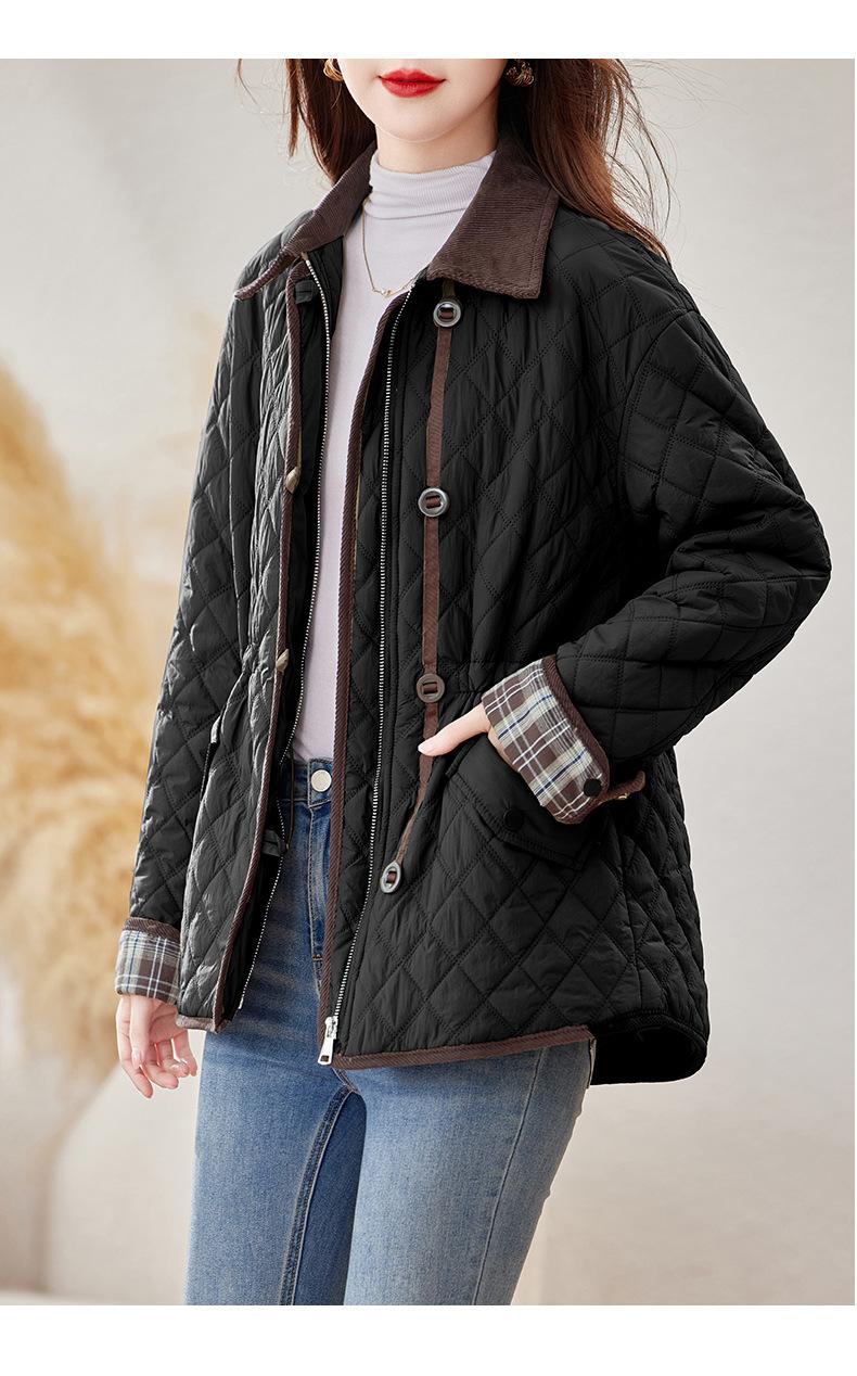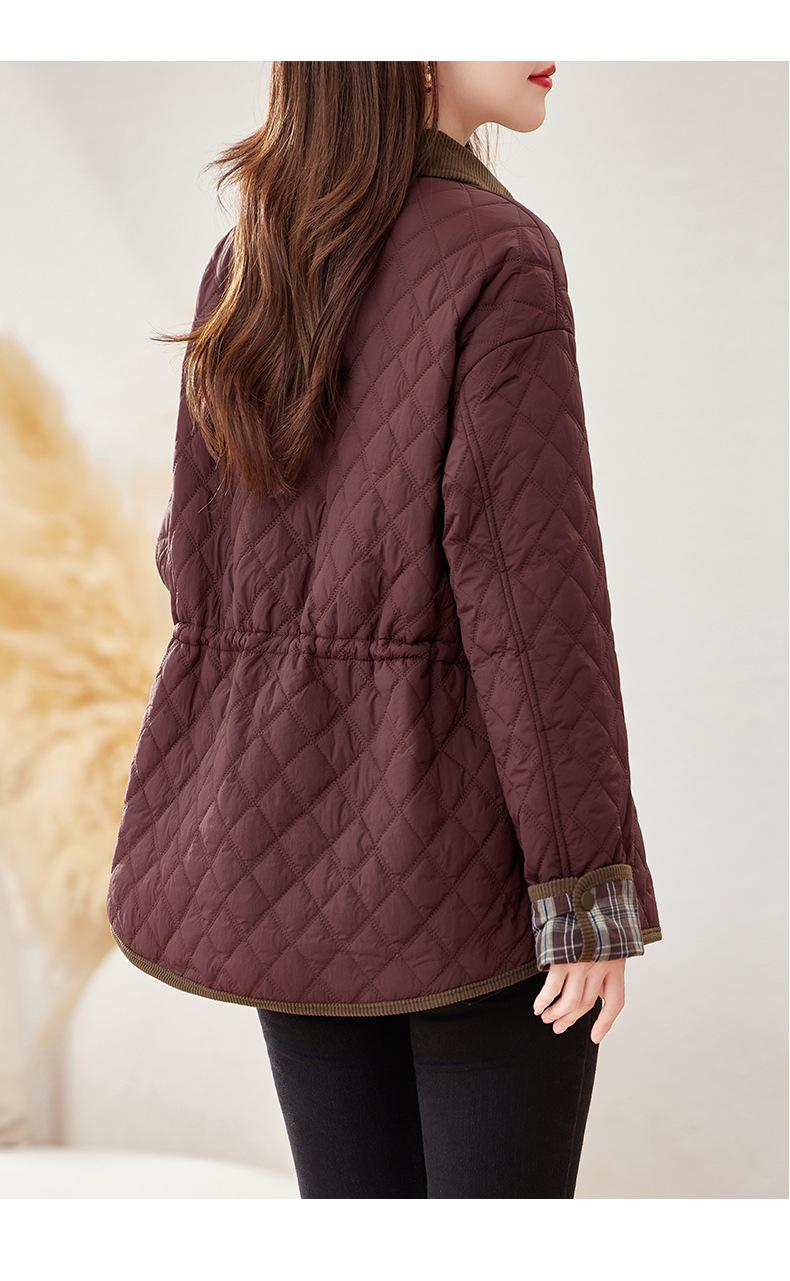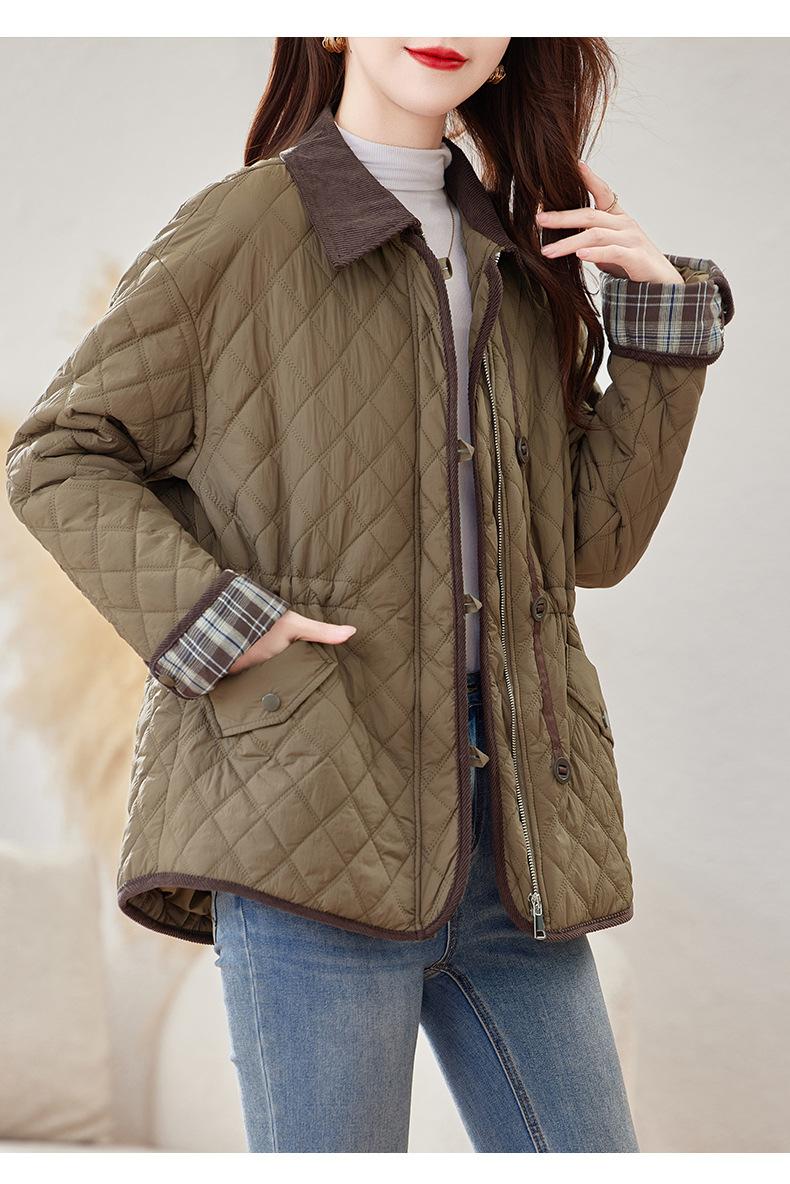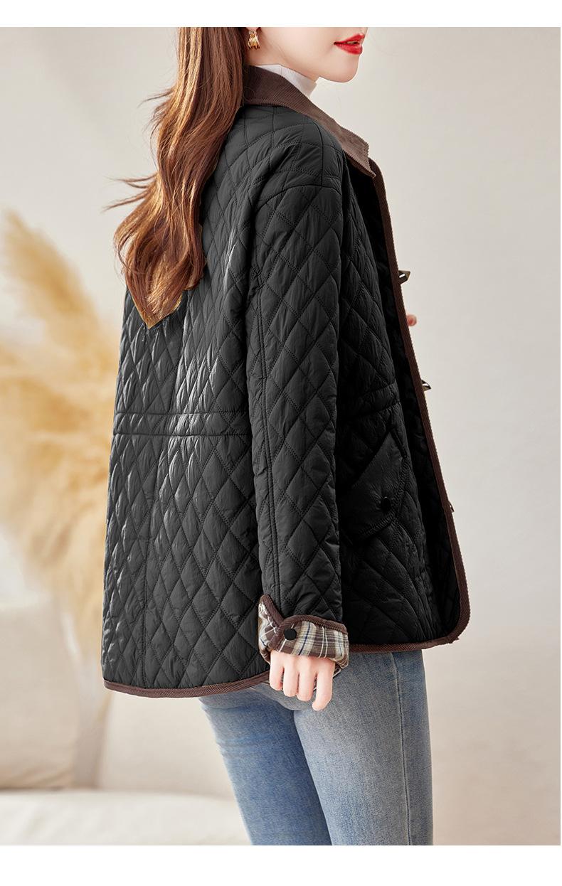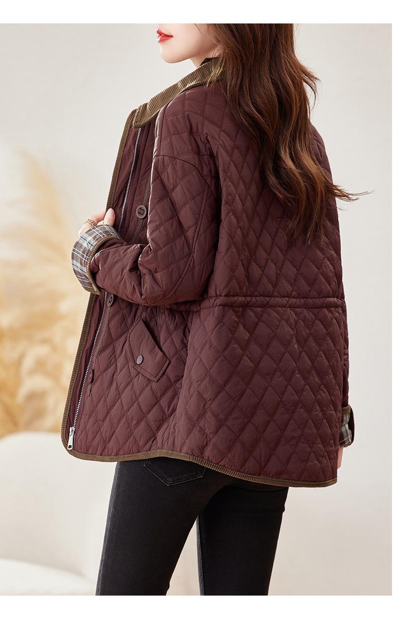 Abrigo acolchado de algodón rómbico estilo Chanel pequeño con costuras de moda para mujer 2024 invierno nuevo estilo abrigo ligero para hombres pequeños